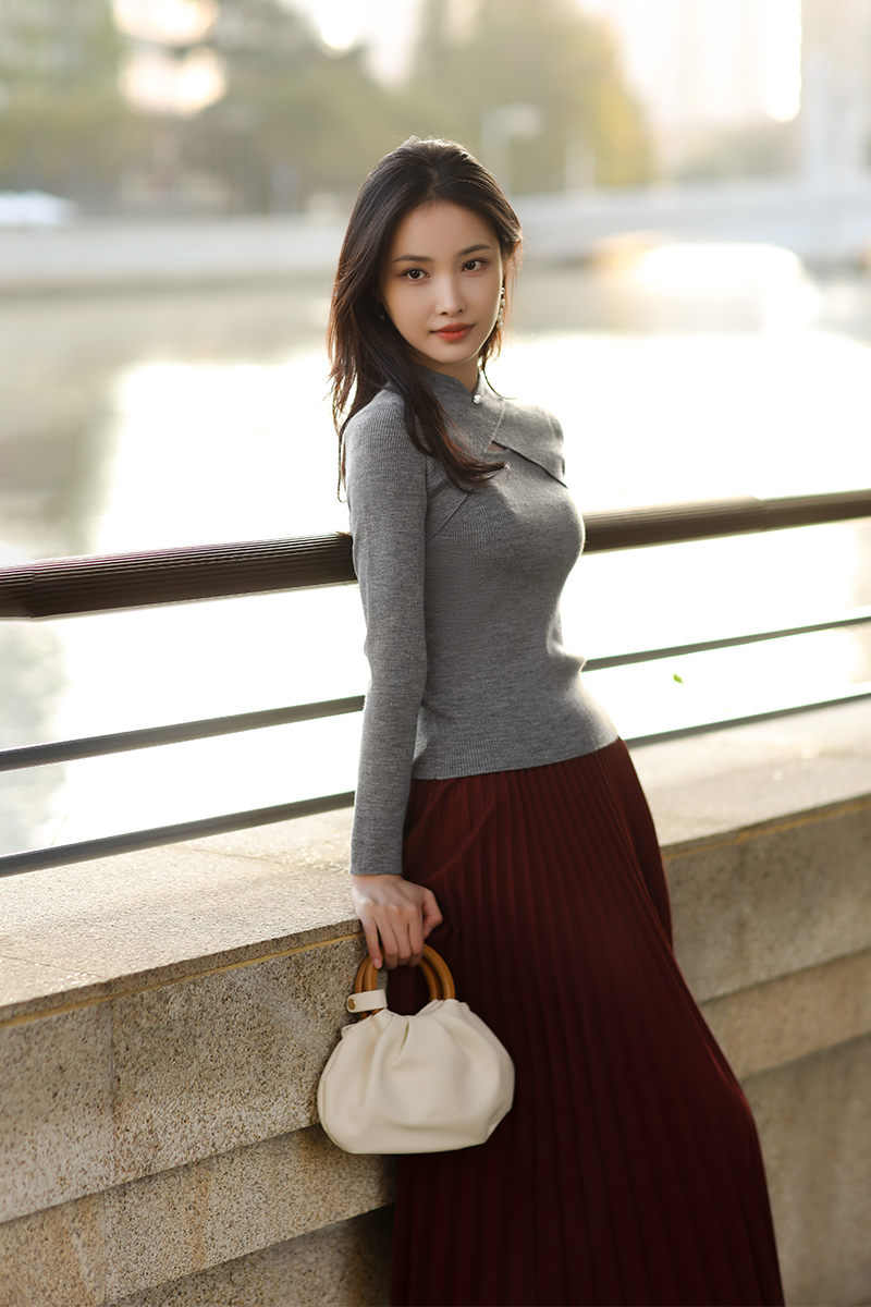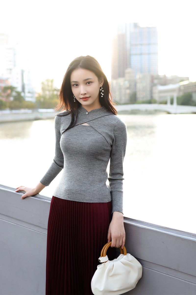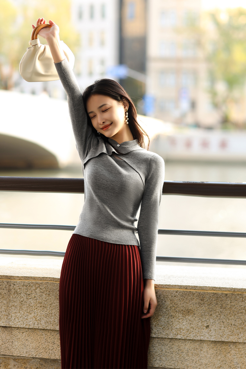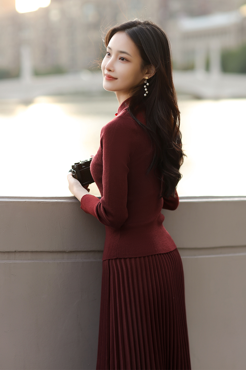 冬日脱掉外套,里面的旗袍毛衣依然是美丽的~~