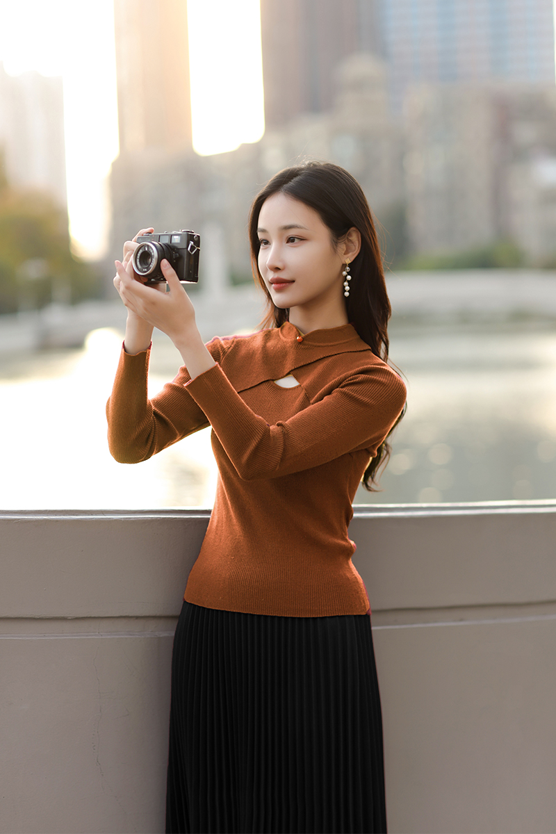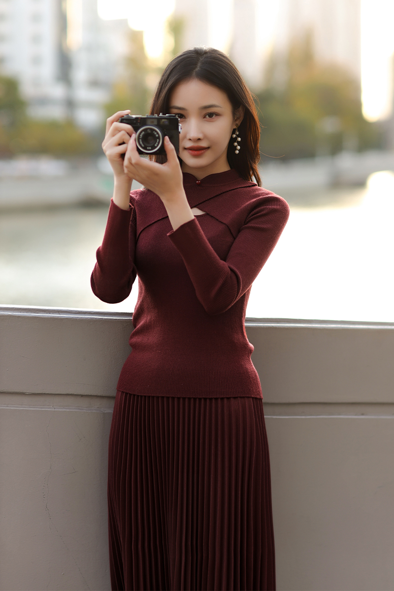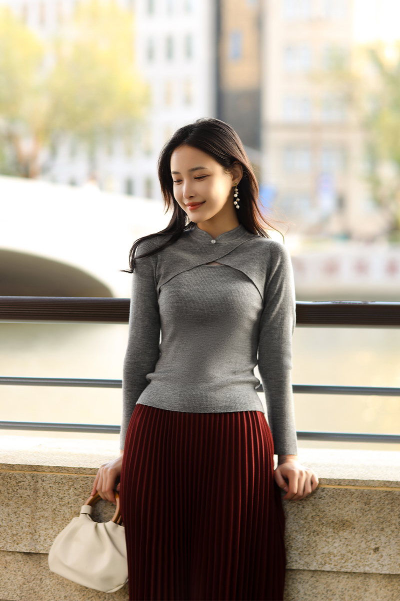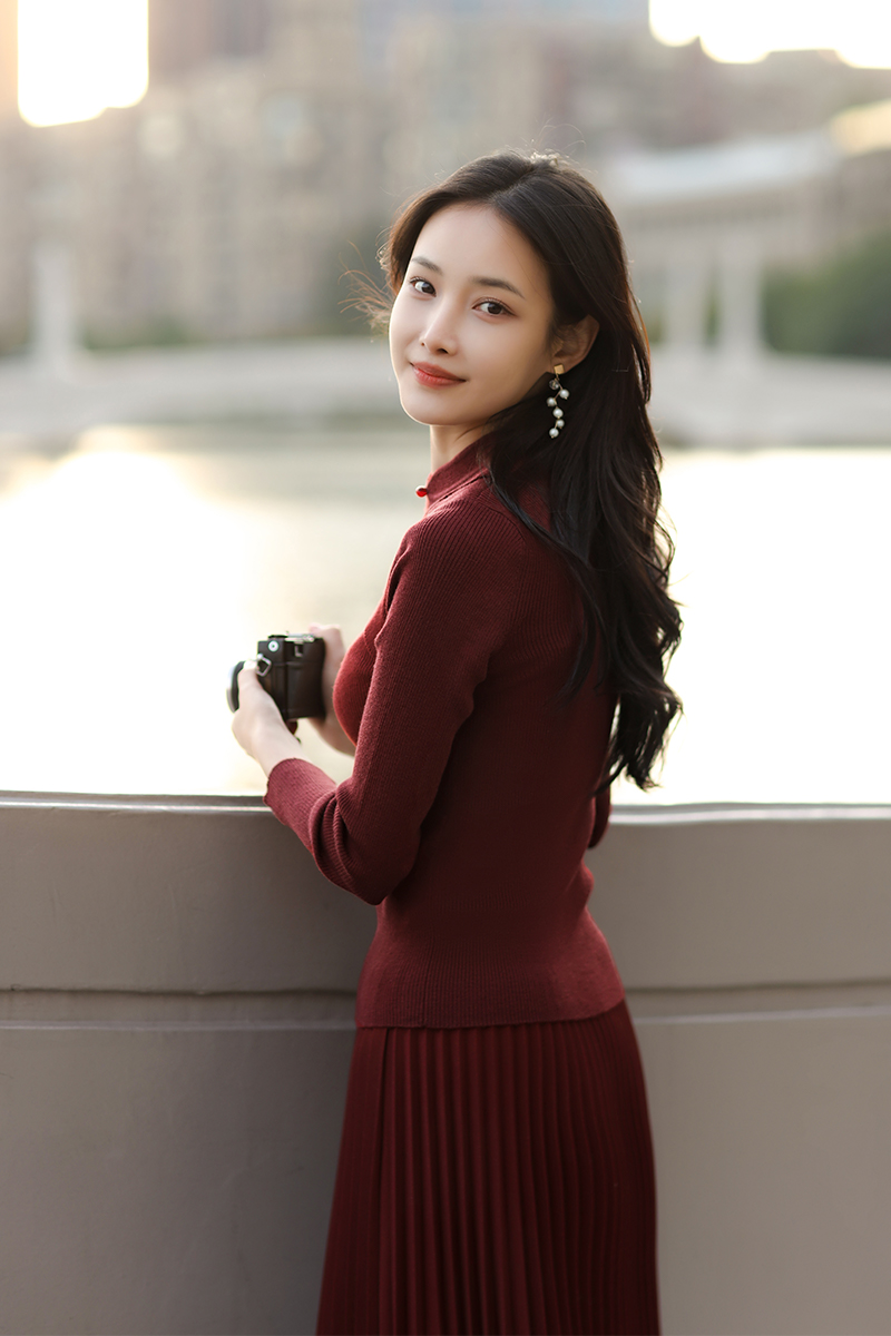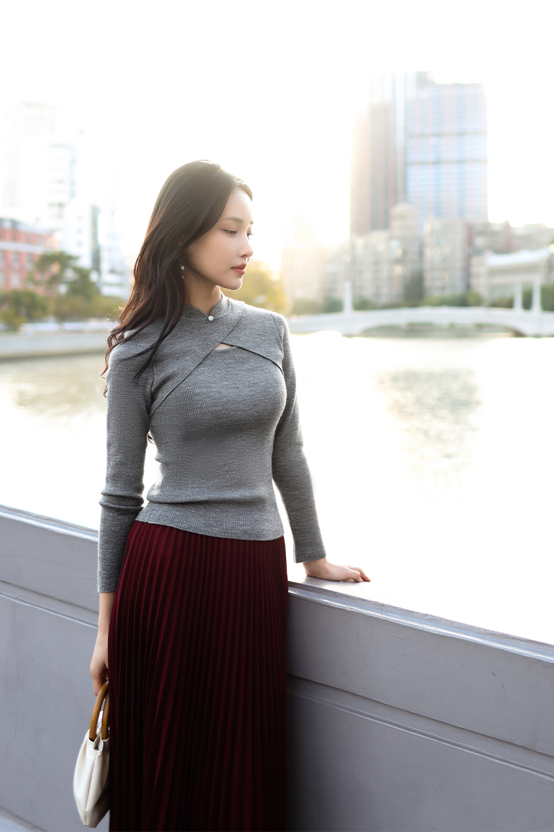 冬日脱掉外套,里面的旗袍毛衣依然是美丽的~~