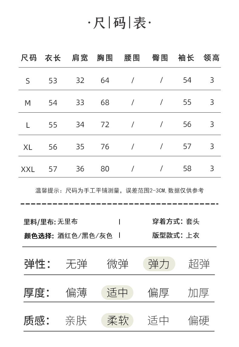 5、衣长54cm,领高3cm,长袖,套头穿,很大的弹力.