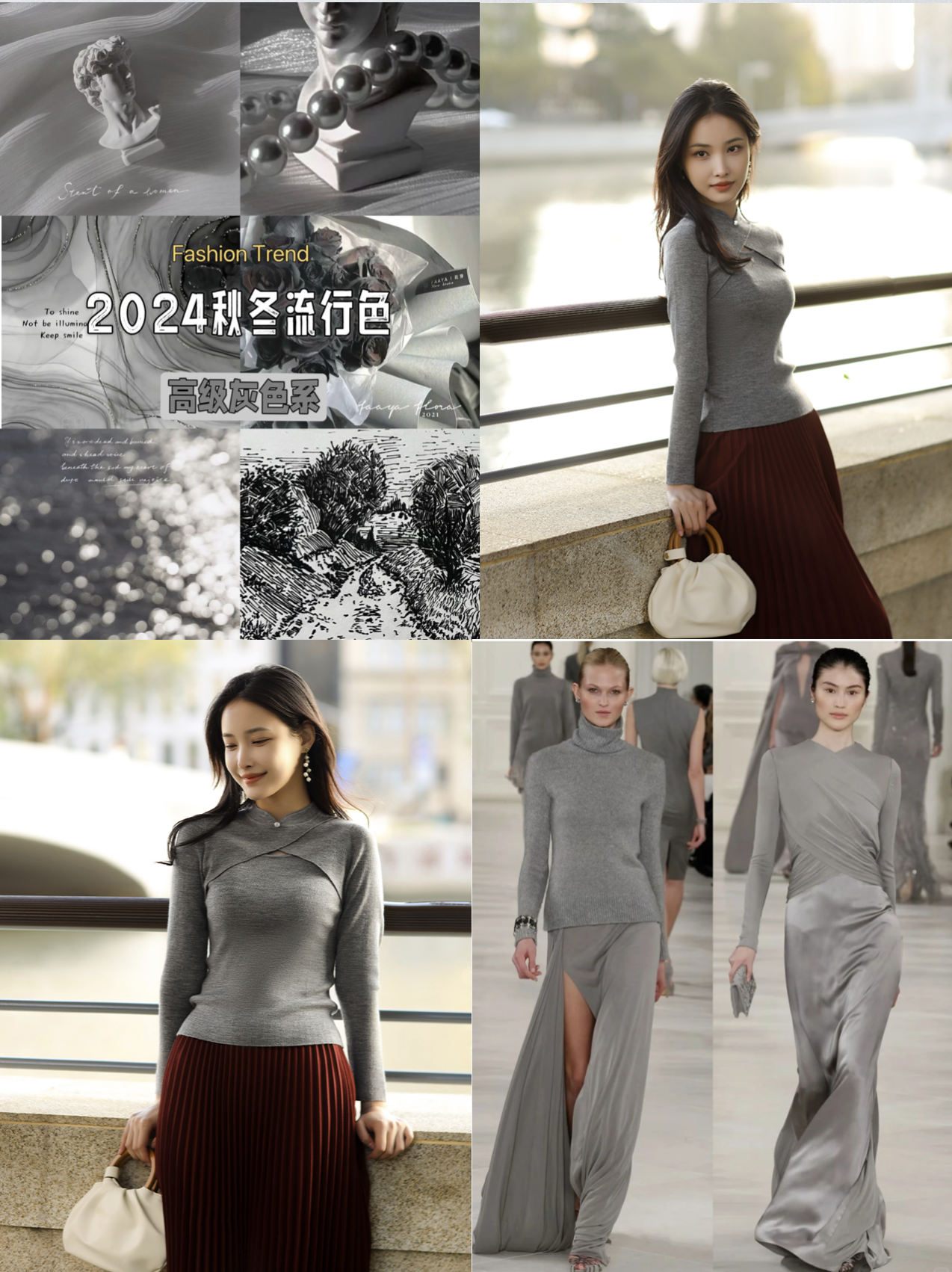 🌈灰色:在时尚的轮回中,高级灰色系以其独有的中性魅力,再次成为2024年的流行配色。灰色,介于黑白之间,它不张扬,不浮夸,却以其独有的气质,征服了无数设计师和时尚达人的心。高智、自然、和谐,沉稳且有力量!~