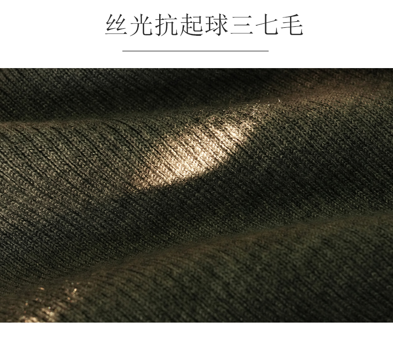 丝光抗起球三七毛,甄选最优高支羊毛,经过丝光处理,去除表面短毛绒,纱线表面呈现珍珠光色泽,手感丝滑,防缩水抗起球。