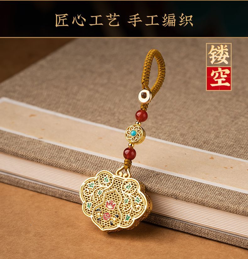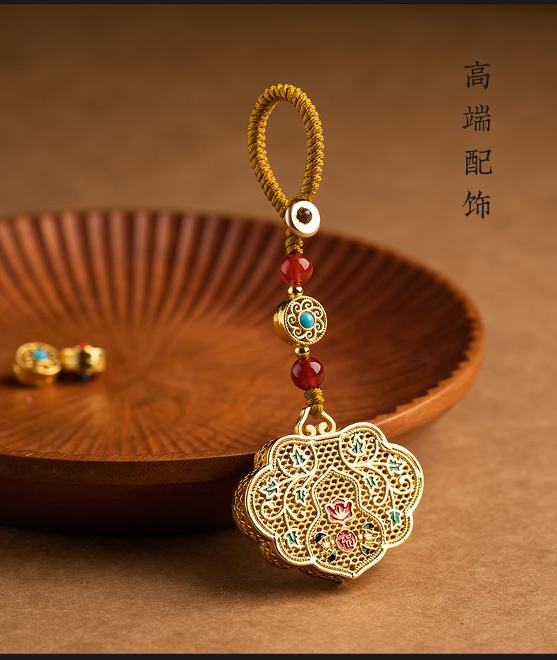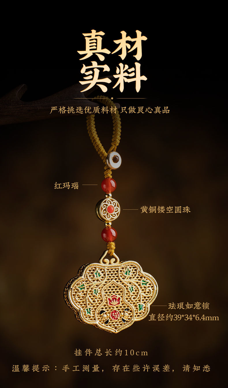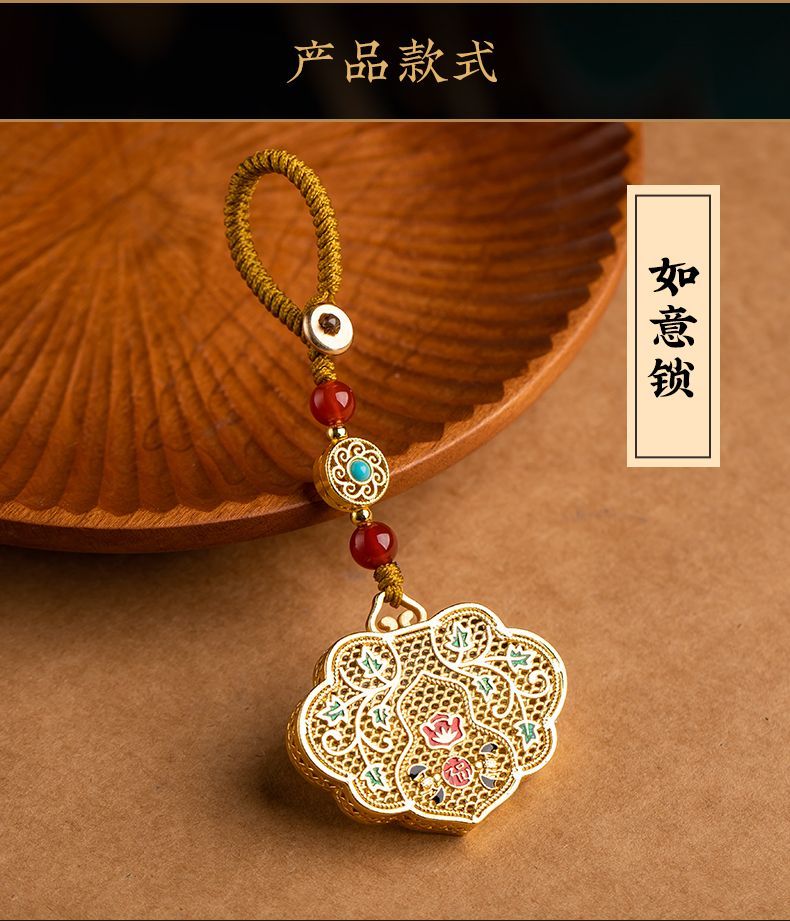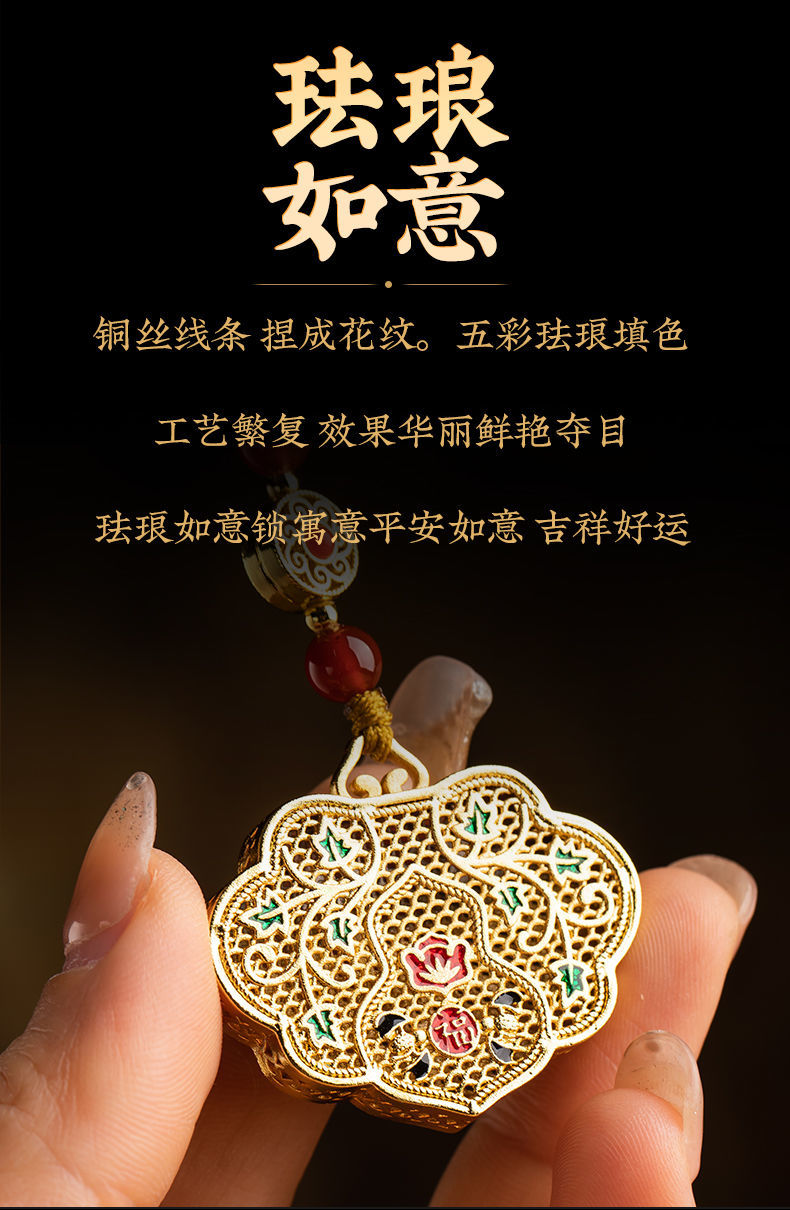 古风纳福黄铜珐琅彩平安如意锁汽车钥匙扣礼物