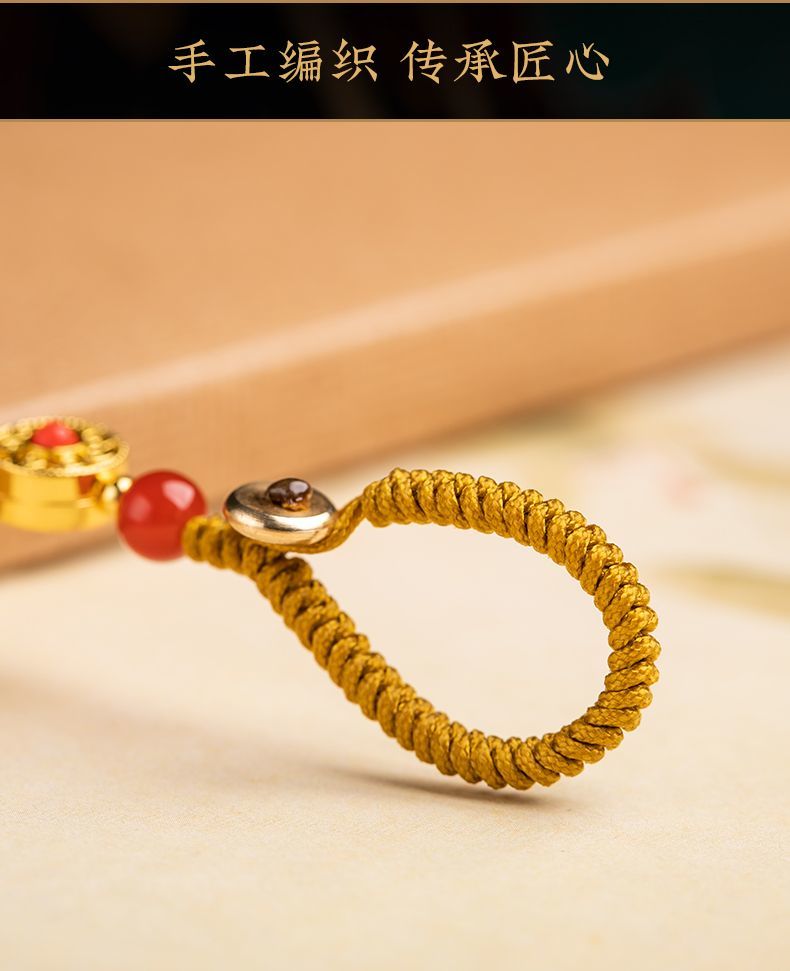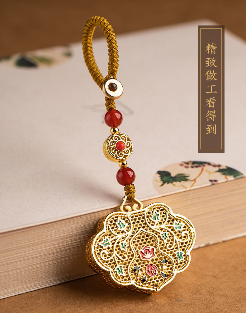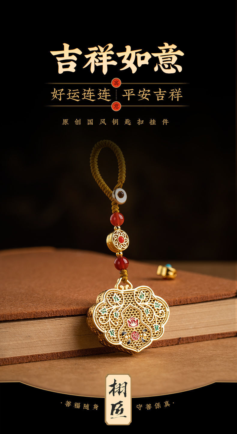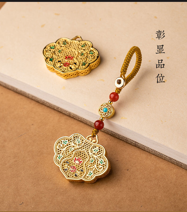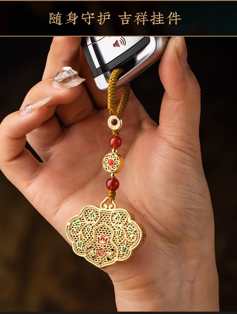 古风纳福黄铜珐琅彩平安如意锁汽车钥匙扣礼物