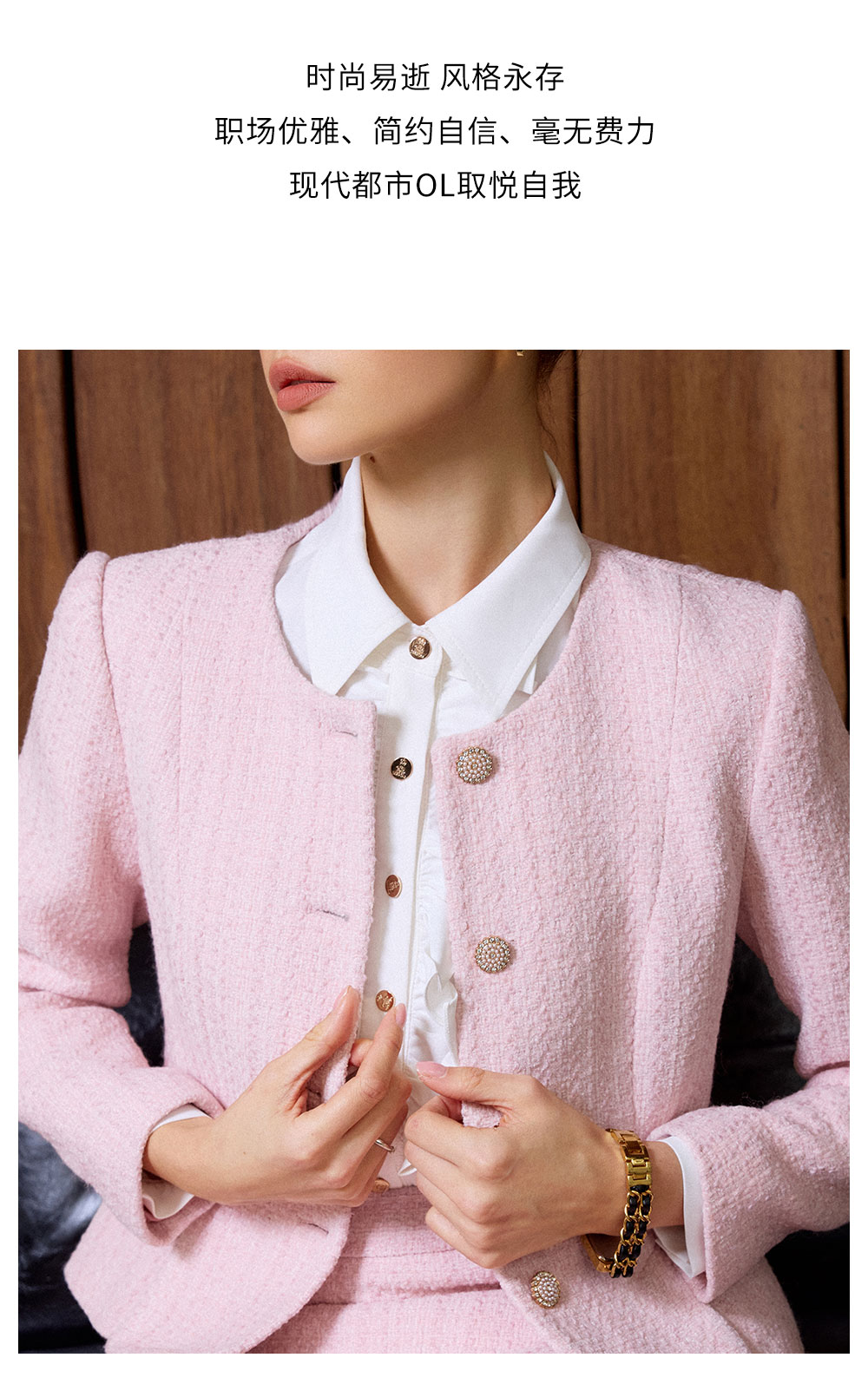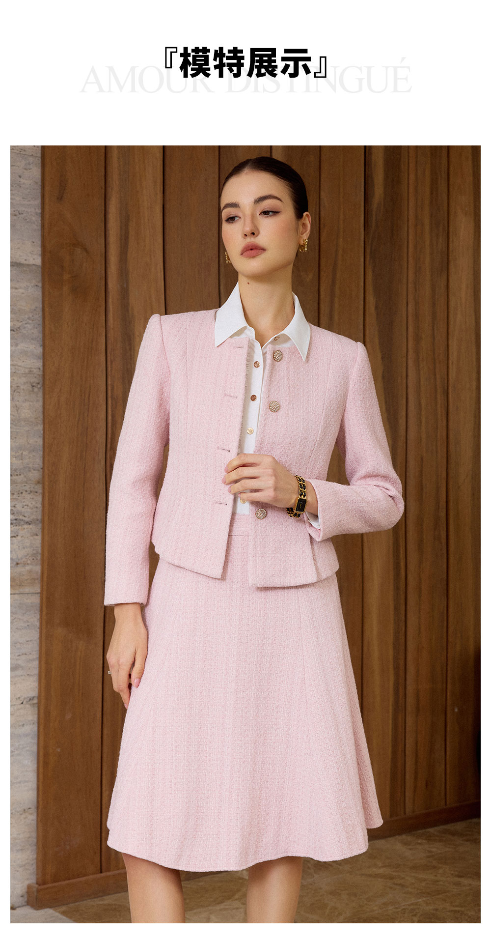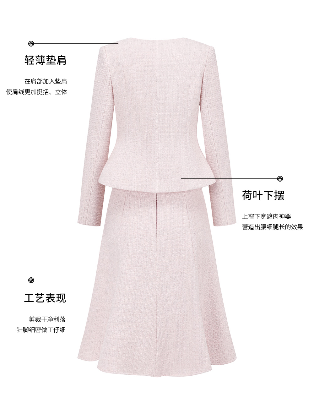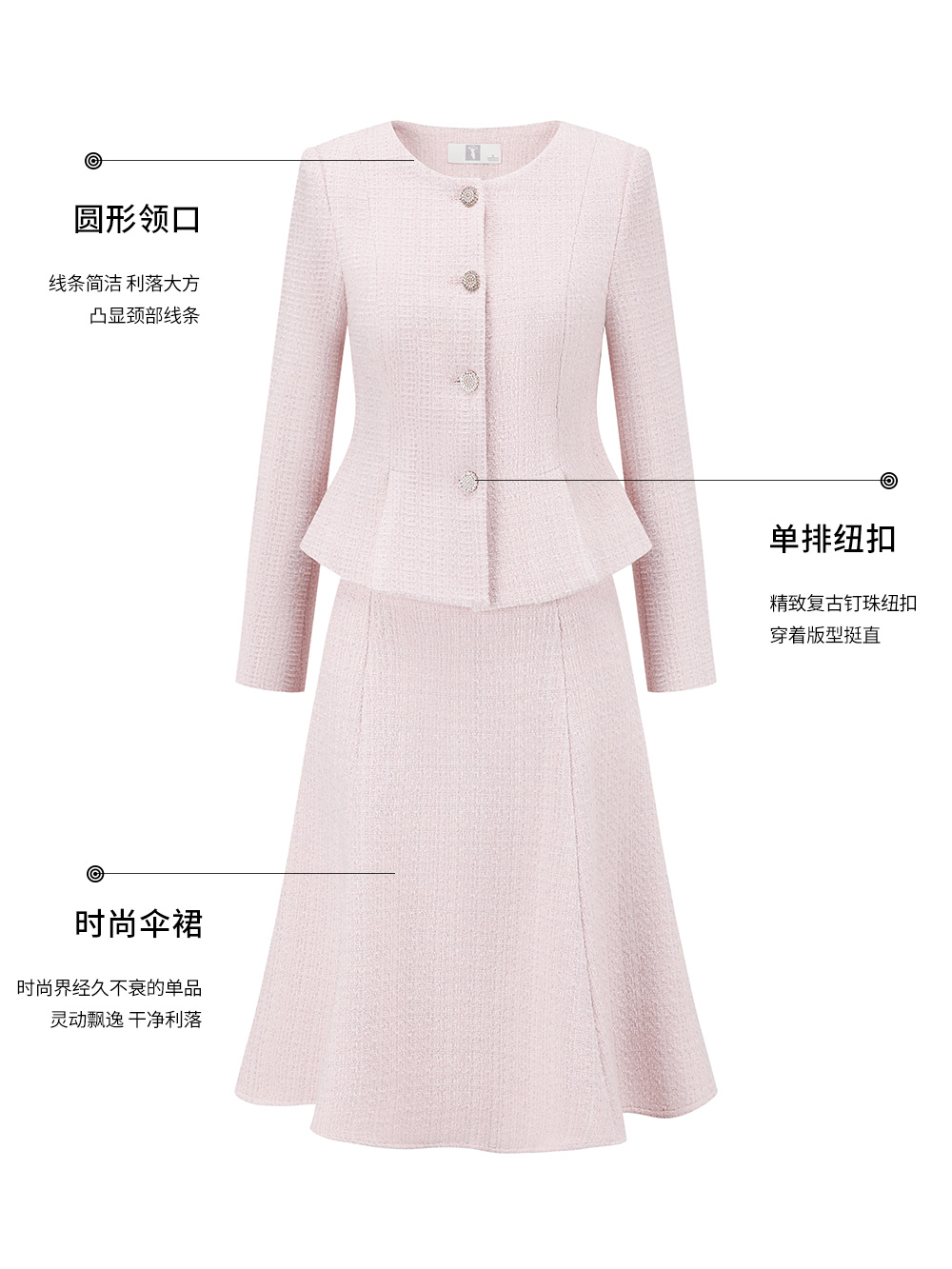 AD粉色名媛西装套装女新款伞裙肌理感小香风两件套秋冬羊毛短外套