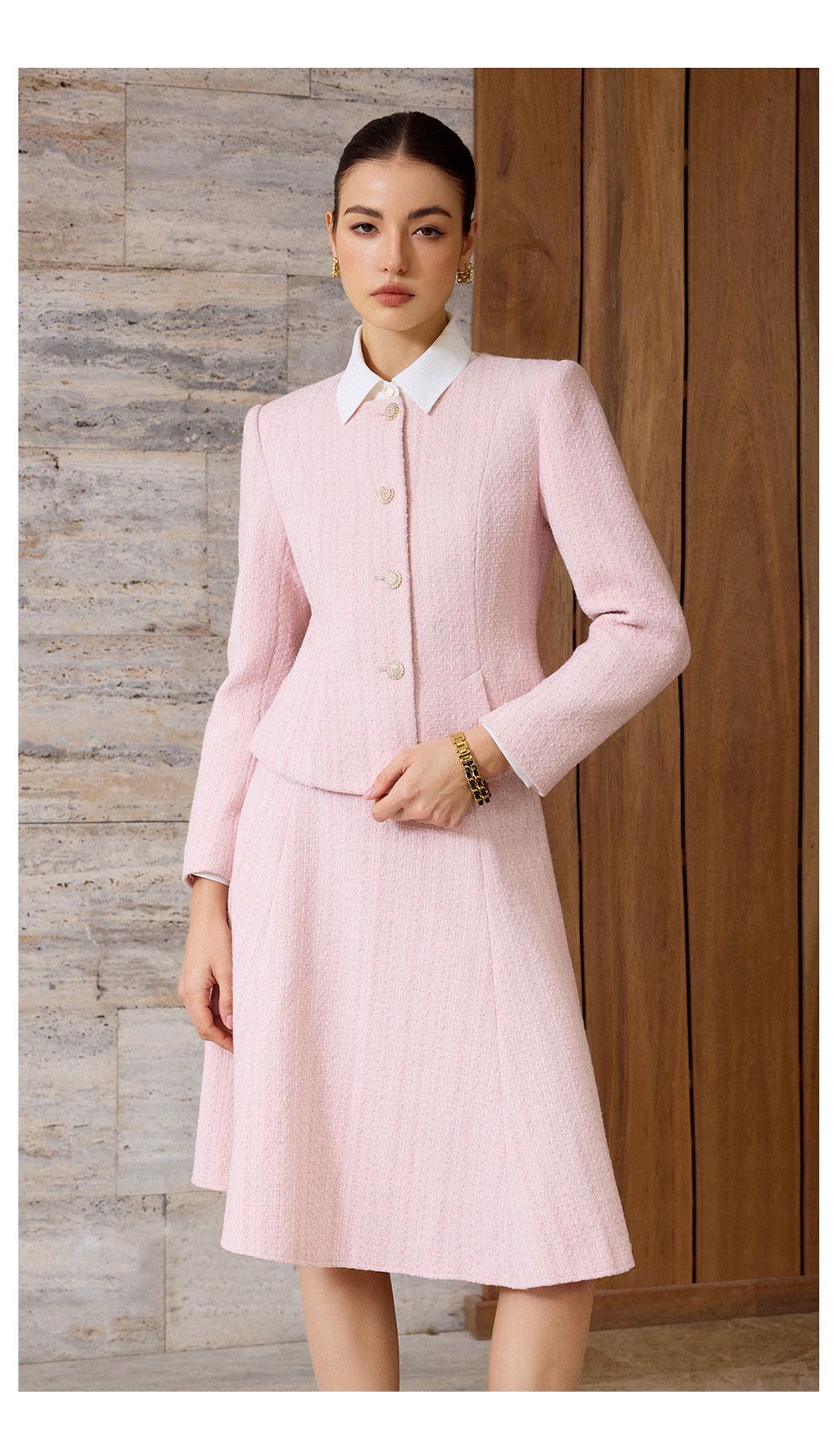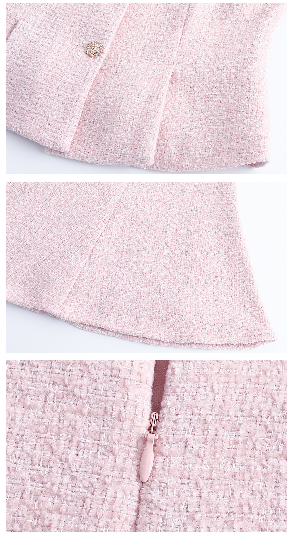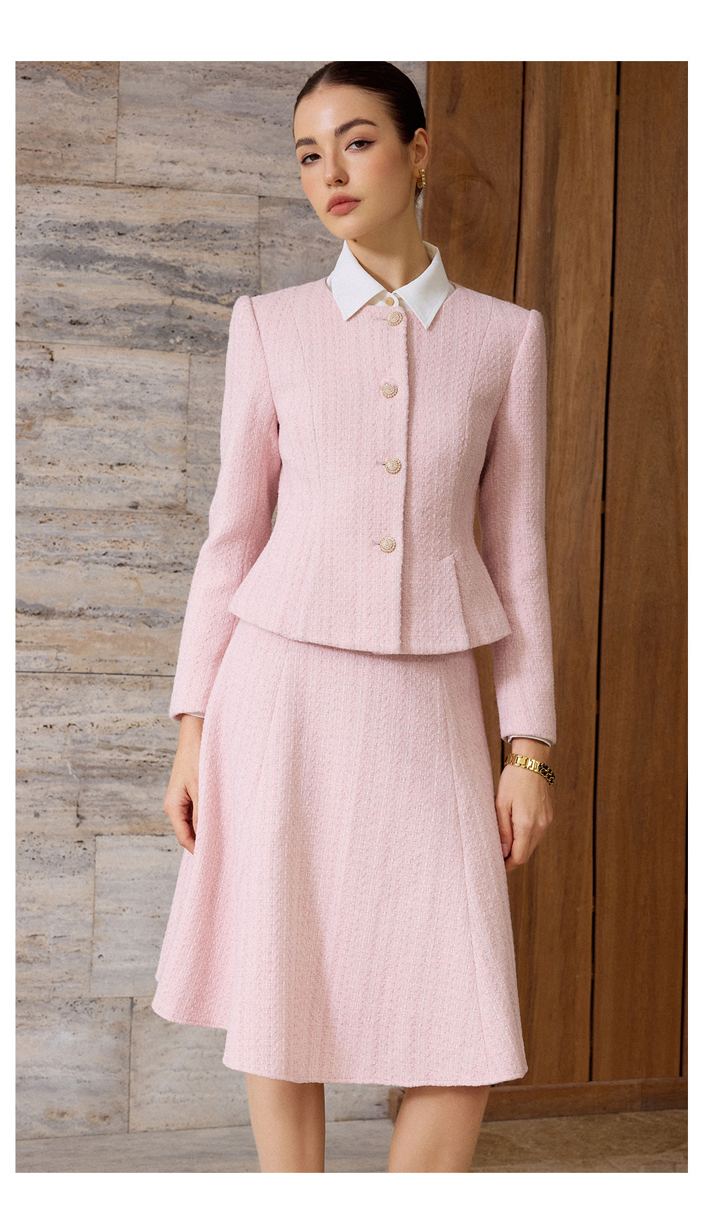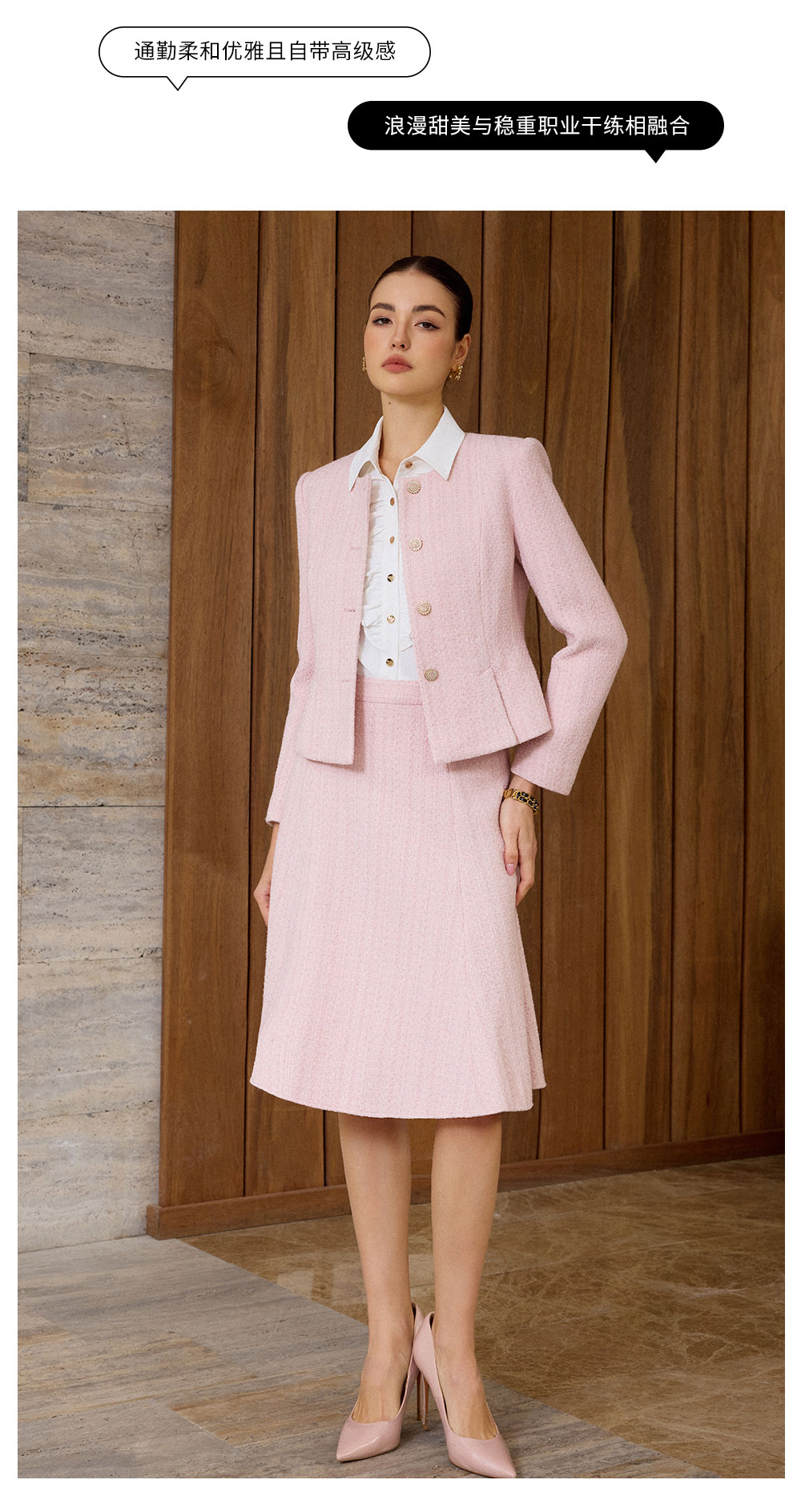 AD粉色名媛西装套装女新款伞裙肌理感小香风两件套秋冬羊毛短外套