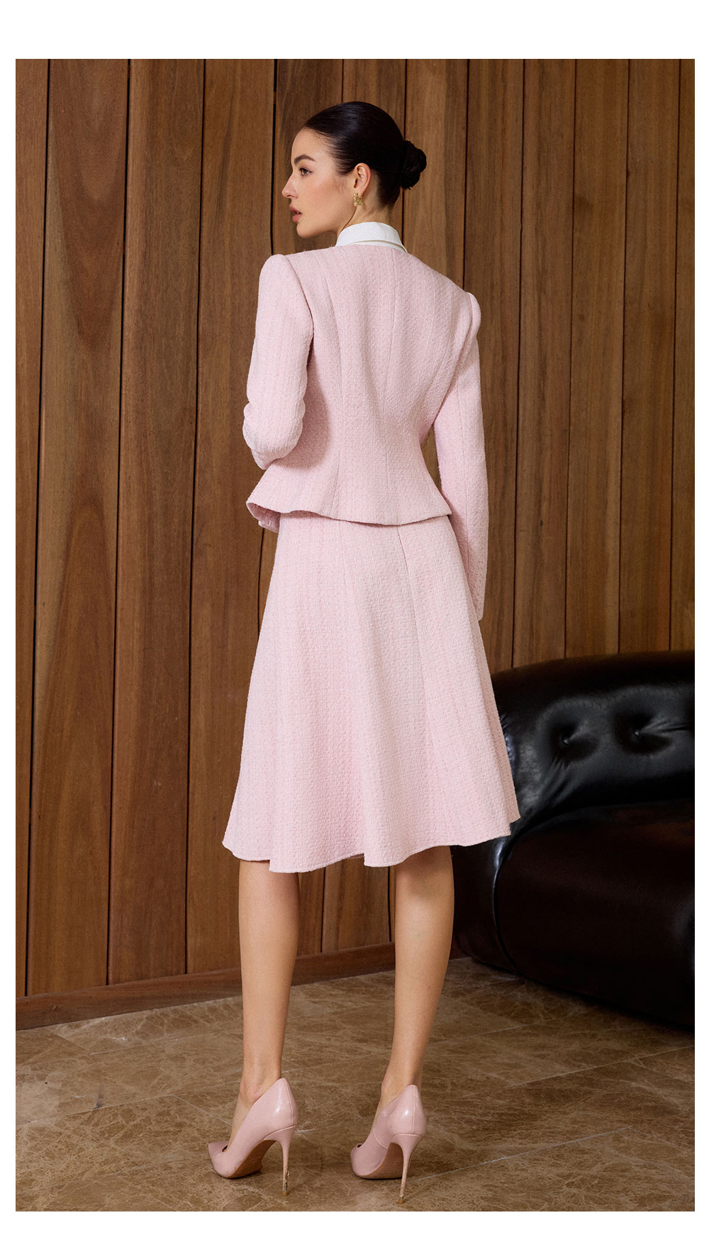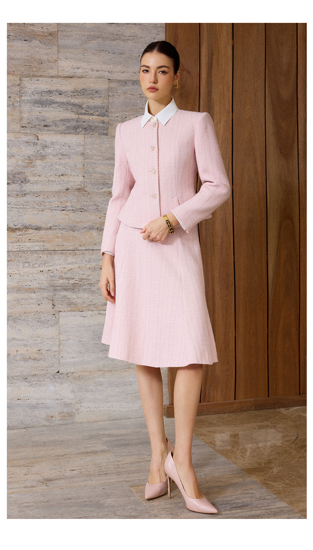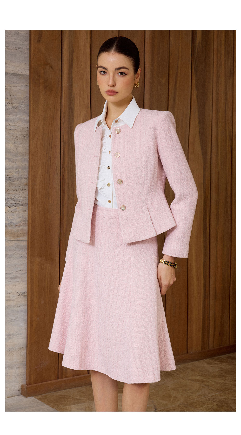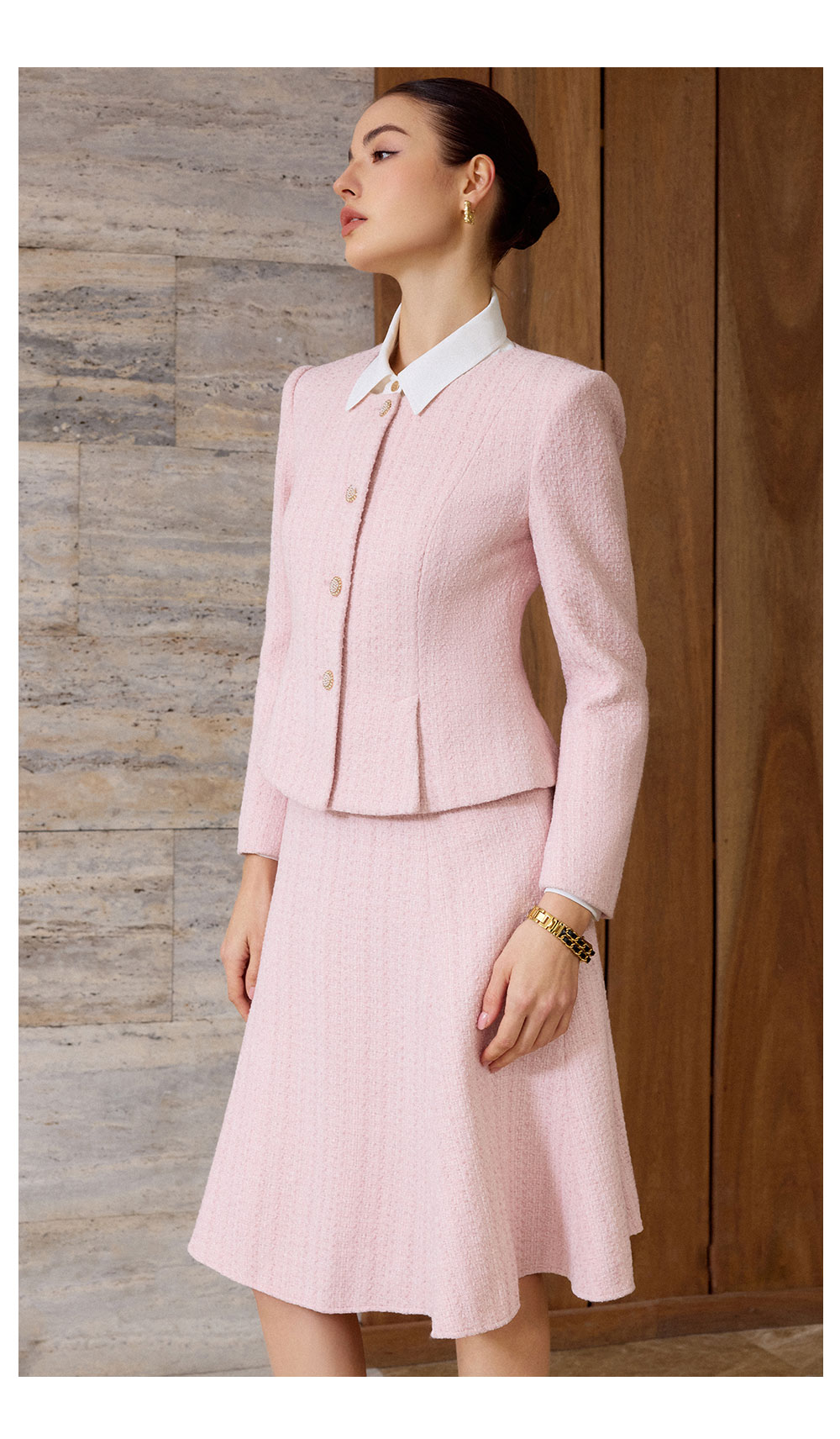 AD粉色名媛西装套装女新款伞裙肌理感小香风两件套秋冬羊毛短外套