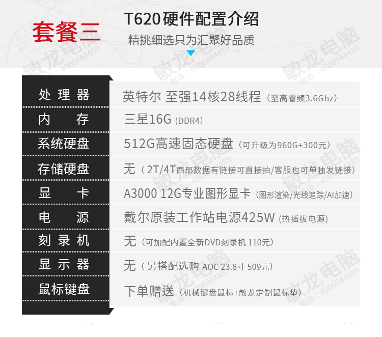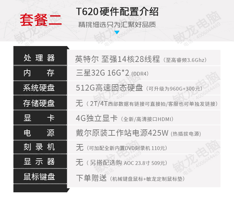 【敏龙电脑】T620 图形工作站/超高性价比/14核28线程(产品成色:95新)
