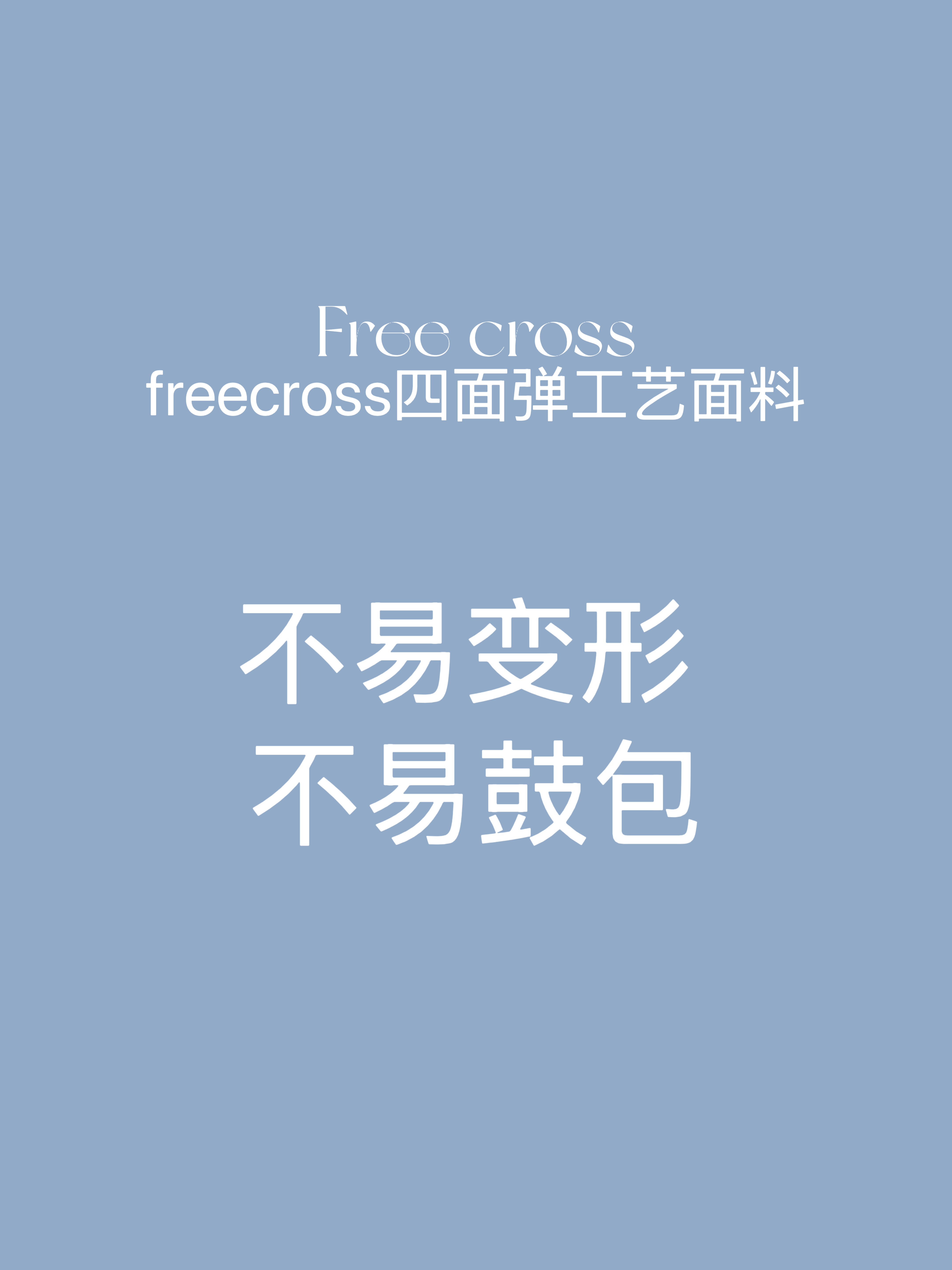 这一款不一样的是,我们自己去定了面料!!收到运营反馈说大家对牛仔裤的述求是“不要容易鼓包”,所以我们特别去定了一批freecross工艺的四面弹牛仔面料,这是全新的技术工艺,不同于以往的无弹力或者横向弹力,它是横向纵向均有一定弹力的,四面弹工艺为牛仔带来的技术革新是:随心动无束缚;不易变形不易鼓包!!
