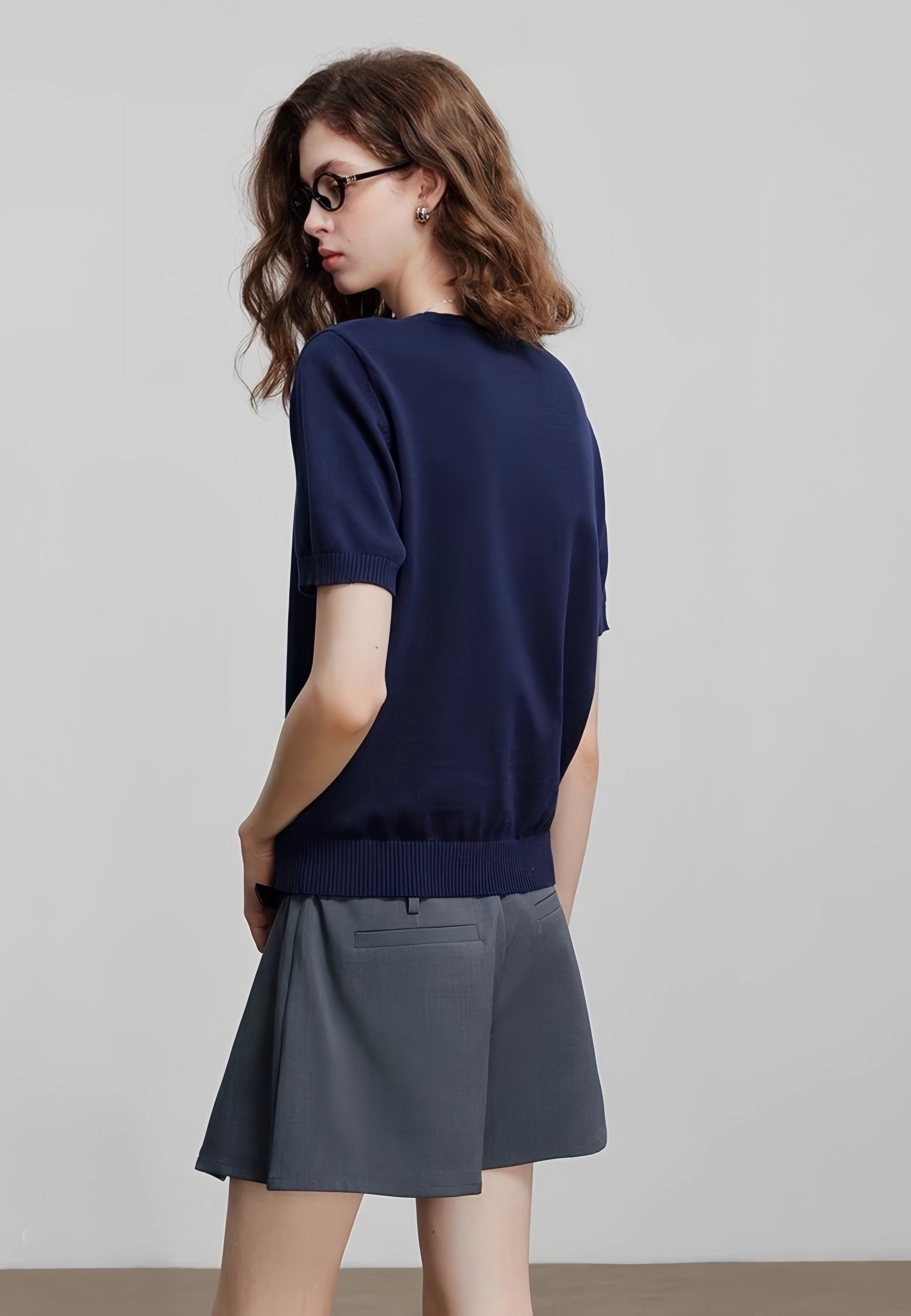 藏青撞湖蓝配色真的绝了!高级又低调!绿绒蒿提花针织衫,上身妥妥的气质女主,小众品牌去标发货,介意勿拍。
