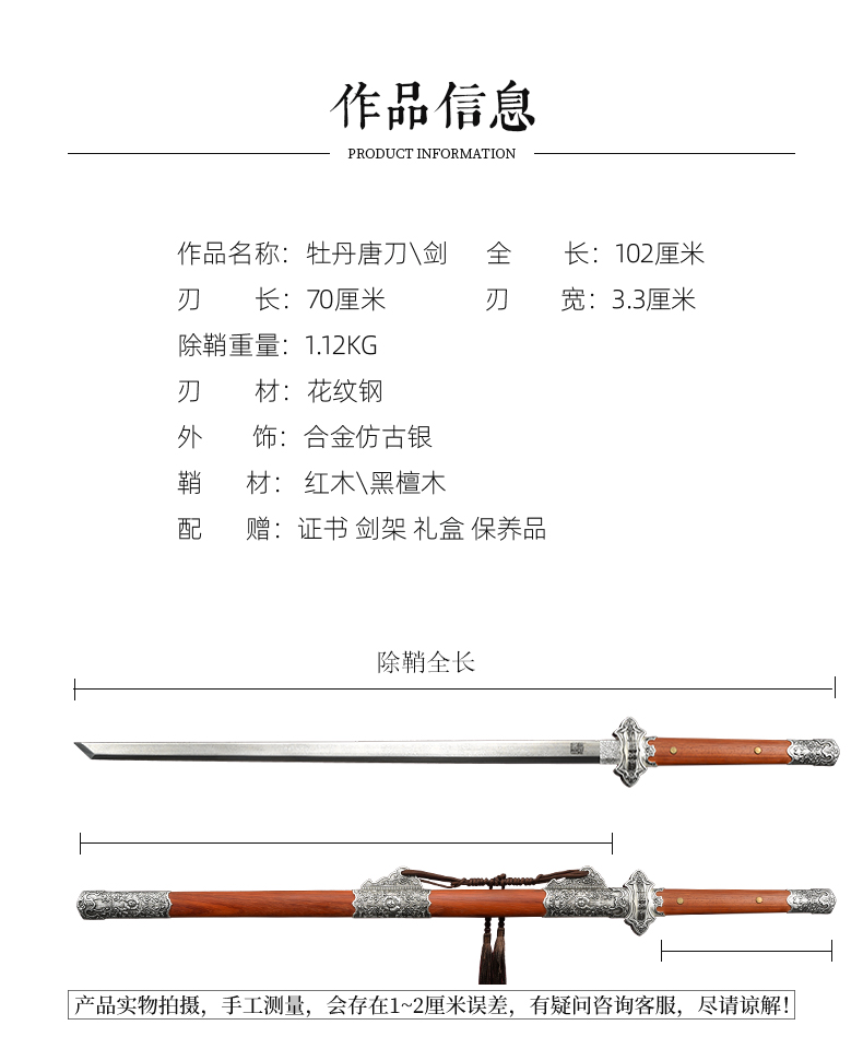 牡丹唐刀 唐剑 唐横刀剑硬刀一体刀剑龙泉沈广隆宝剑 未开刃