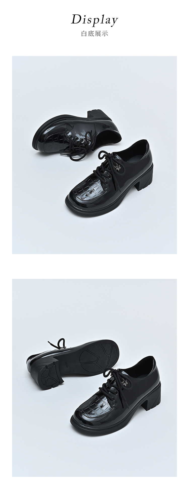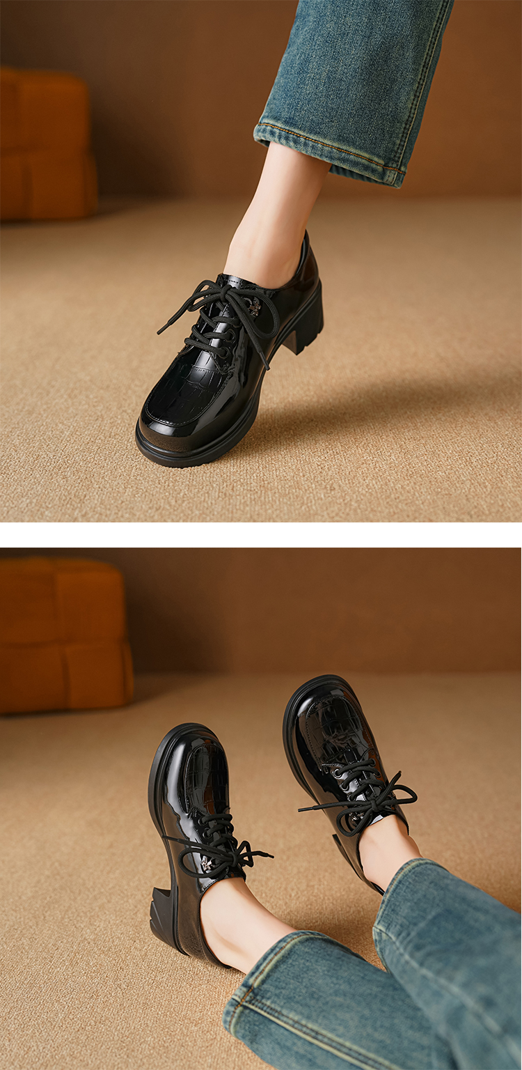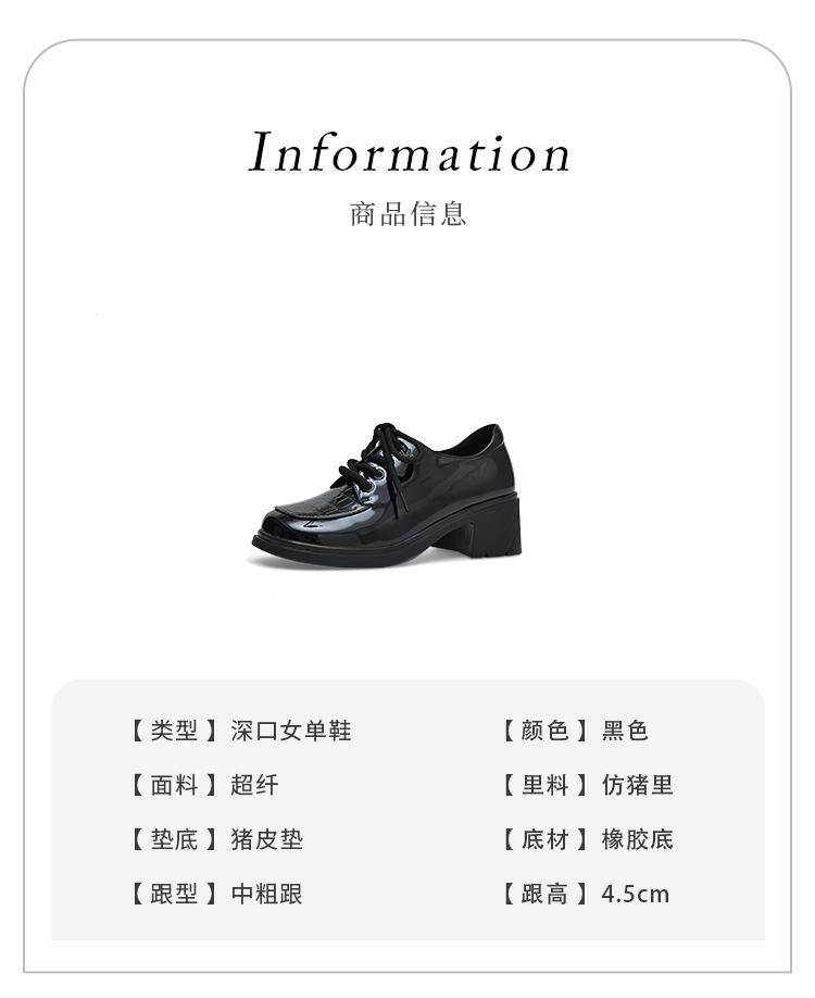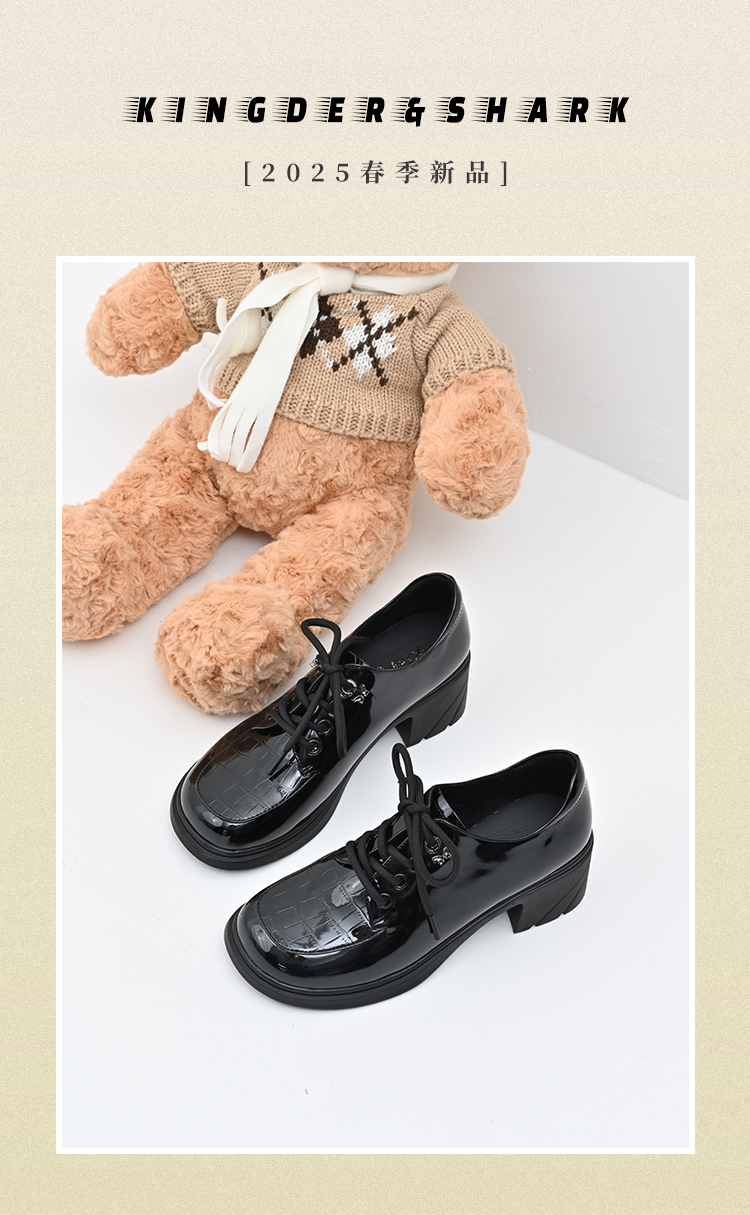 经典鲨女鞋2025年春季新款百搭黑色圆头系带中粗跟单鞋小皮鞋KC19-517011