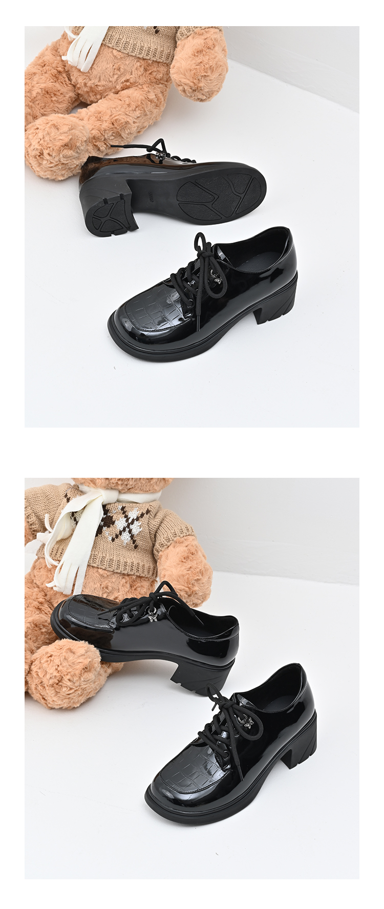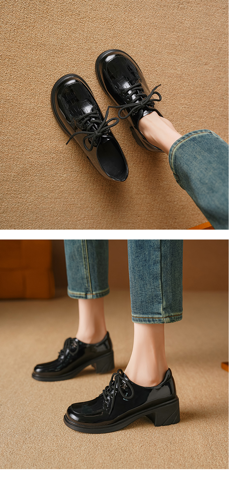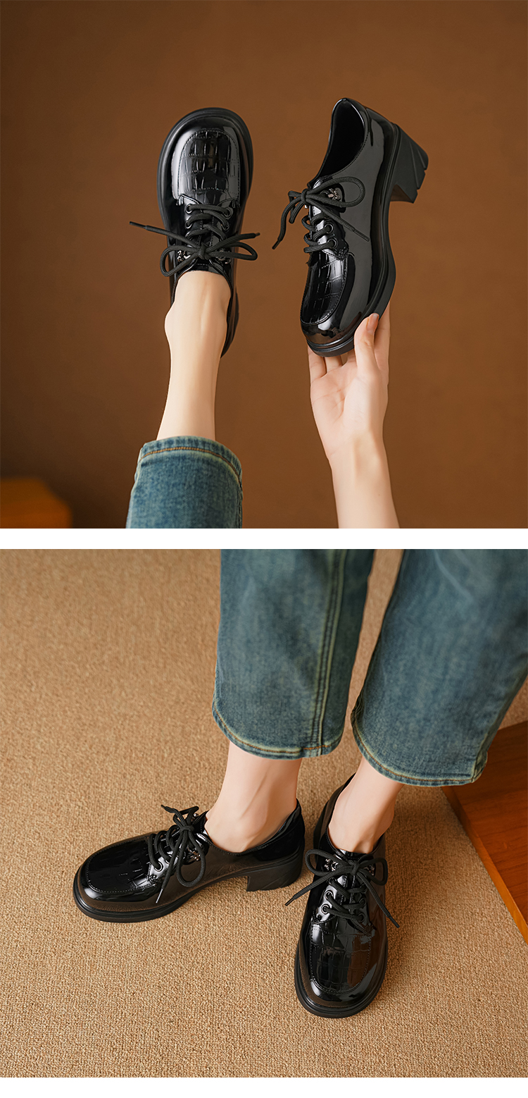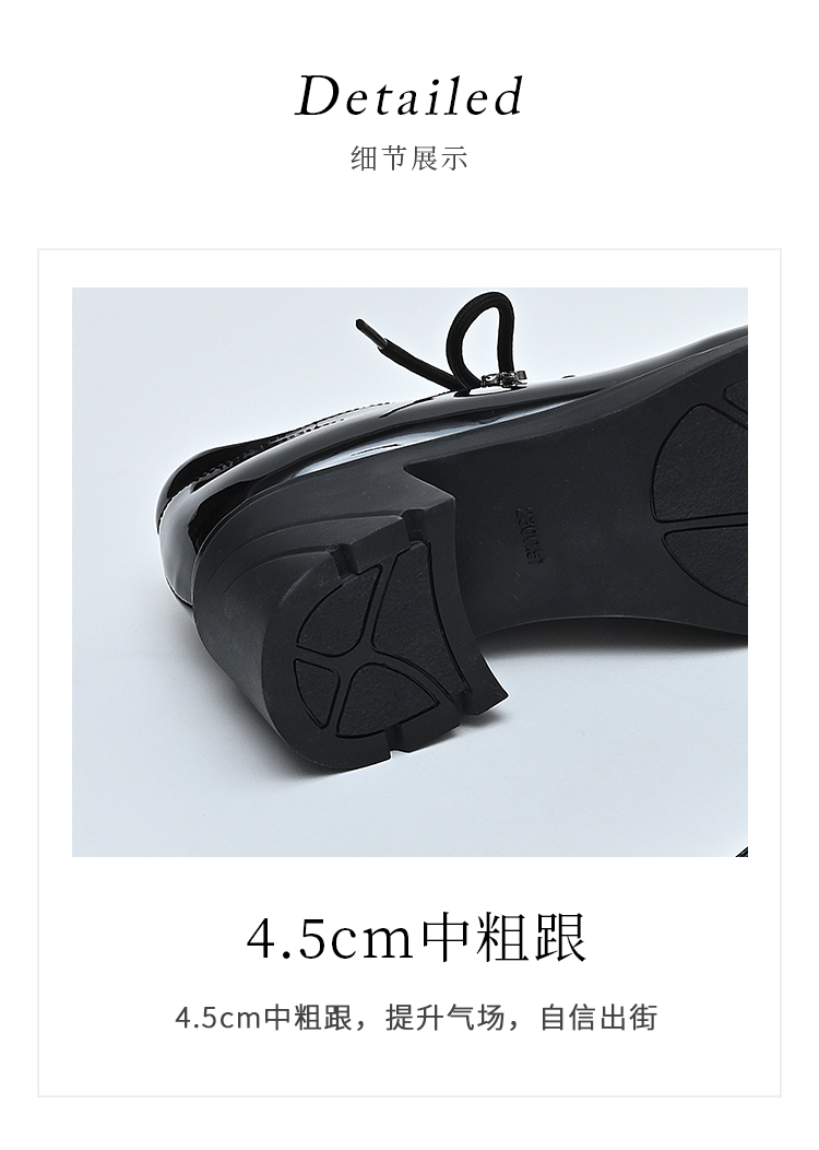 经典鲨女鞋2025年春季新款百搭黑色圆头系带中粗跟单鞋小皮鞋KC19-517011