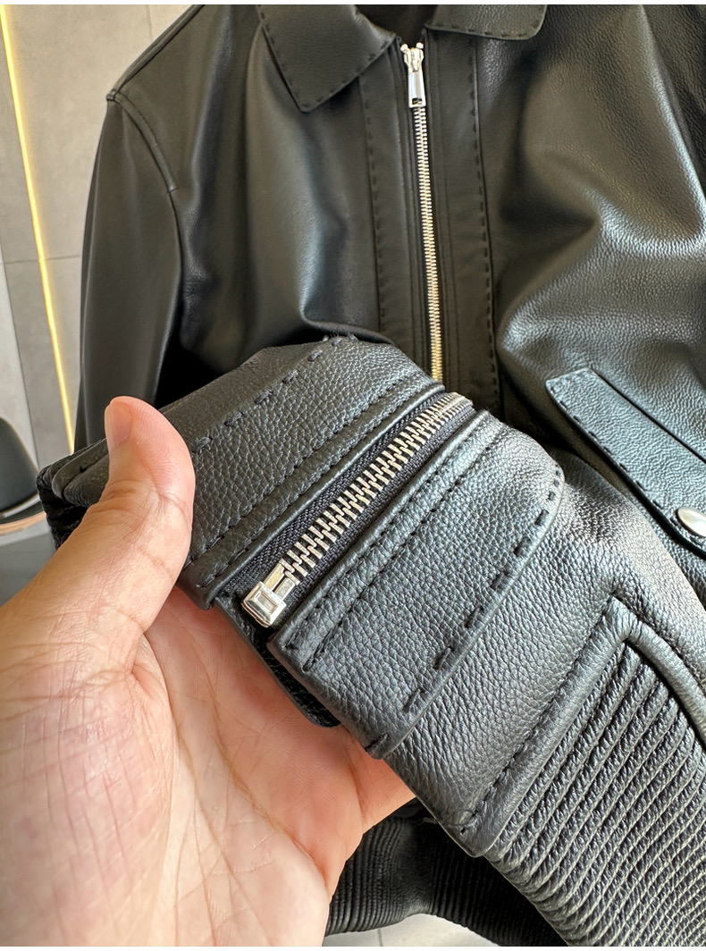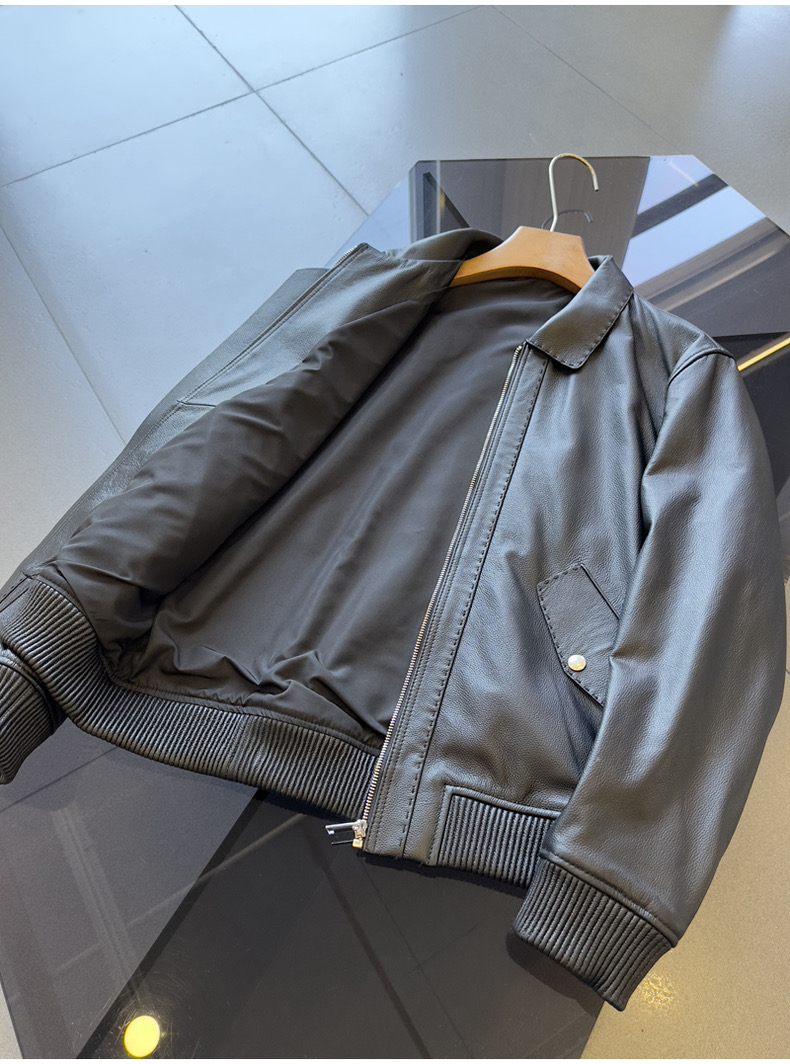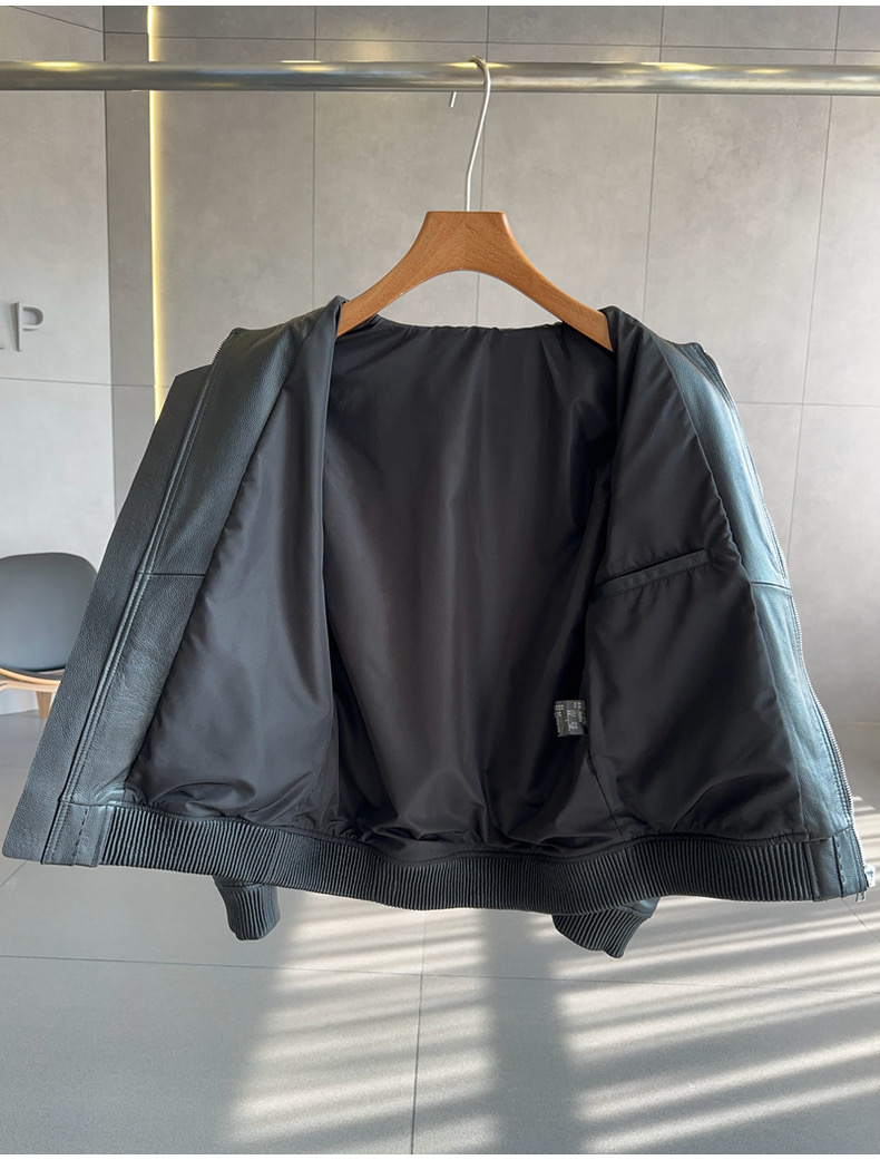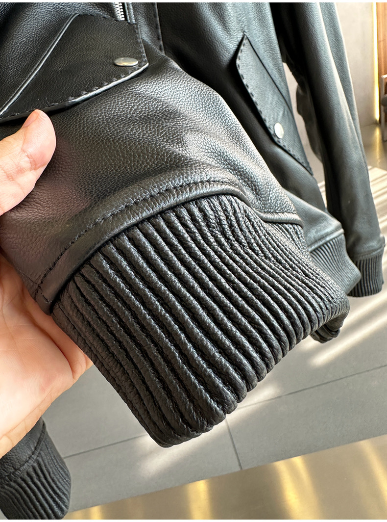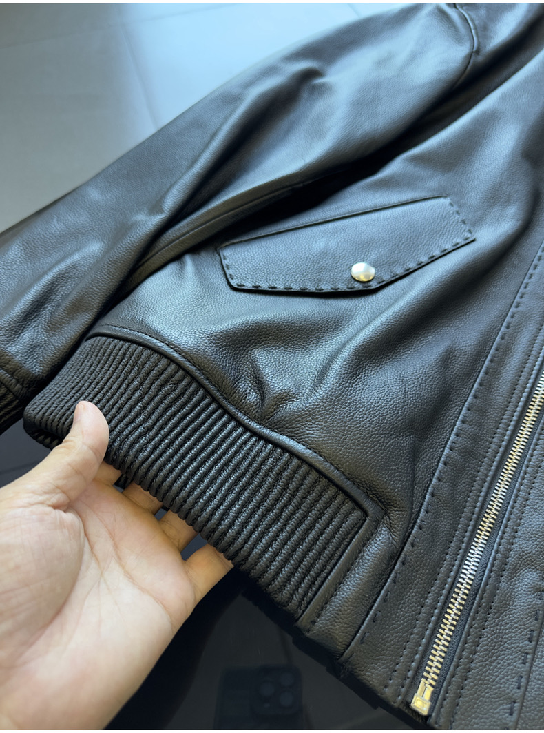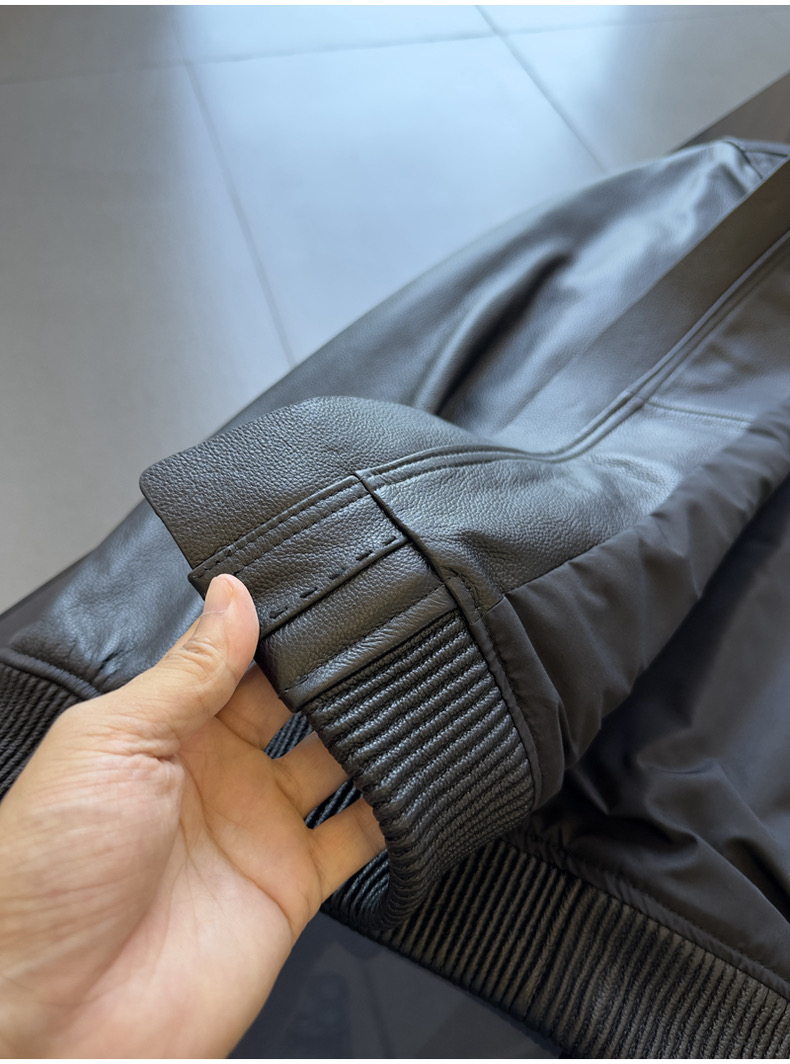 整皮设计,就连螺纹袖口下摆领子都是真皮的哦!