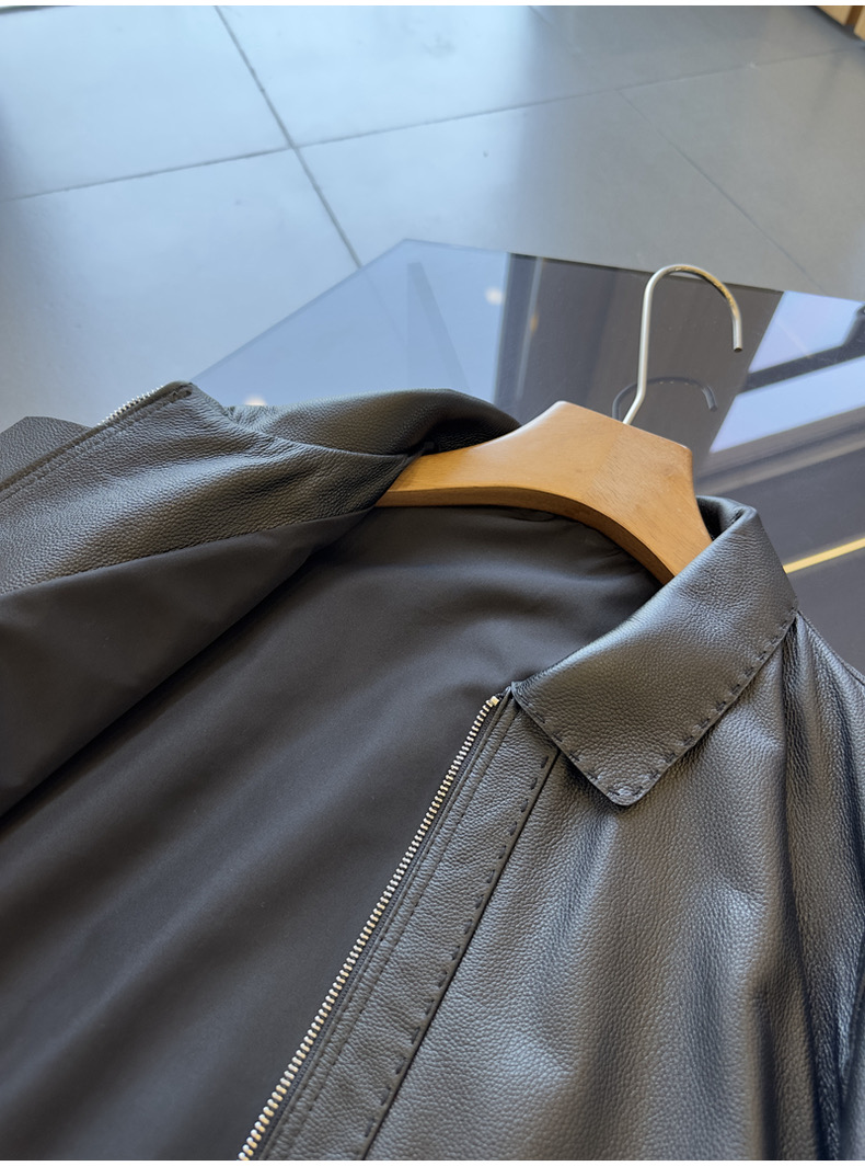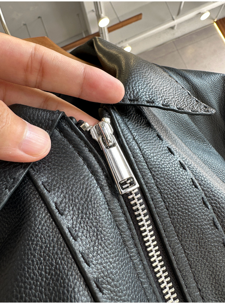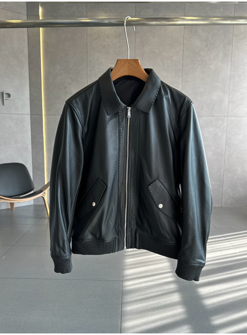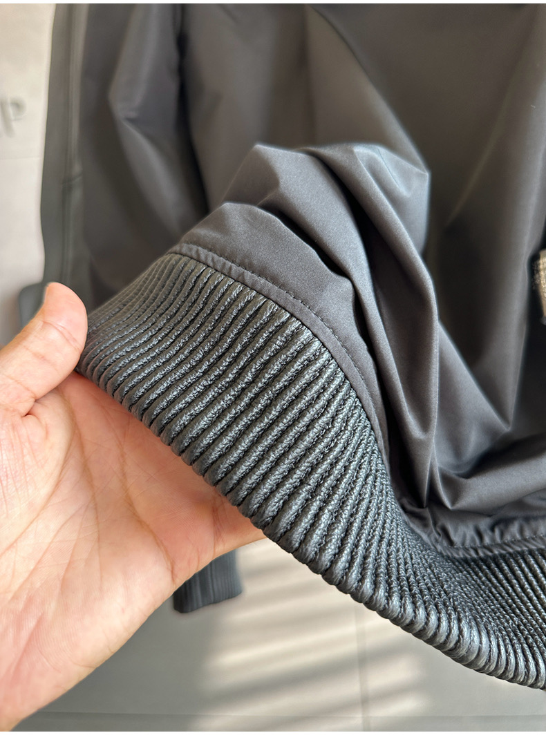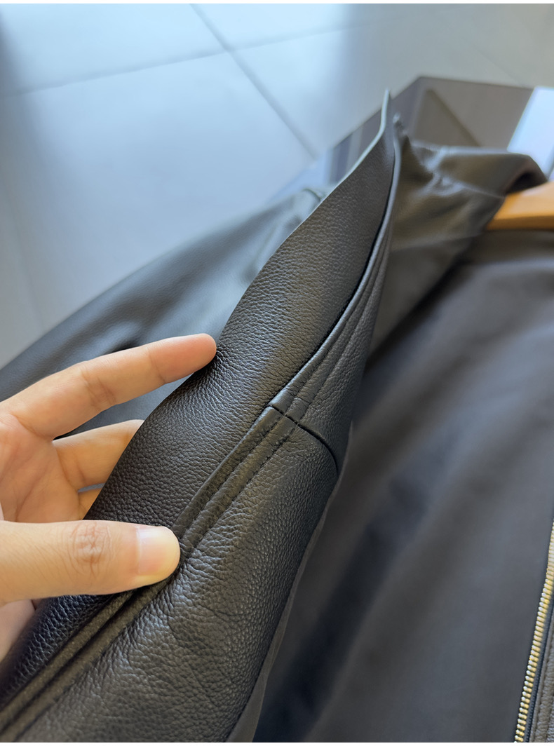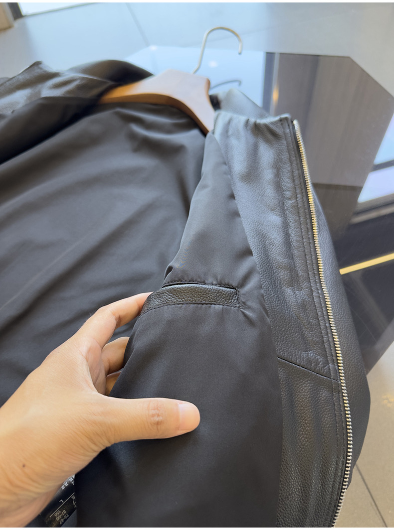 整皮设计,就连螺纹袖口下摆领子都是真皮的哦!