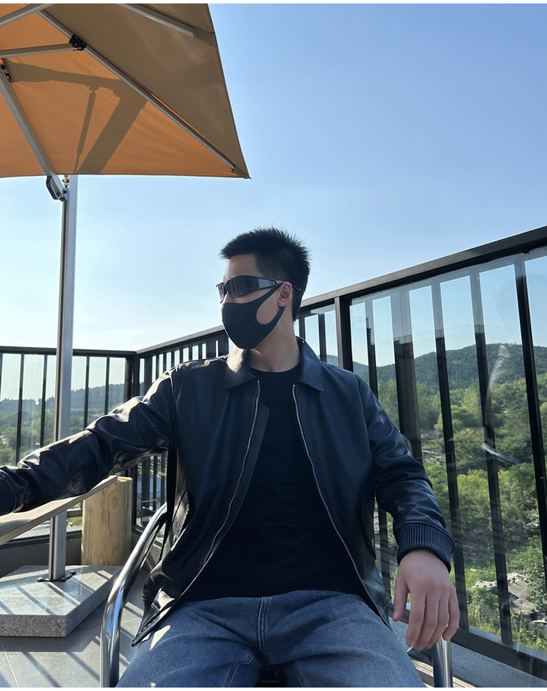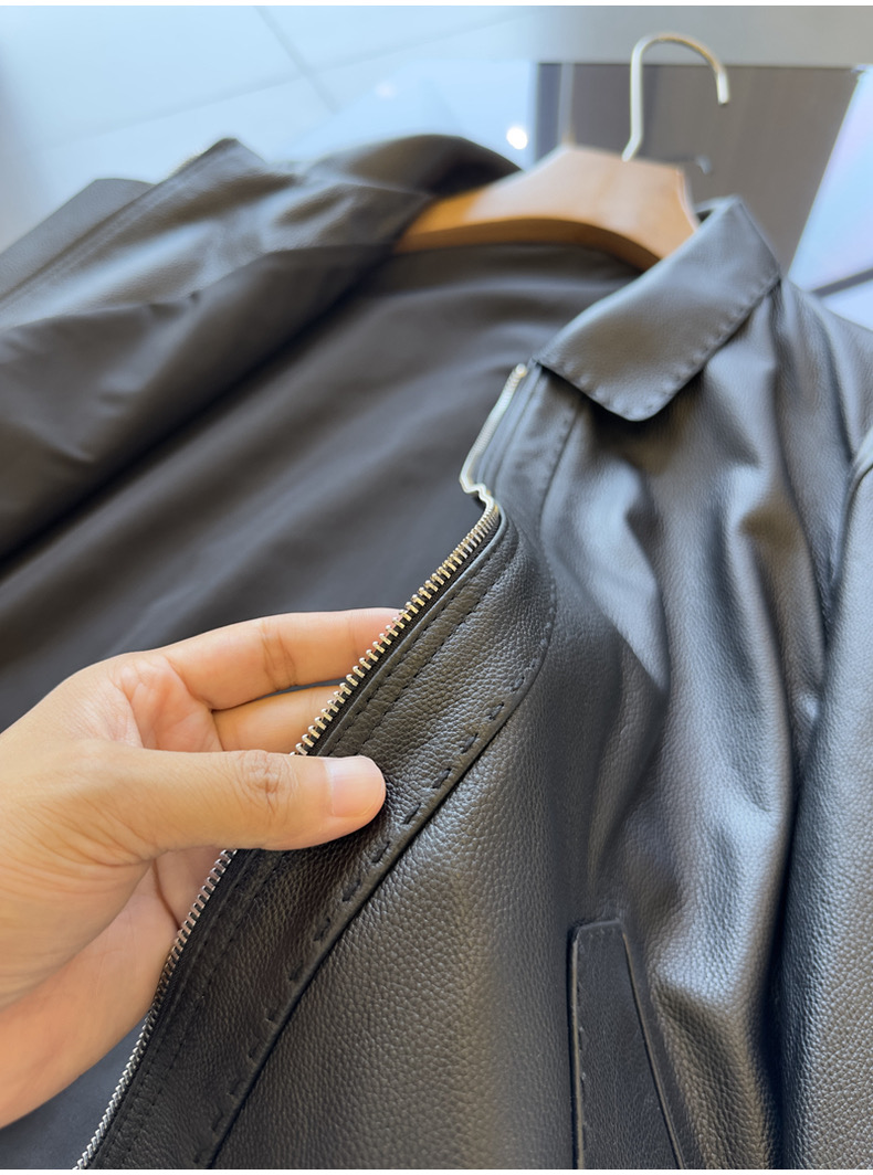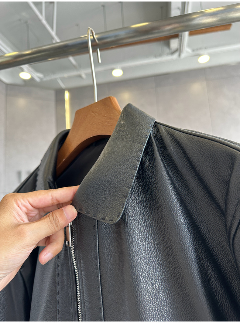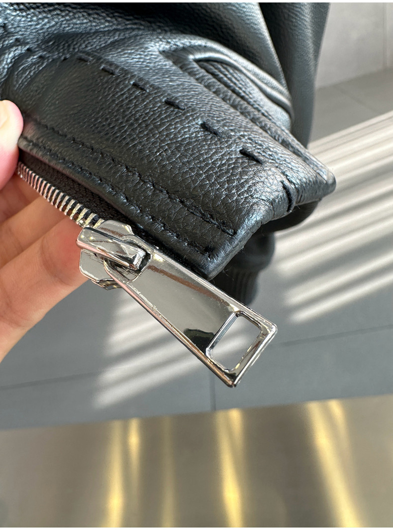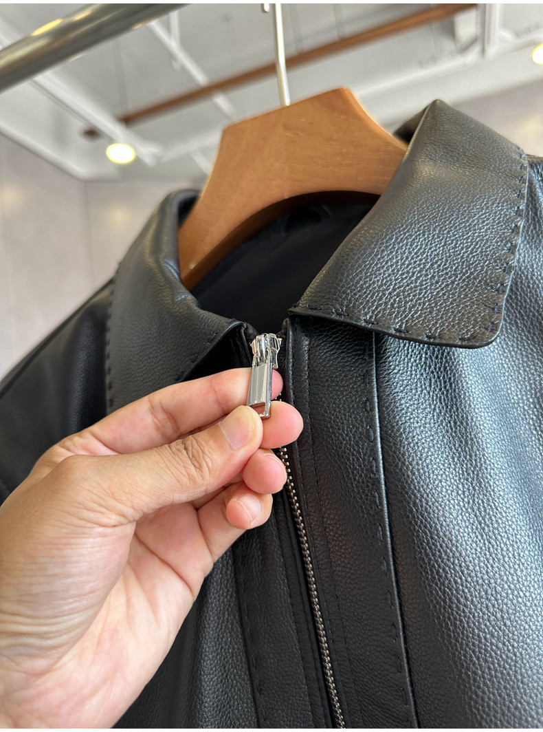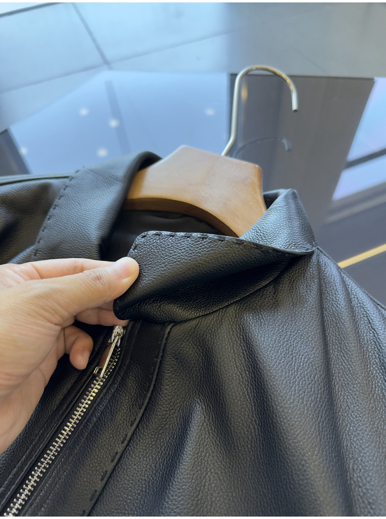 整皮设计,就连螺纹袖口下摆领子都是真皮的哦!