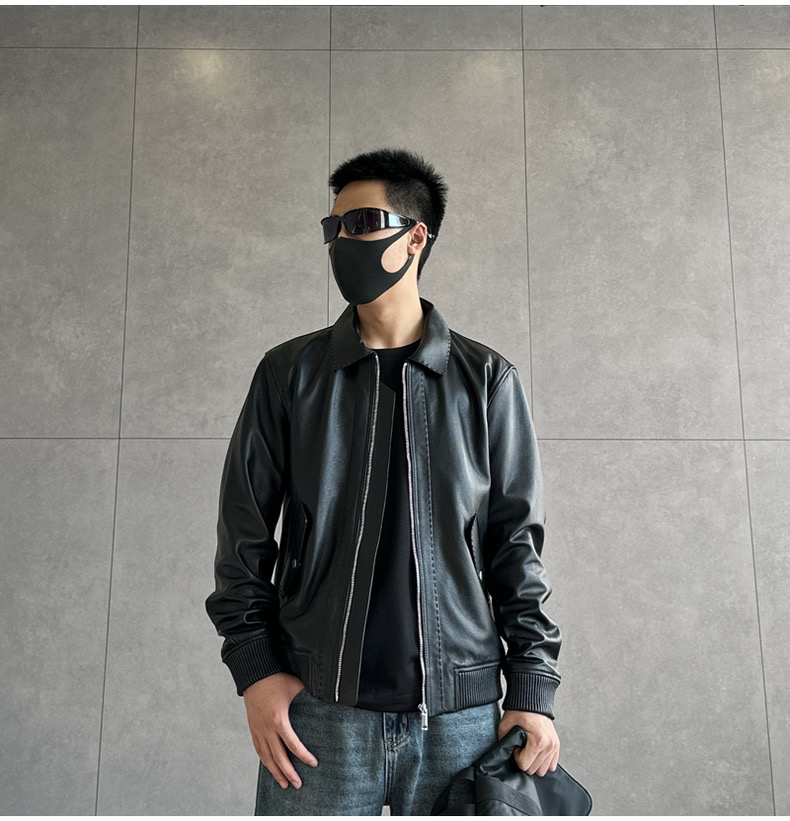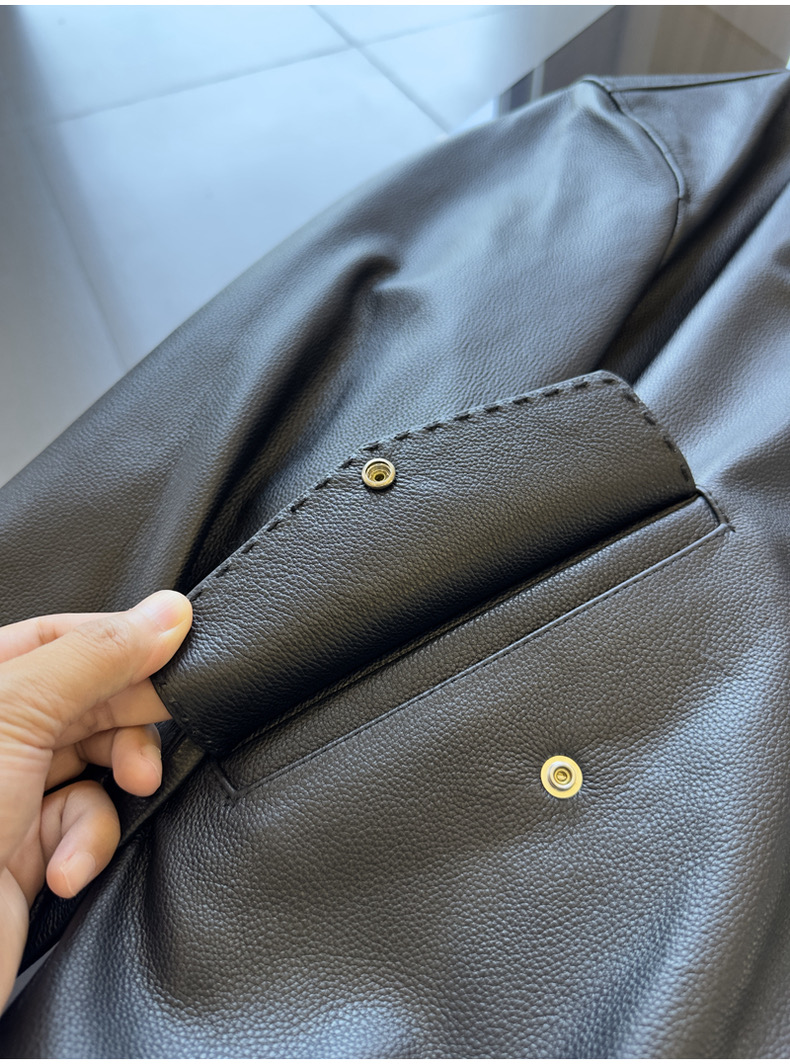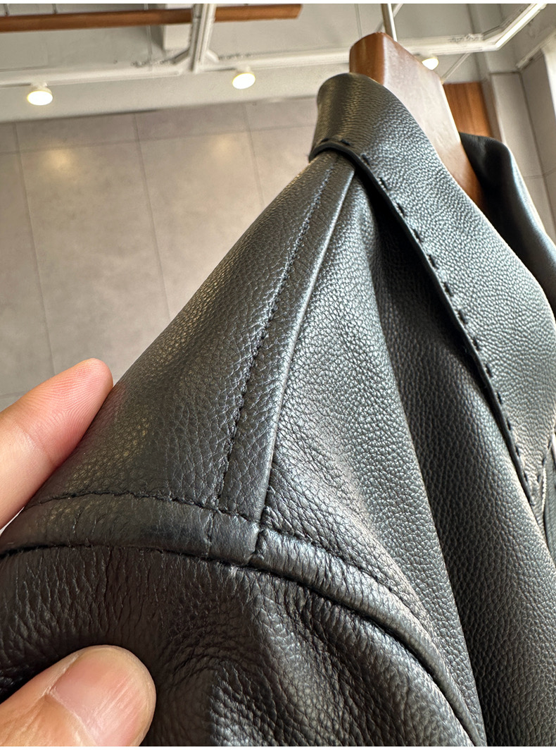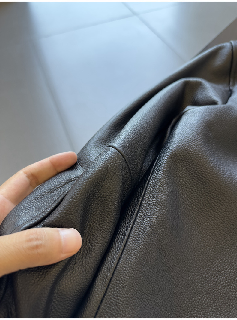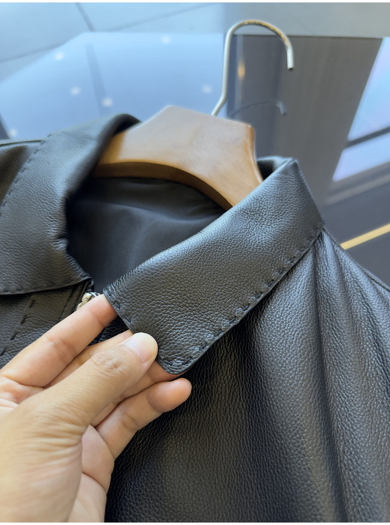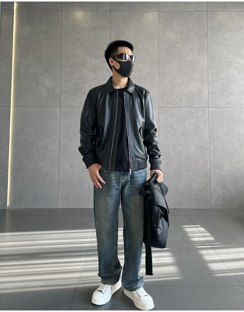 整皮设计,就连螺纹袖口下摆领子都是真皮的哦!