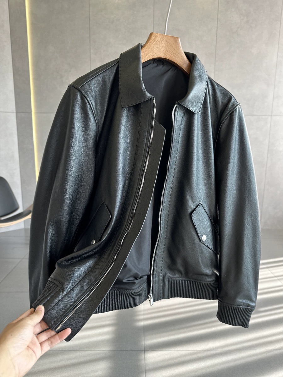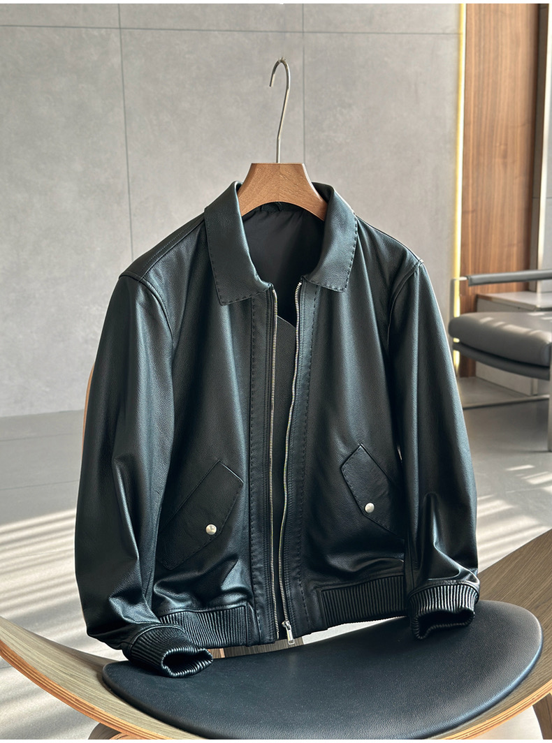 1月28号库存已做清仓捡漏。Xxxxl推荐170到200斤。之前卖750!穿十年没问题的皮衣!!一线渠道工厂代工 改良款男士飞行夹克真皮皮衣进口牛皮皮衣