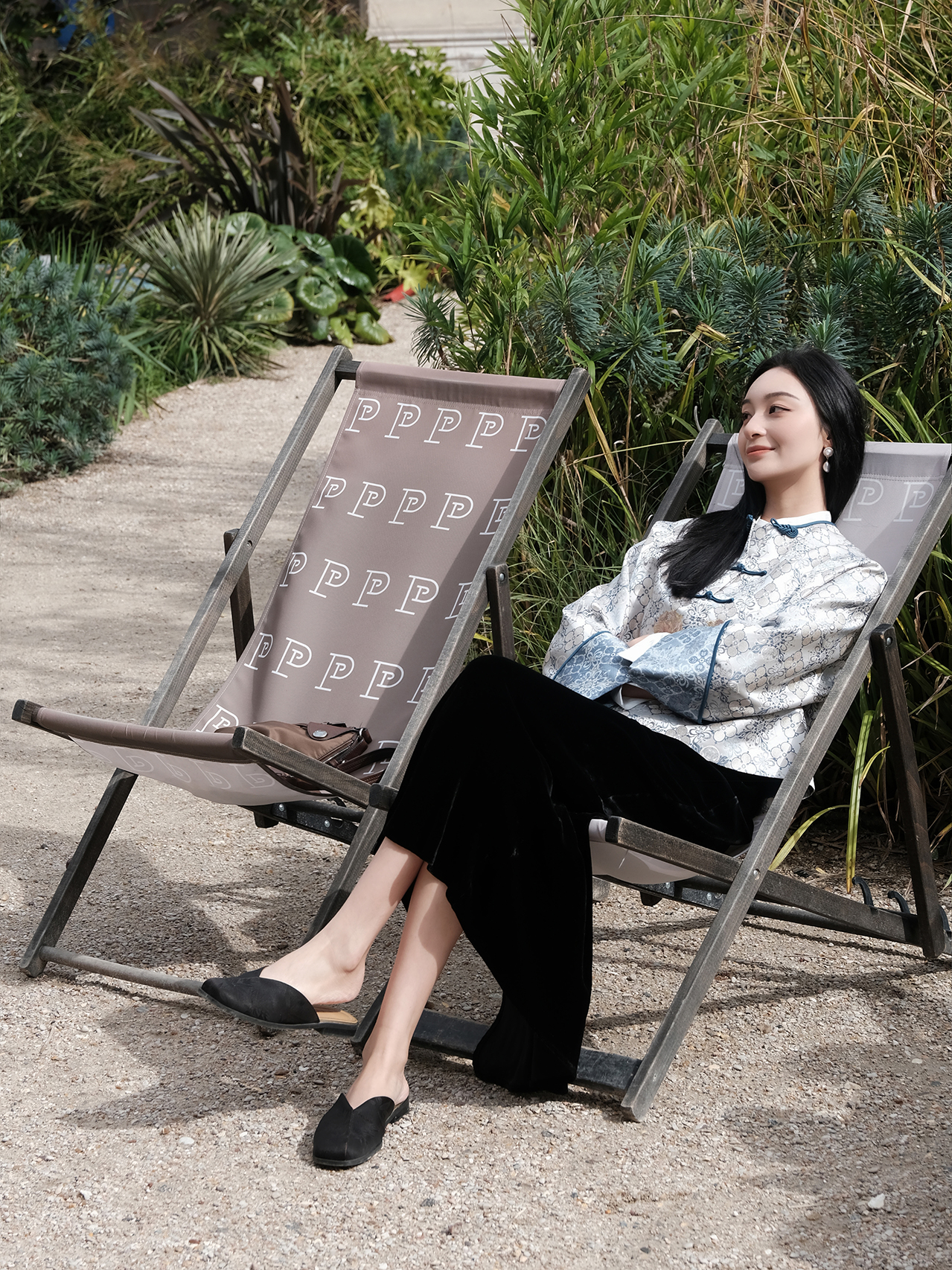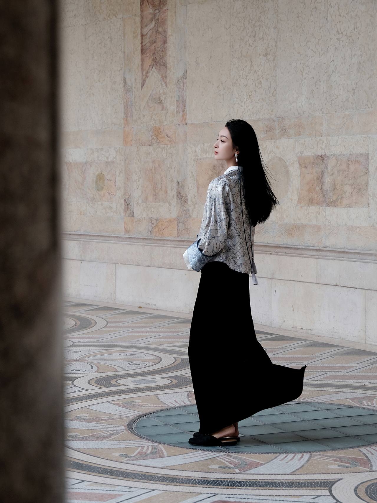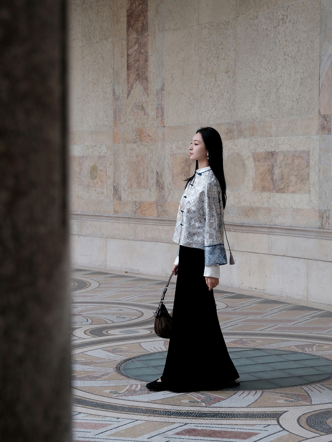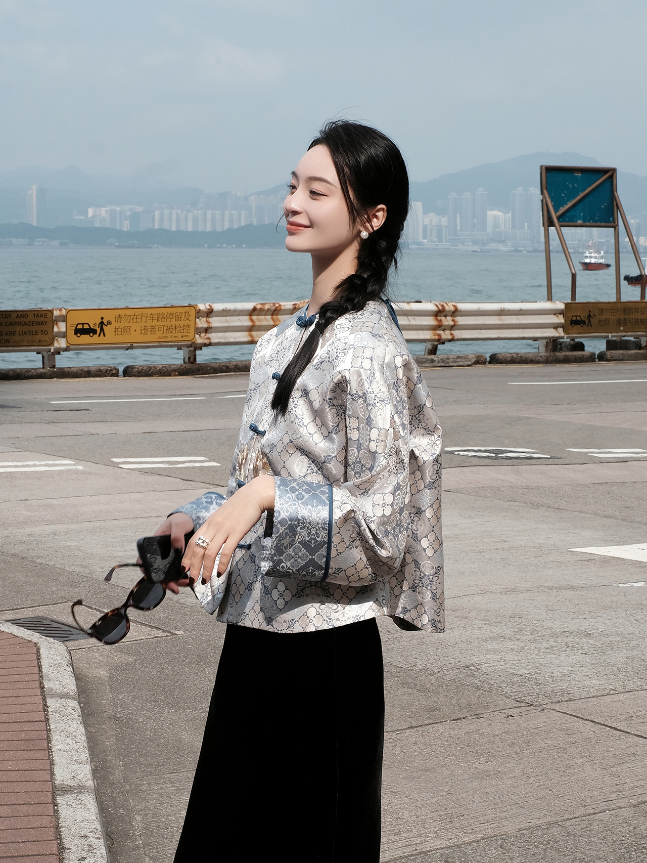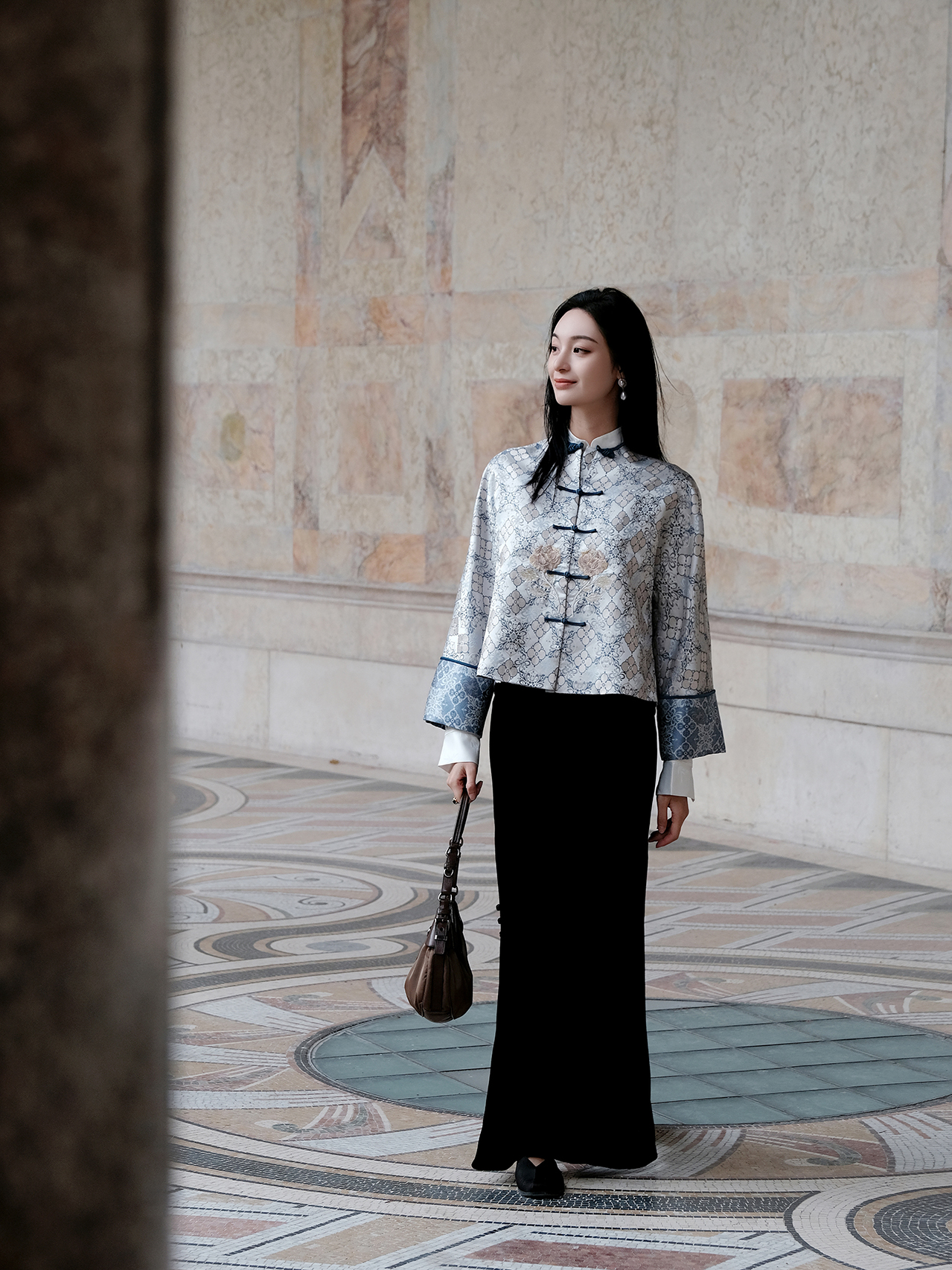 东方境X郭培| 牡丹刺绣提花新中式外套-灰蓝