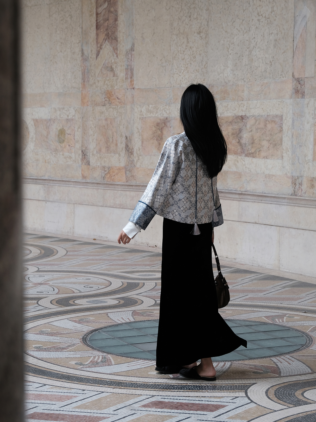 盛唐婧 |真丝宋锦钱币纹对襟马甲