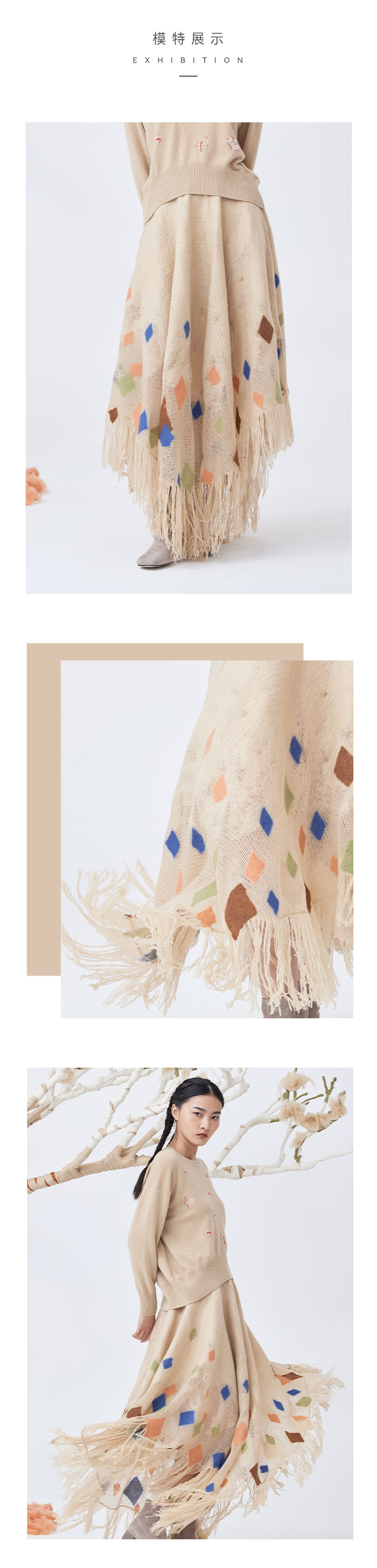 菱格手工毛毡羊绒针织半身裙 SJF93W347N