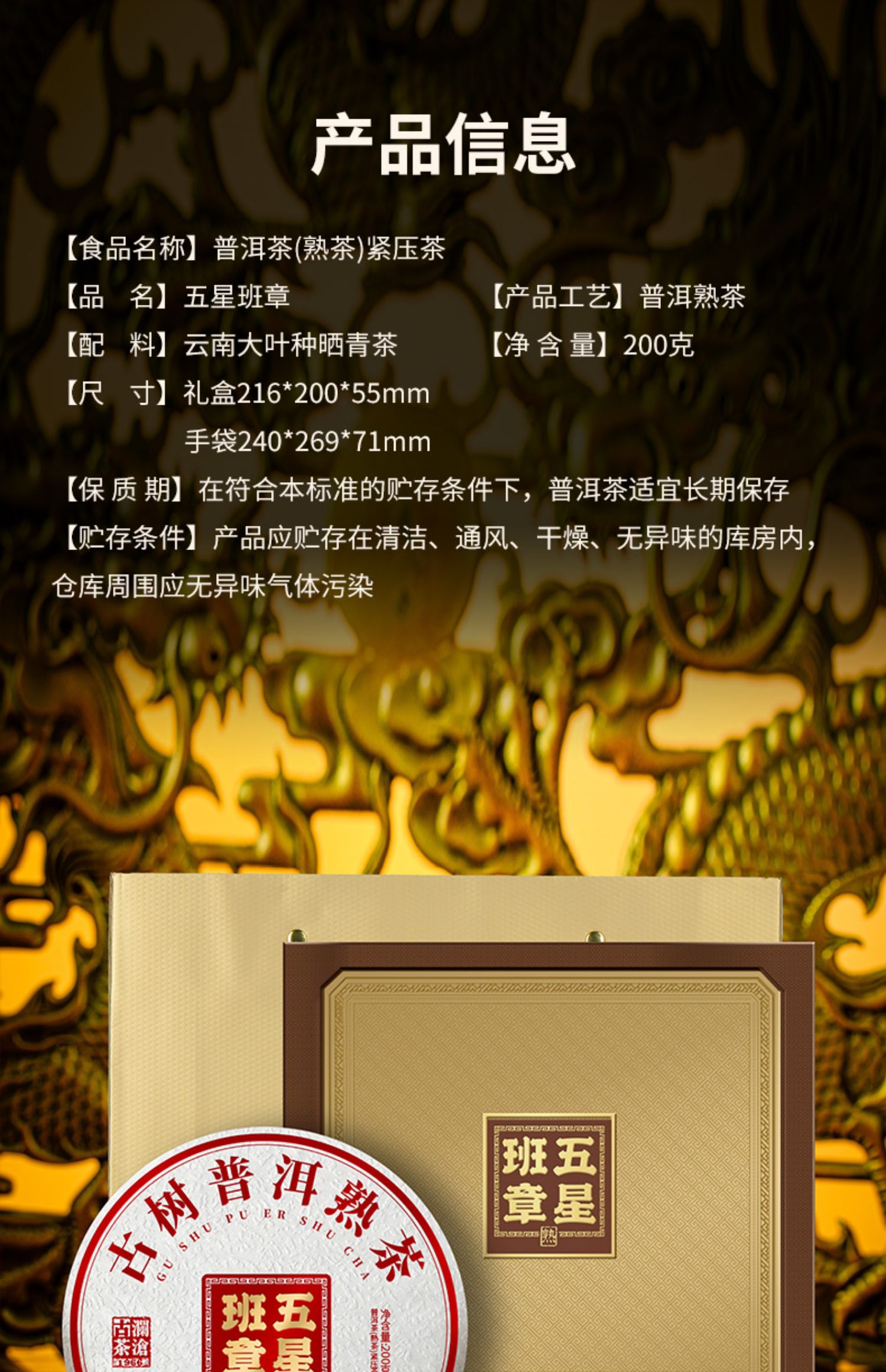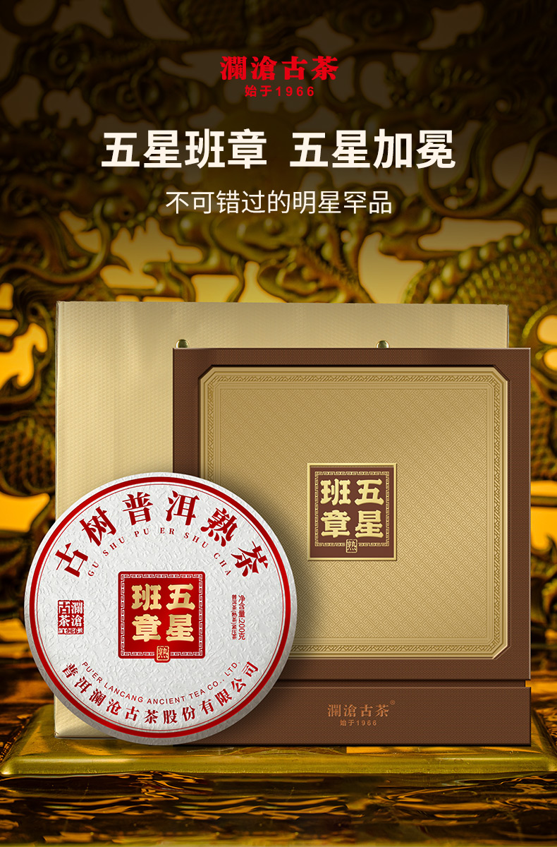 澜沧古茶2022五星班章小饼云南高山古树茶普洱熟茶茶饼茶叶礼盒装