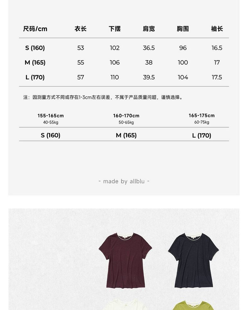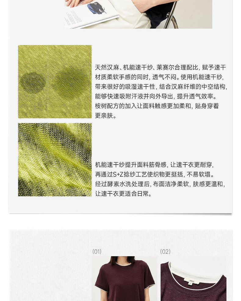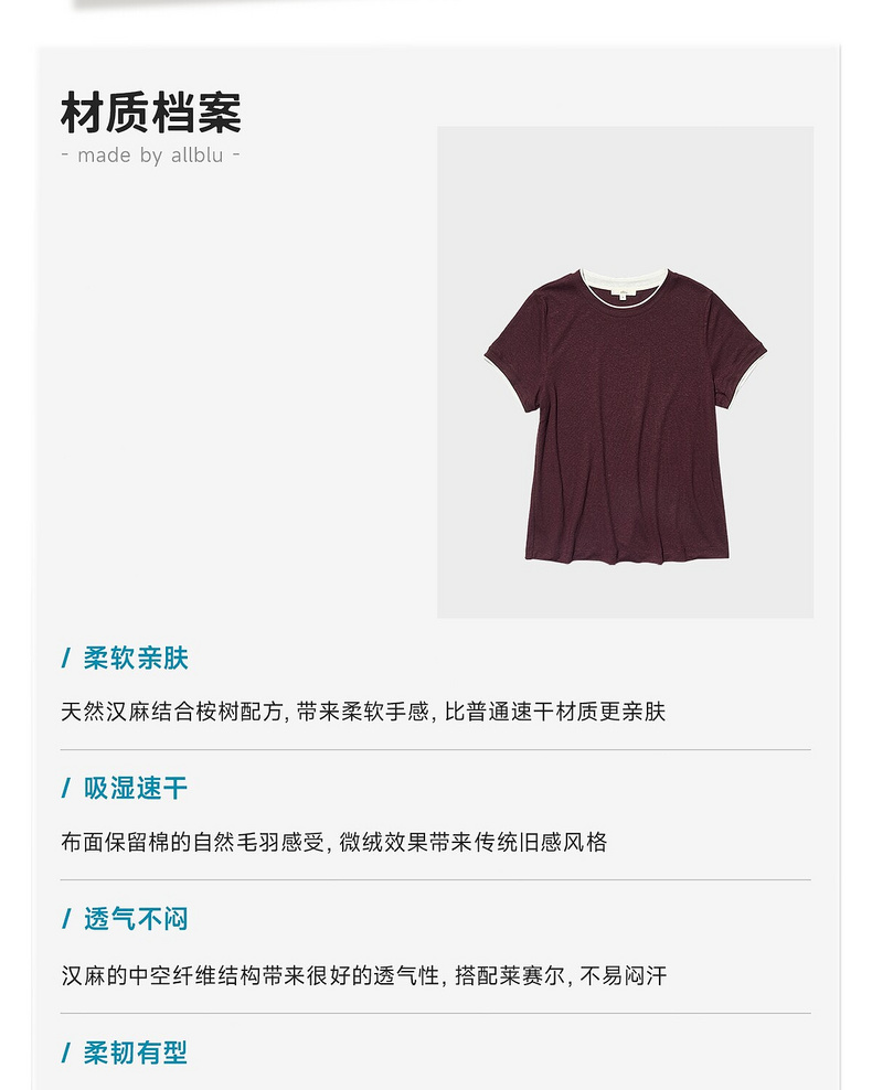 allblu女装“夏季的清爽方案”26春夏【汉麻速干】女士短袖T恤