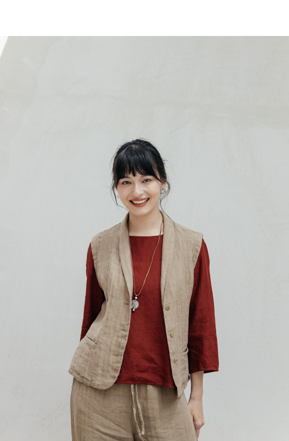 以天然亚麻为载体,融合热烈色彩与自在剪裁为身在城市、心怀远方的女性提供兼具美学与舒适的旅行着装