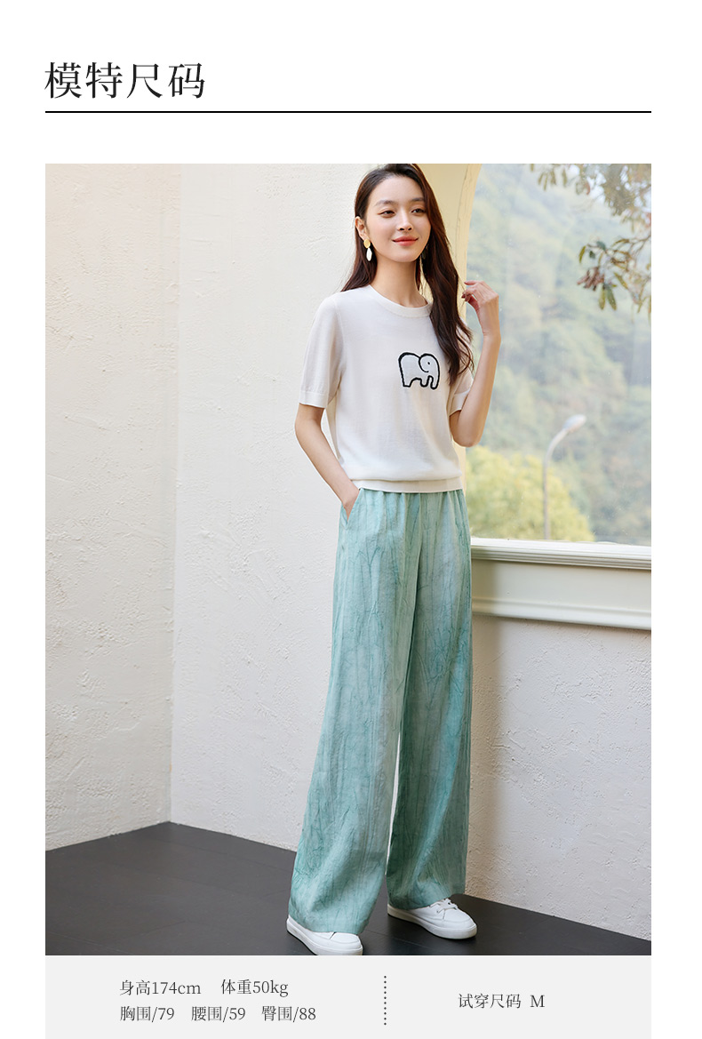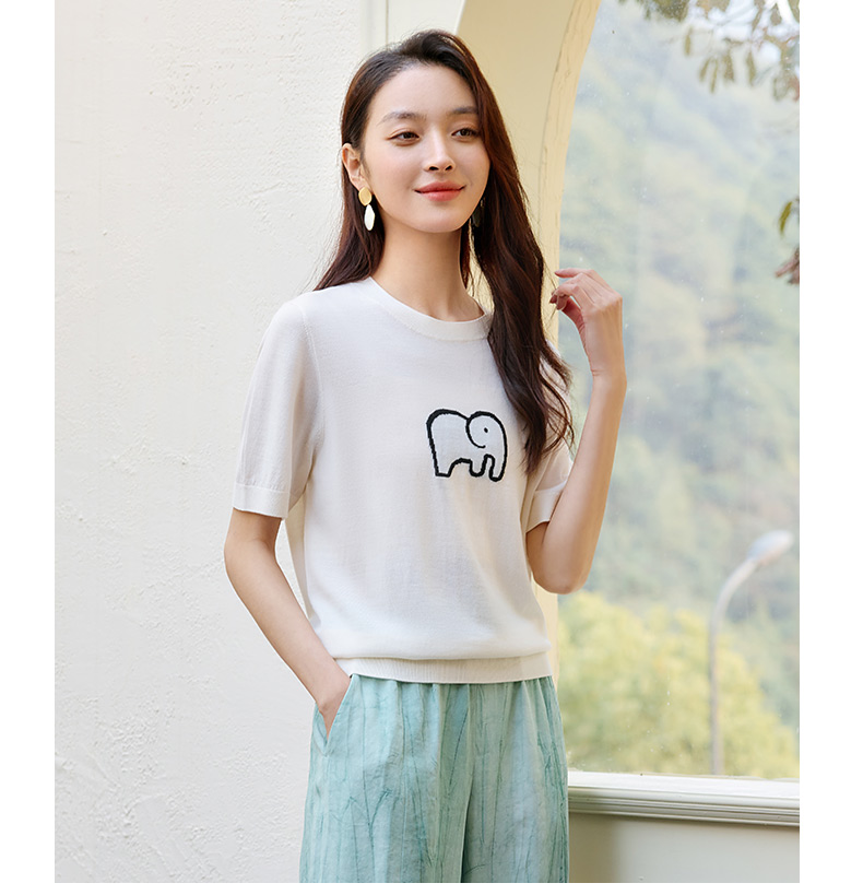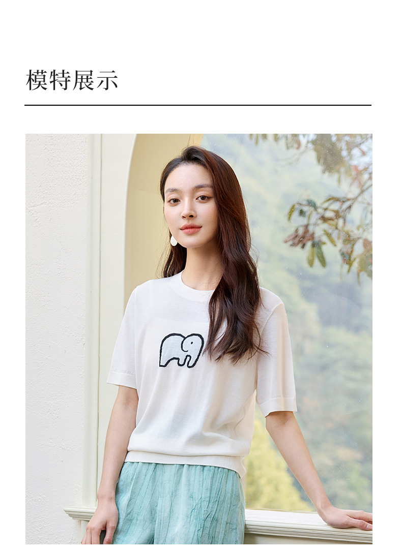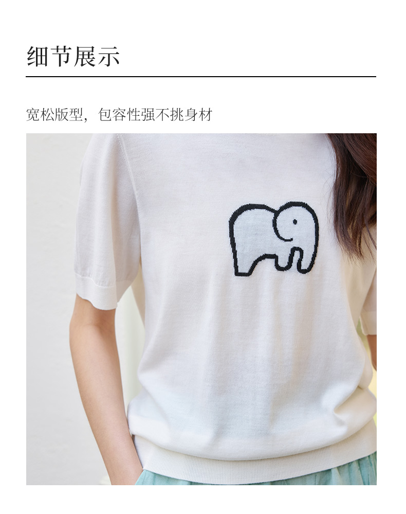 玳莎减龄感小象提花针织衫2025夏季新款简约通勤羊毛短袖圆领T恤 FB33103