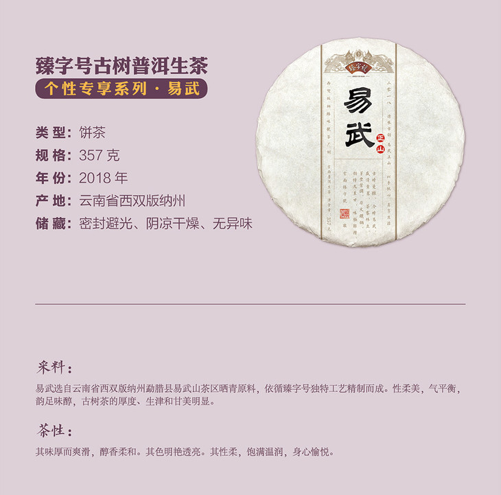 2018年 臻字号 个性专享系列 【易武】正山 普洱生饼 357g