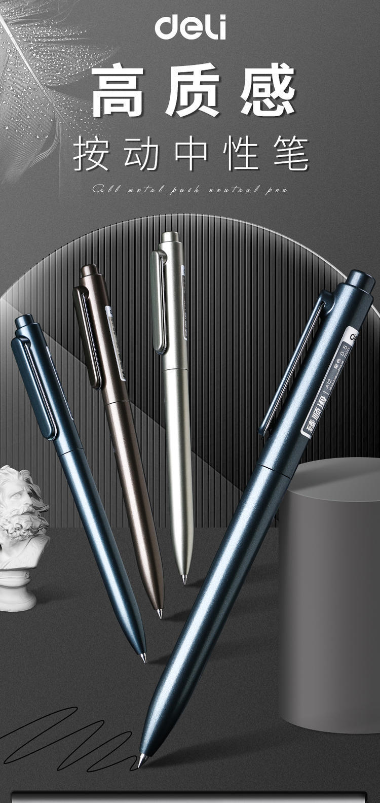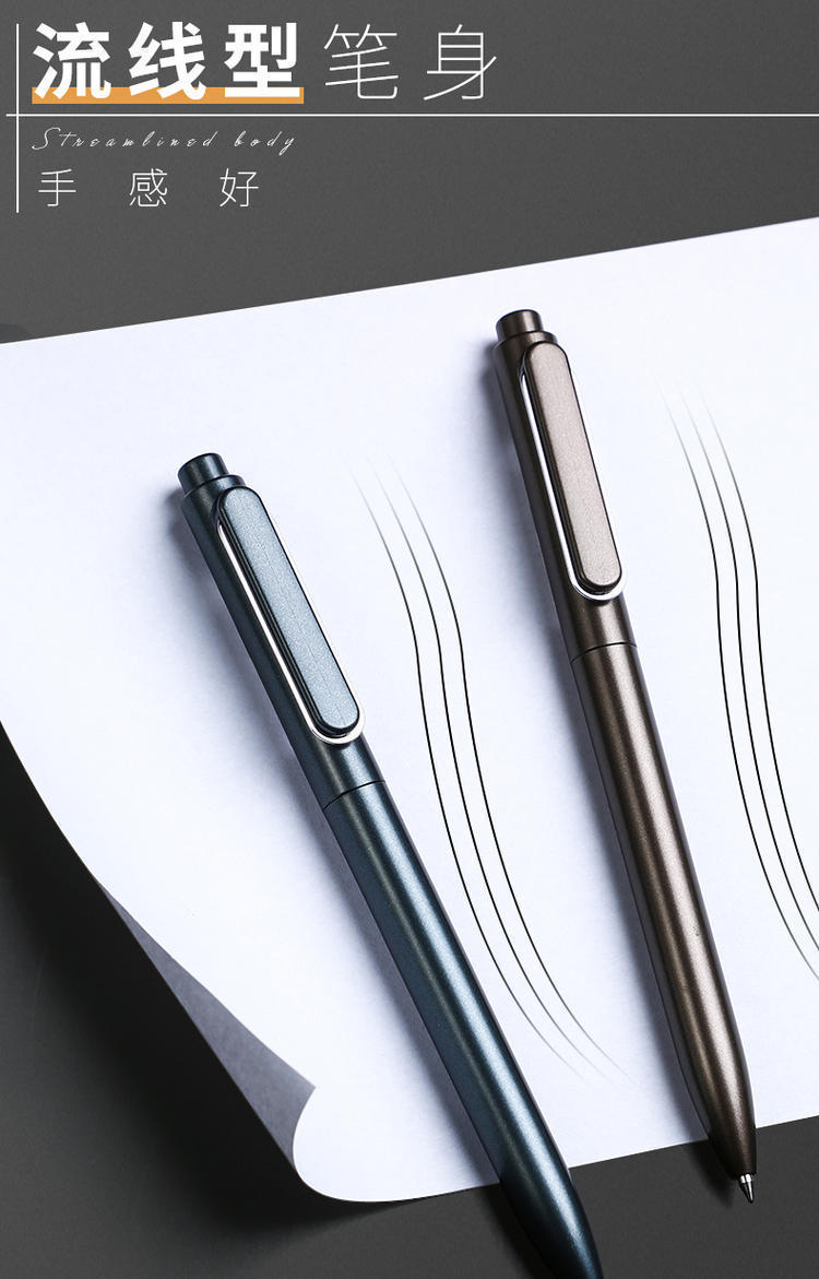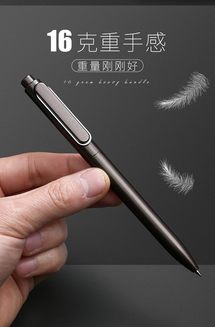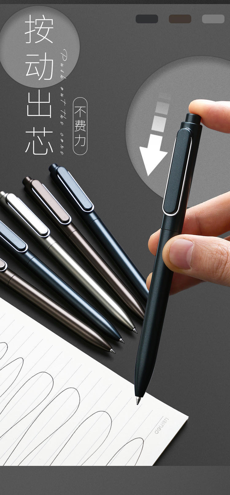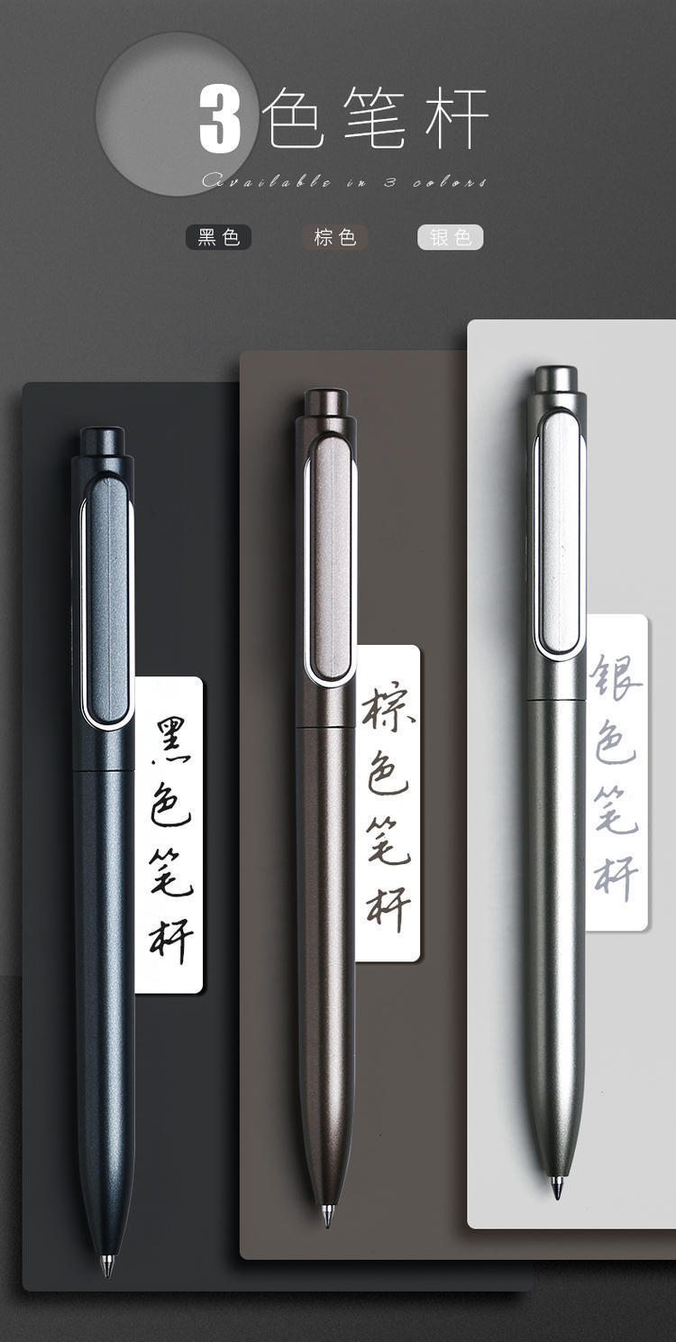 得力A12金属感商务按动签字笔0.5mm黑色签字笔水性笔碳素笔1支