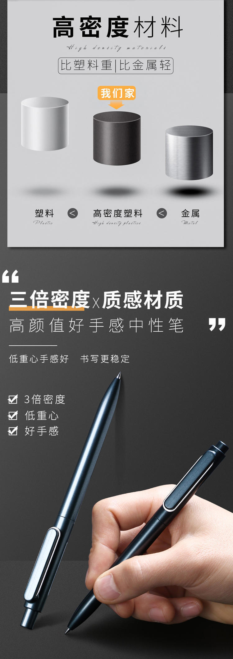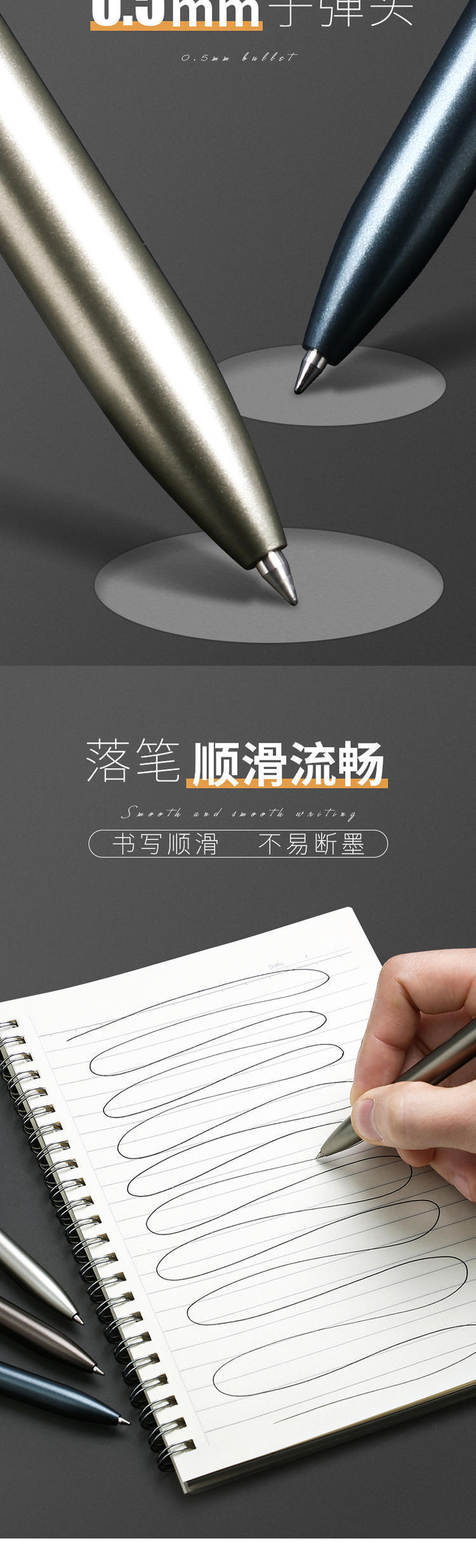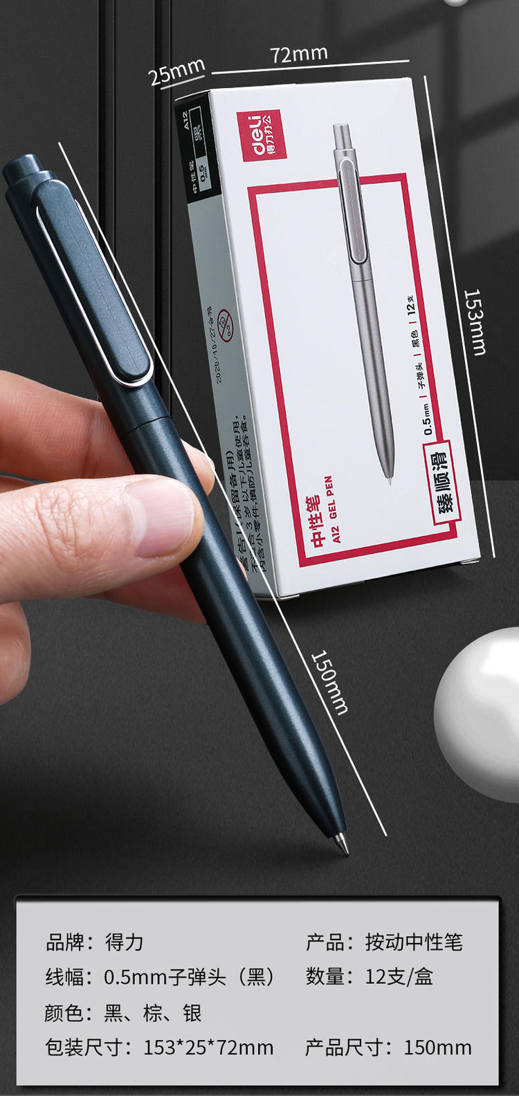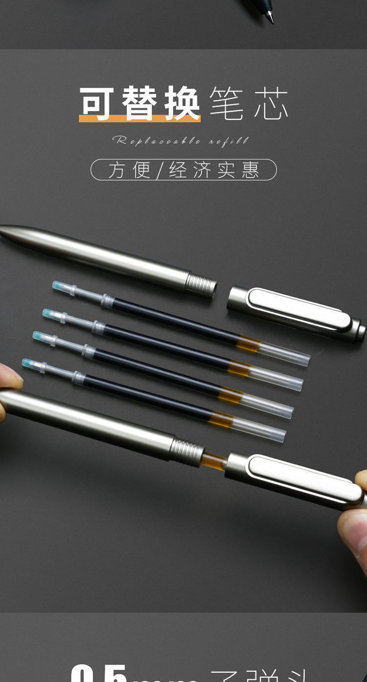 得力A12金属感商务按动签字笔0.5mm黑色签字笔水性笔碳素笔1支