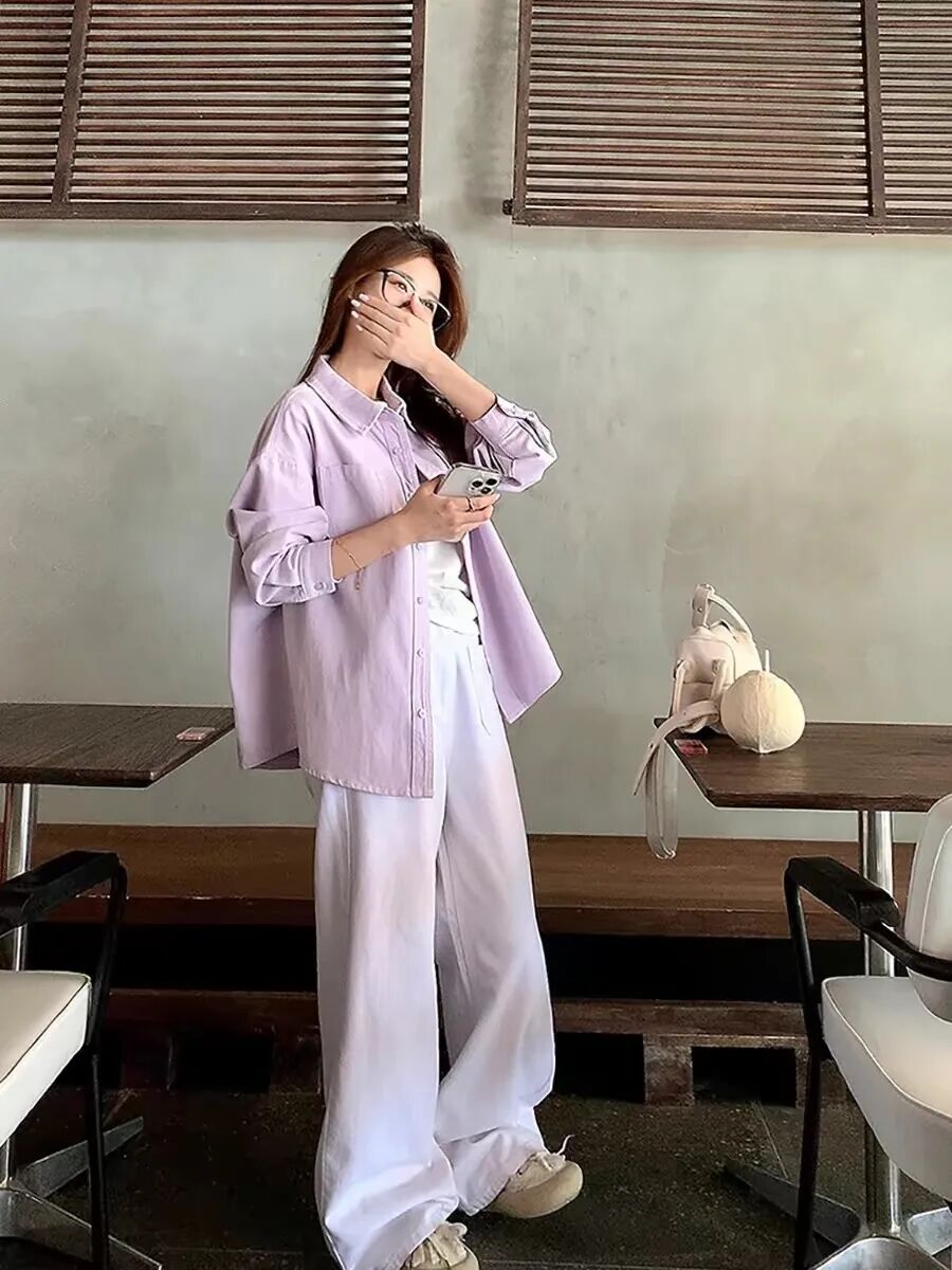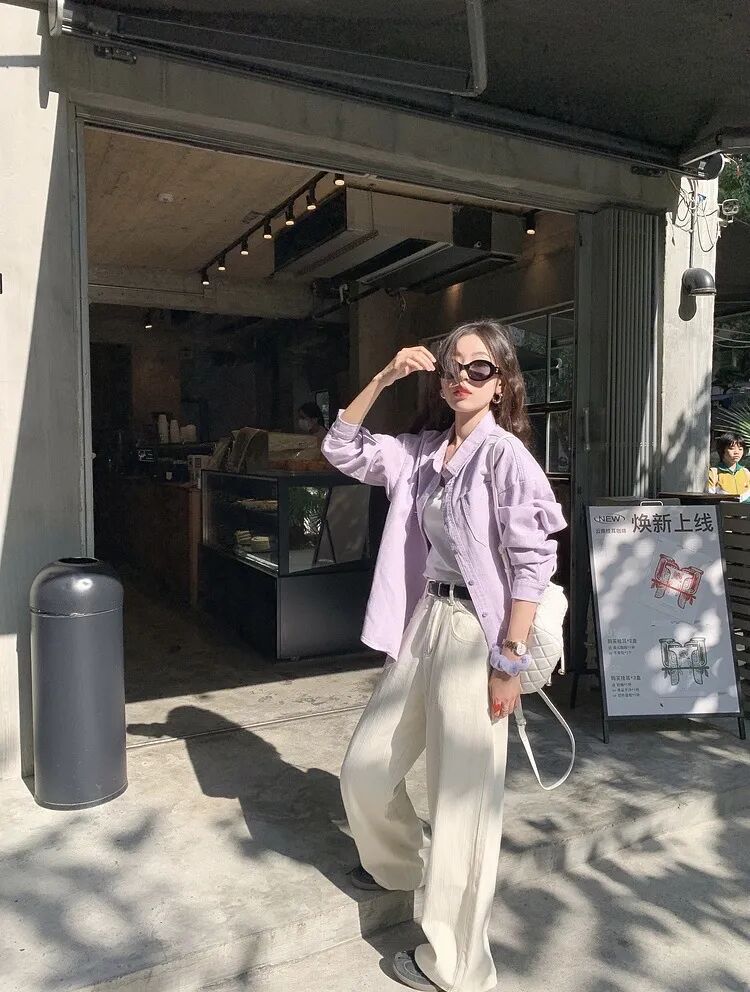 低饱和香芋紫色真的显白自带氛围感,材质很舒服柔软,版型宽松慵懒!