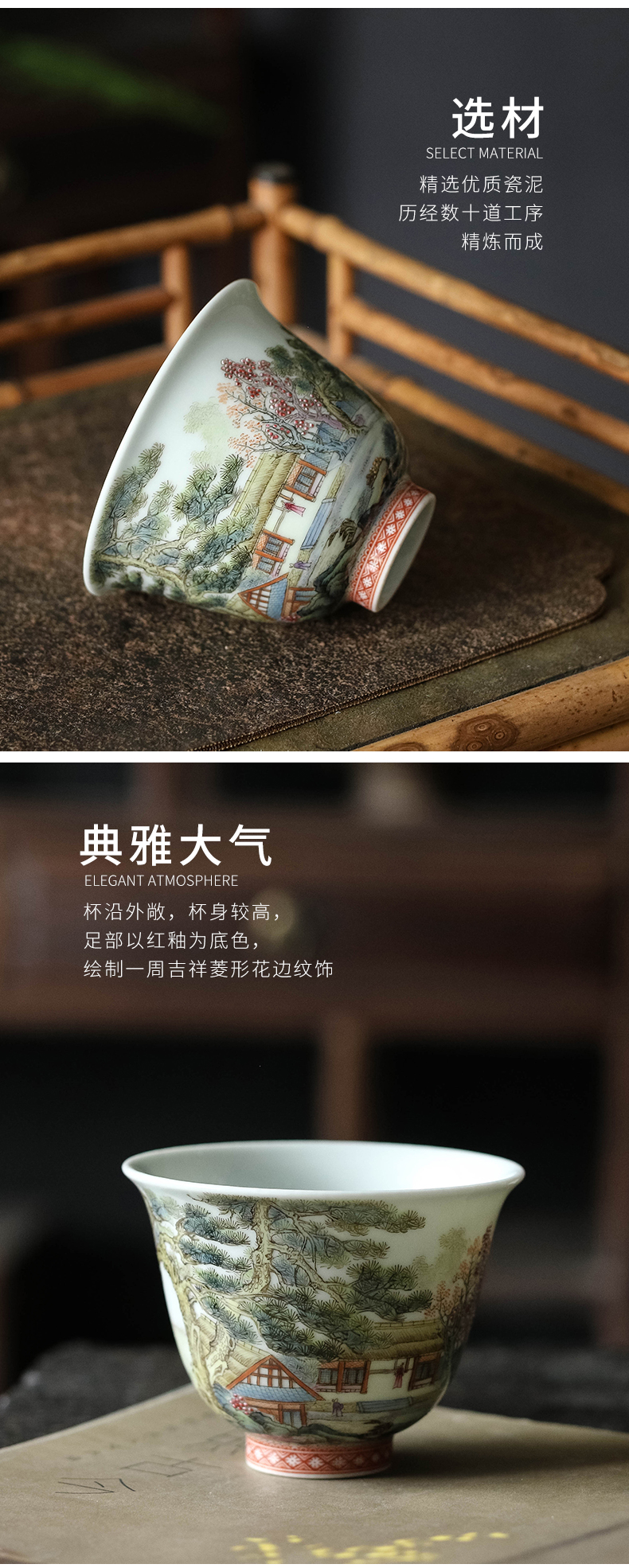 宝瓷林 | 漆红雕刻 · 粉彩开窗四君子杯 纯手工主人杯