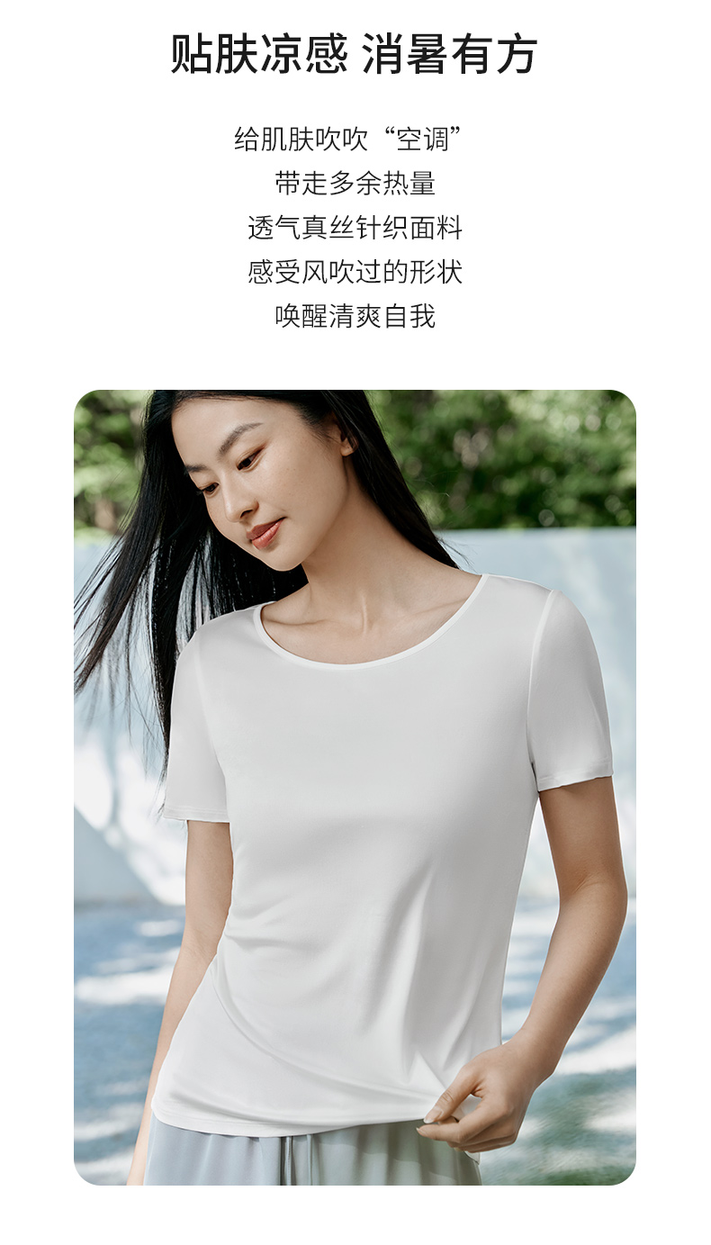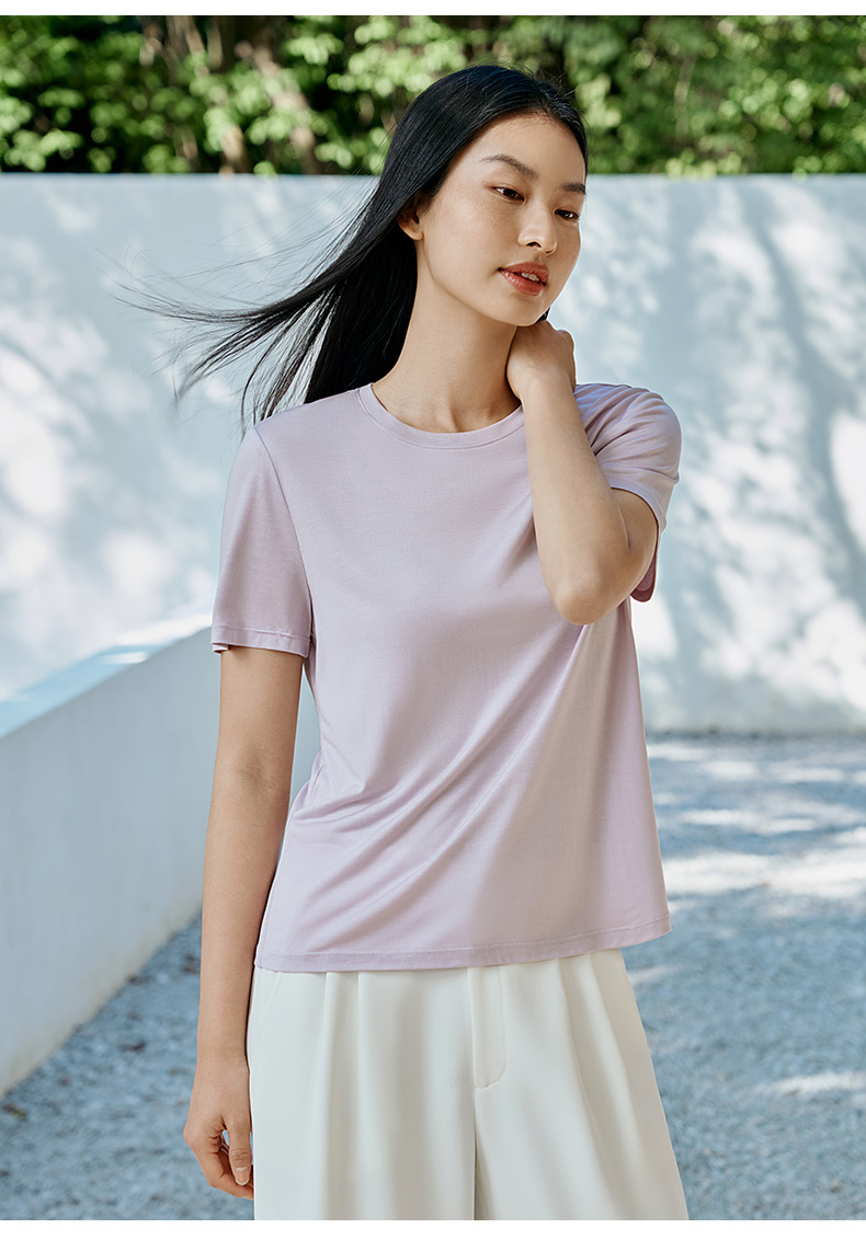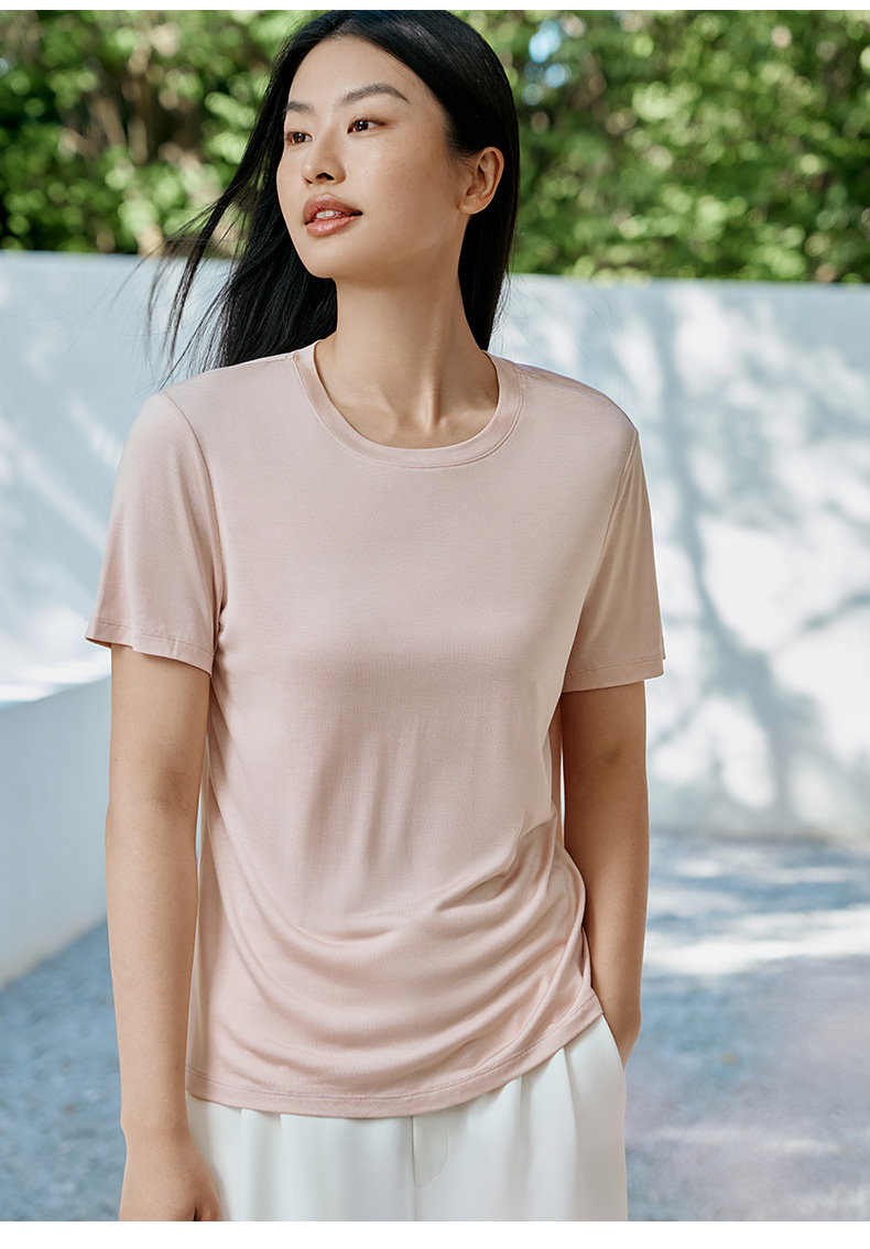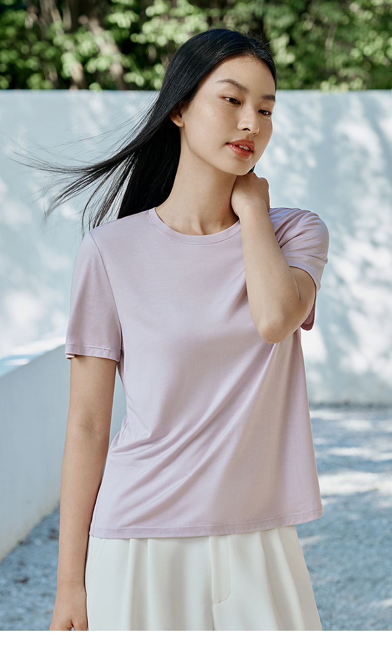 【真丝凉感小T】100%桑蚕丝舒适透气纯色女上衣T恤春夏新品金三塔 8YZF5B705/YZFDA703