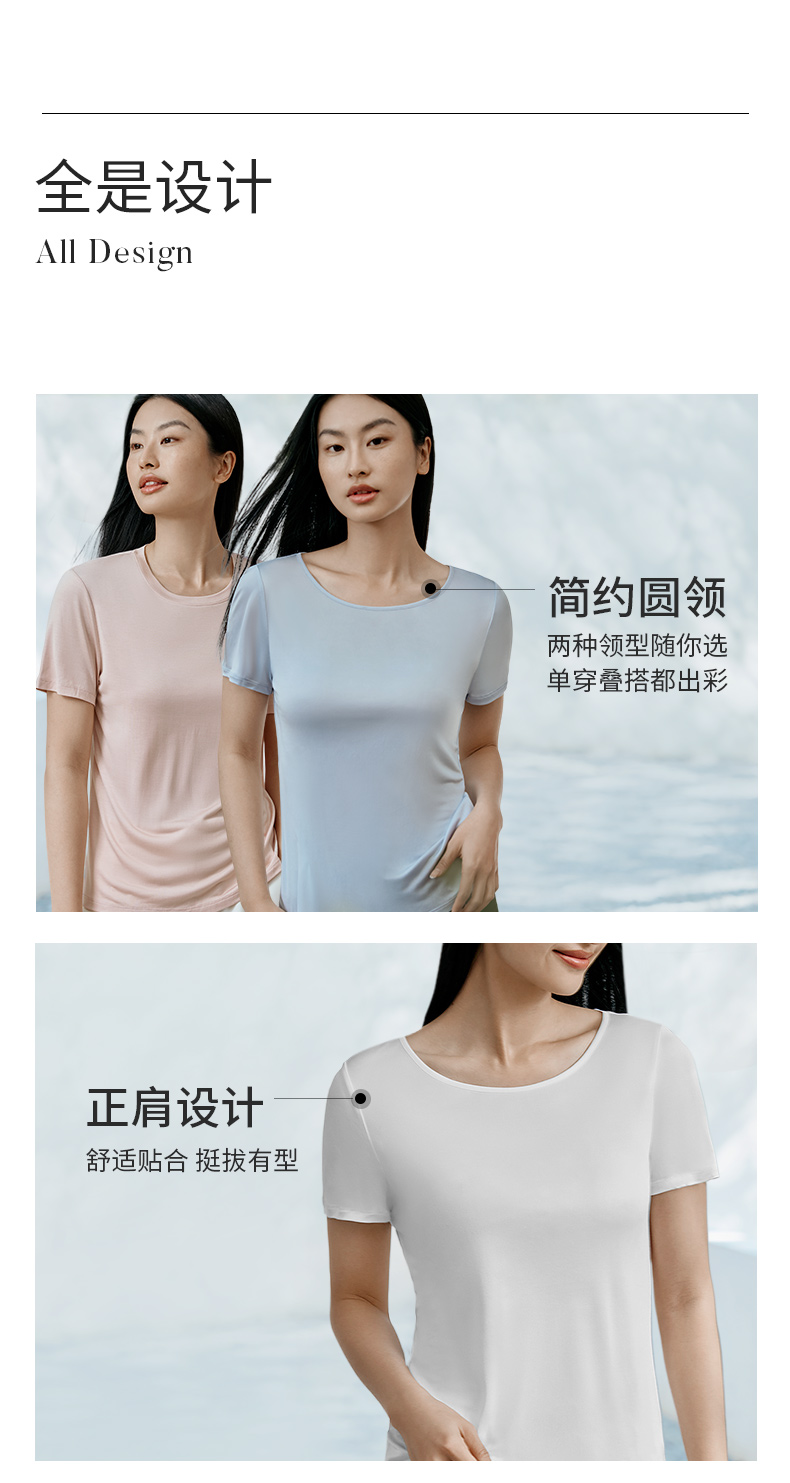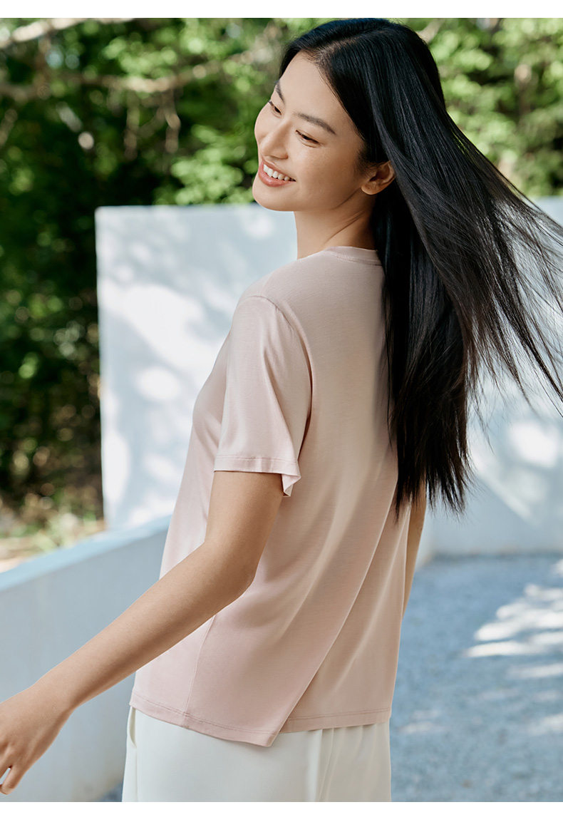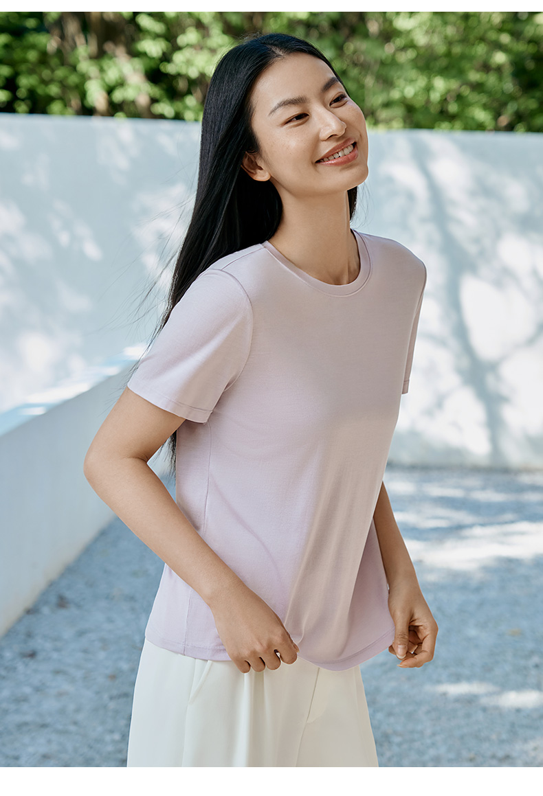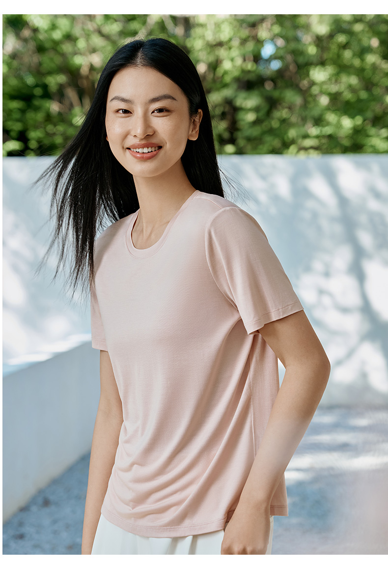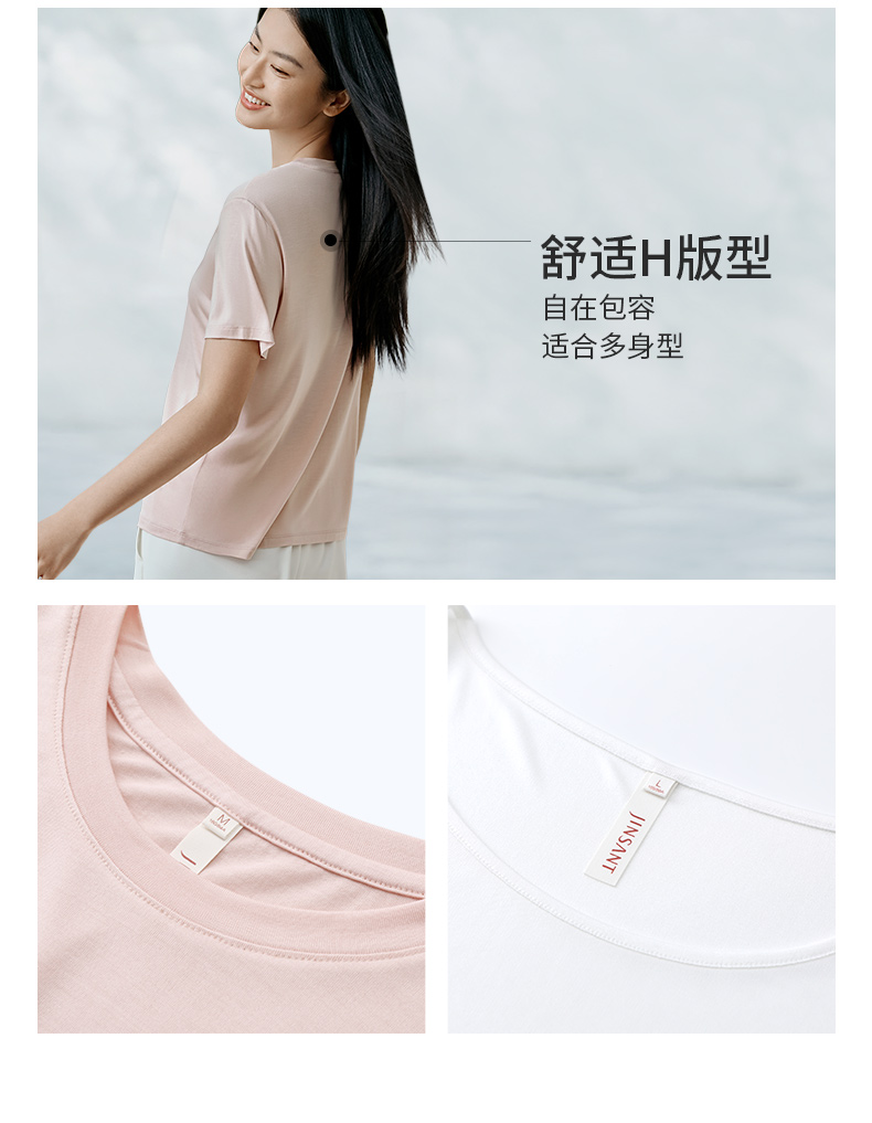 【真丝凉感小T】100%桑蚕丝舒适透气纯色女上衣T恤春夏新品金三塔 8YZF5B705/YZFDA703