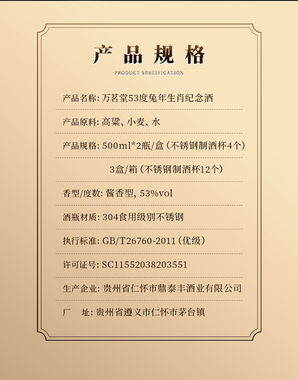 万茗堂·兔年生肖纪念酒53度酱香型优级白酒礼盒