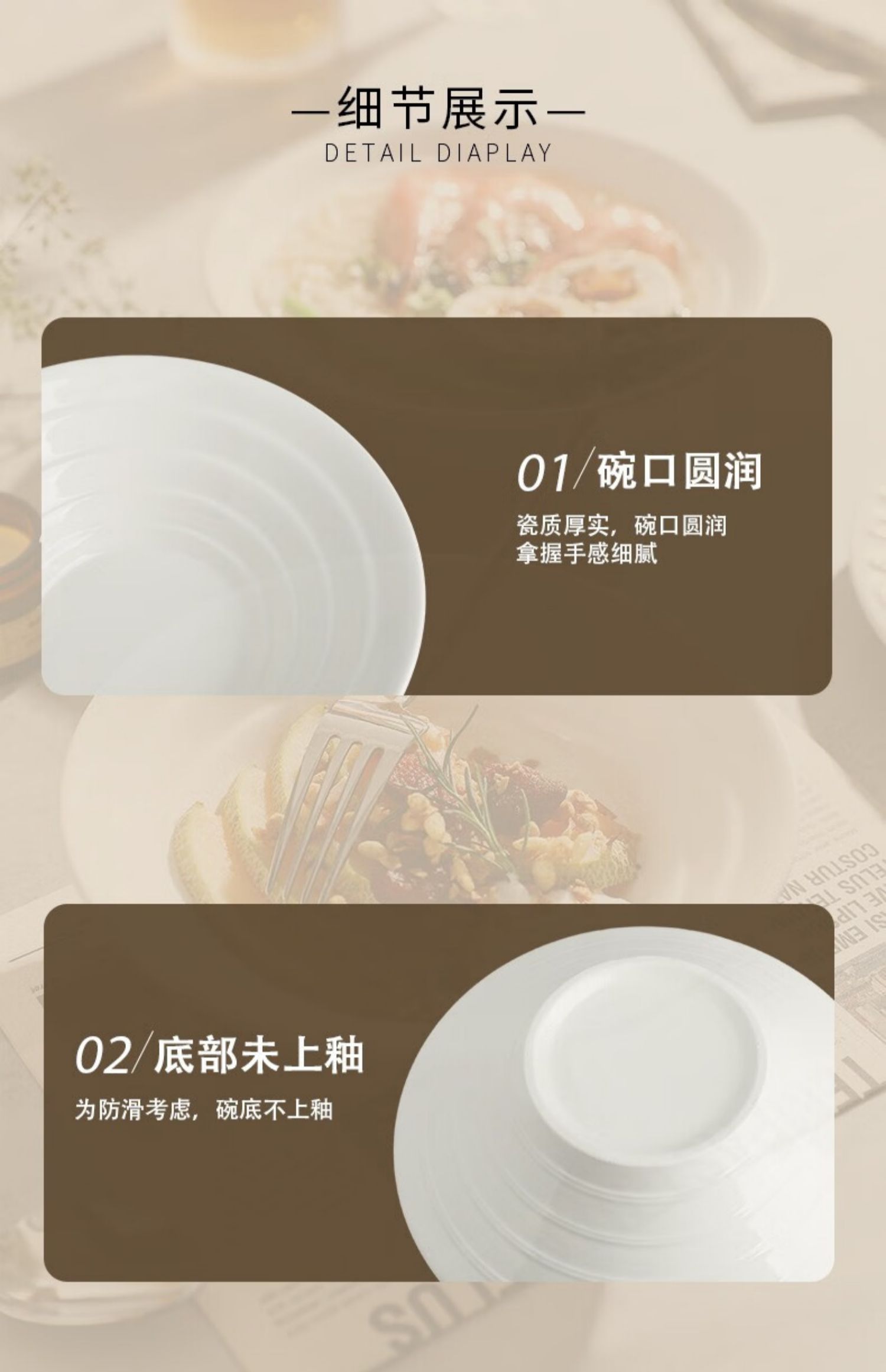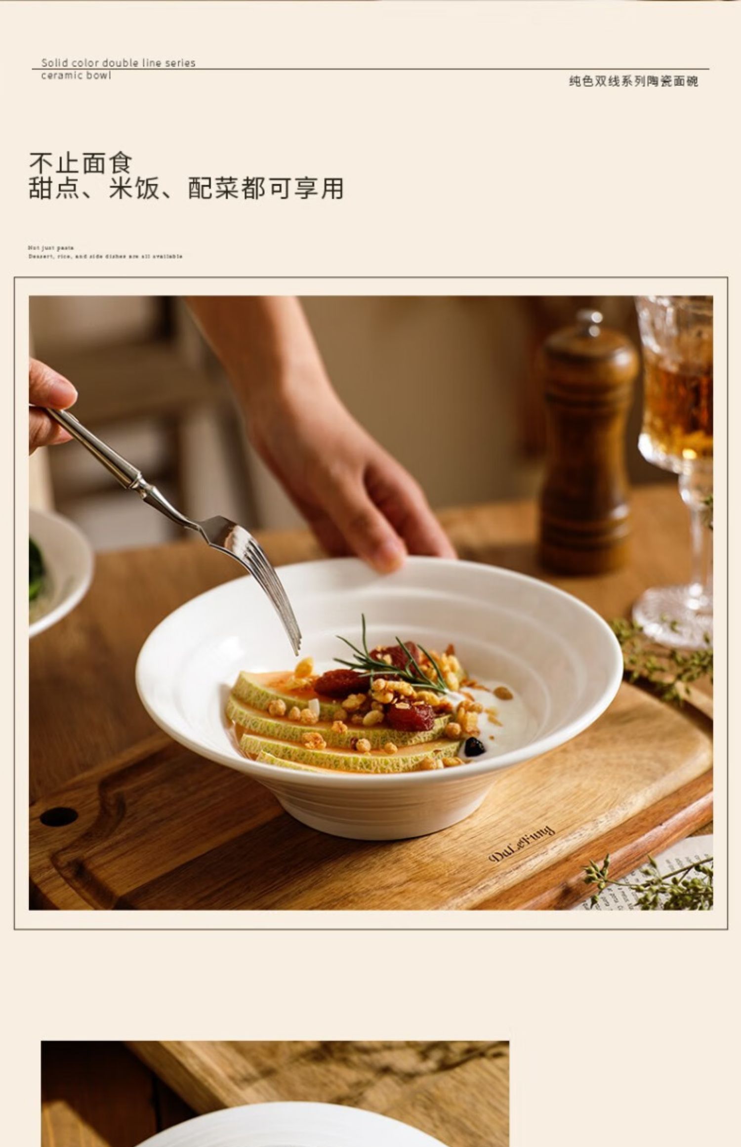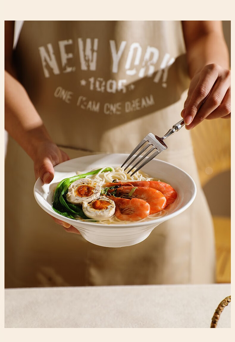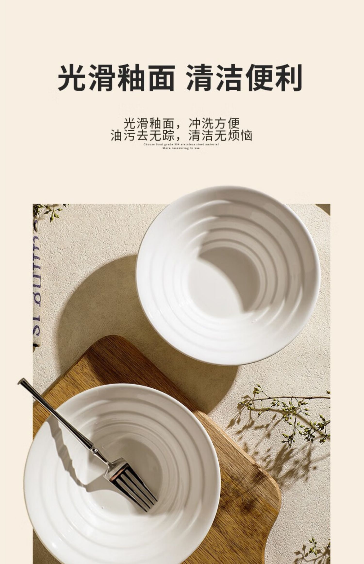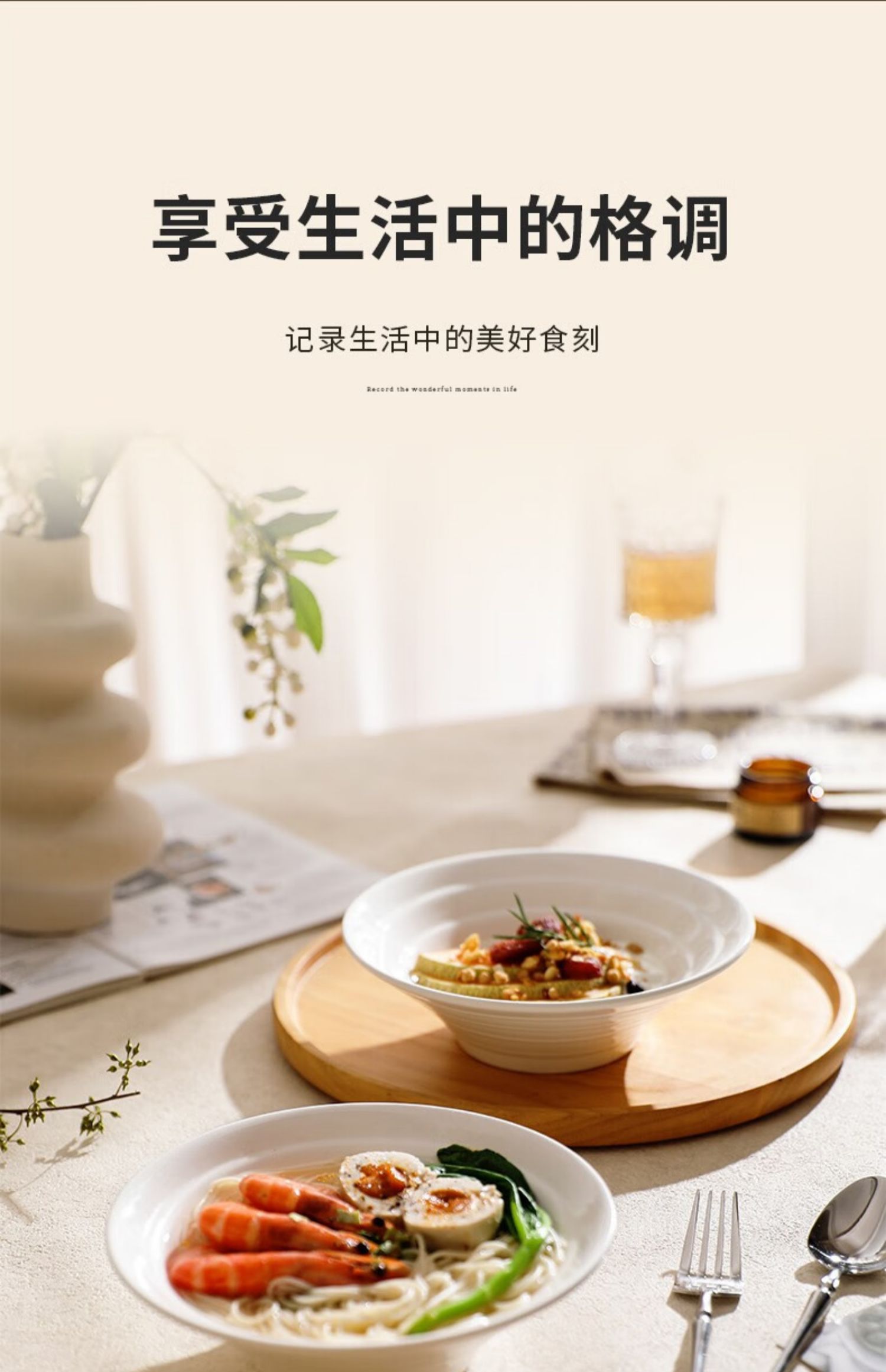 Higoo·嗨购 轻奢极简碗盘系列 8.5英寸中古浮雕餐盘/4.7英寸法式浮雕碗套装/8英寸纯色陶瓷汤碗面碗