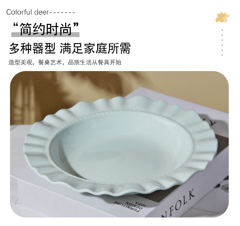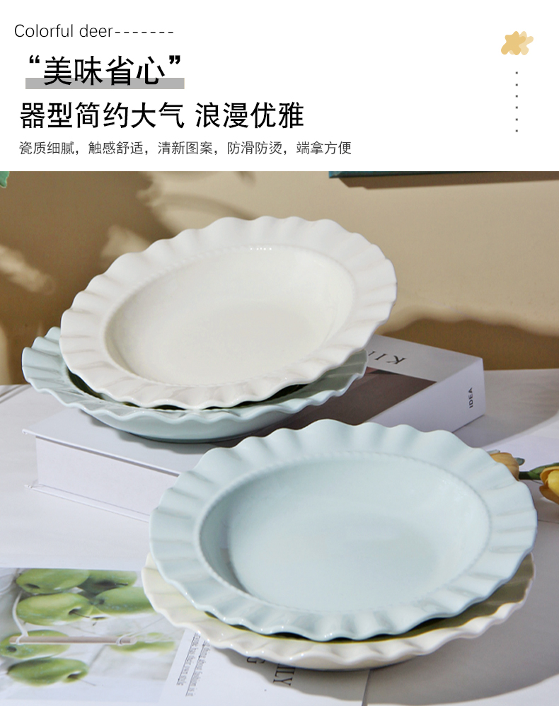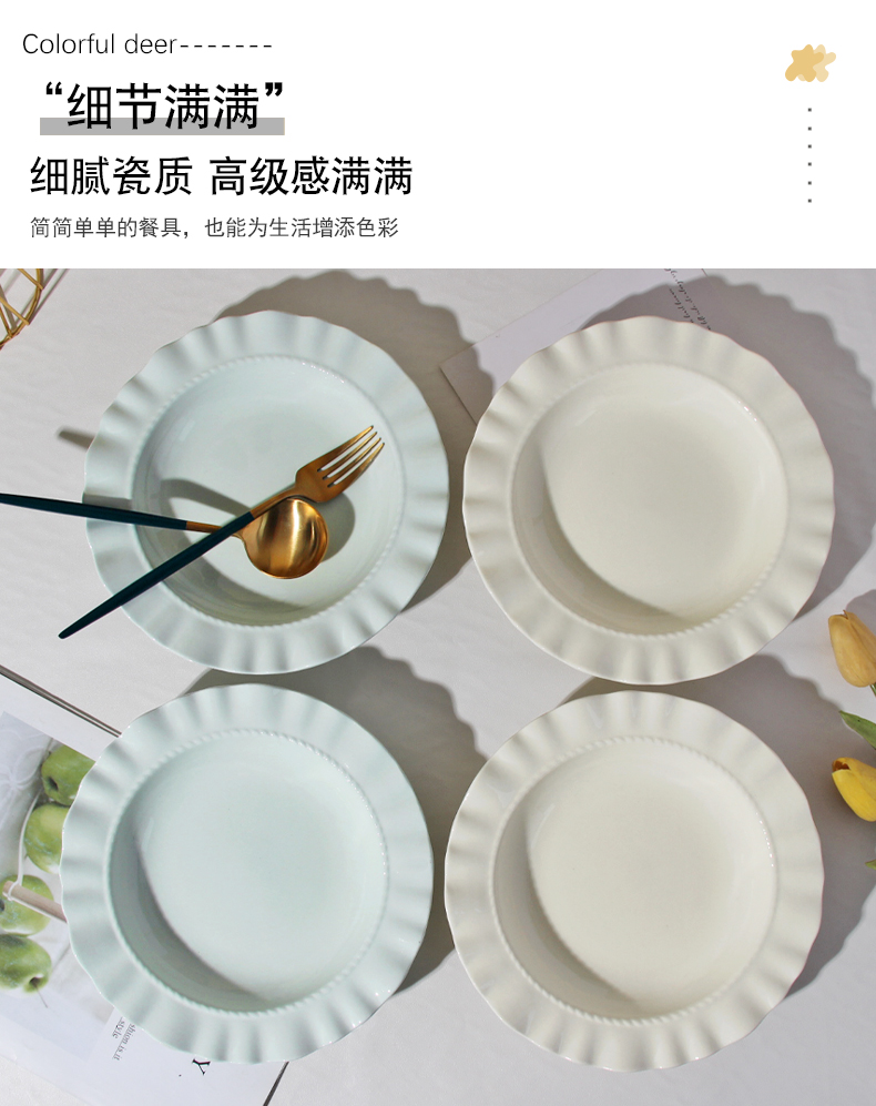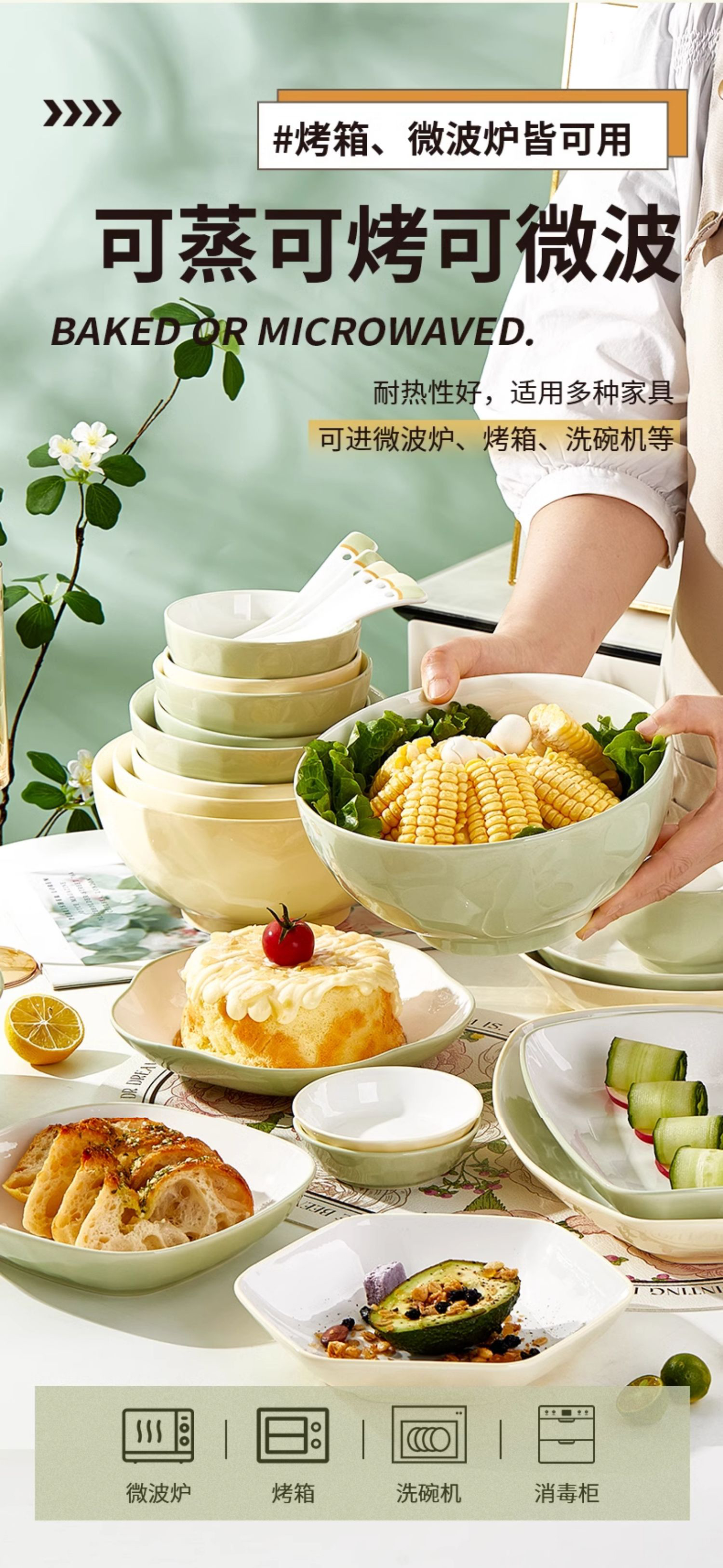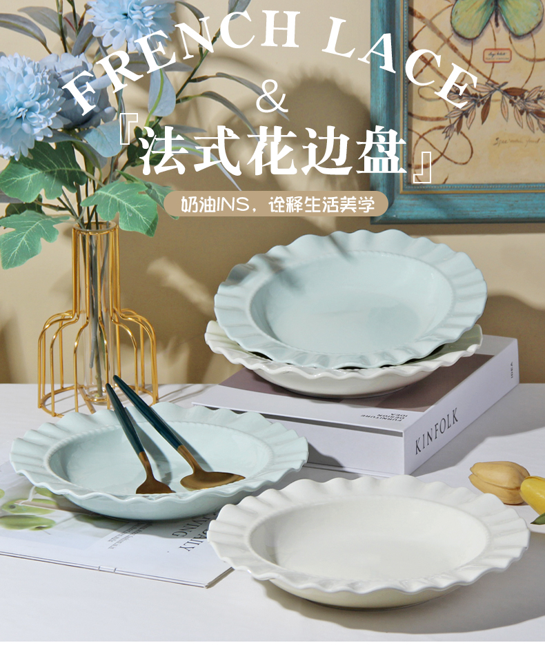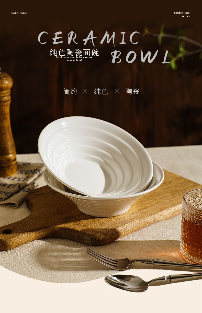 Higoo·嗨购 轻奢极简碗盘系列 8.5英寸中古浮雕餐盘/4.7英寸法式浮雕碗套装/8英寸纯色陶瓷汤碗面碗