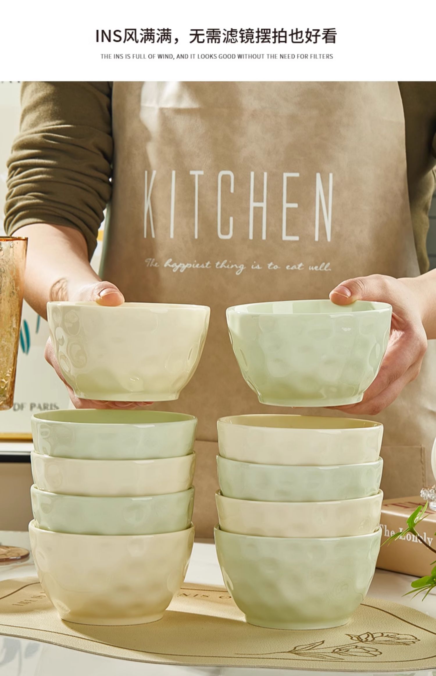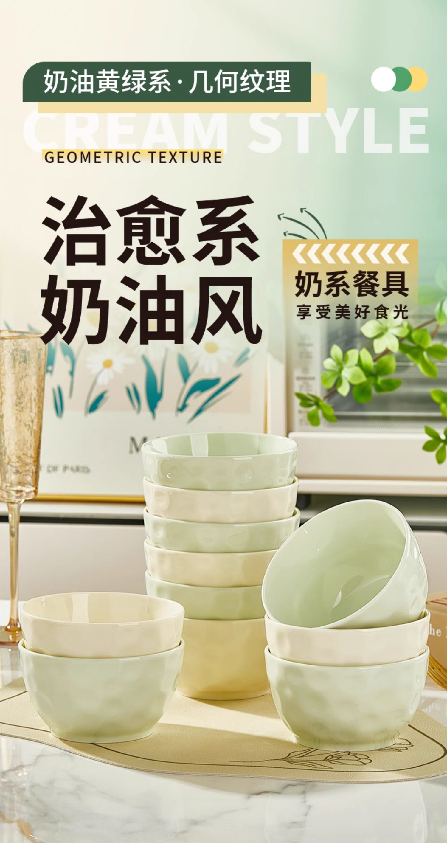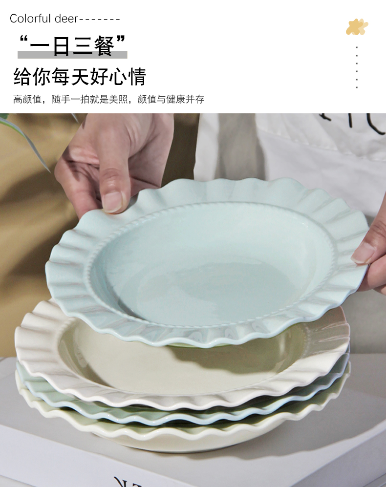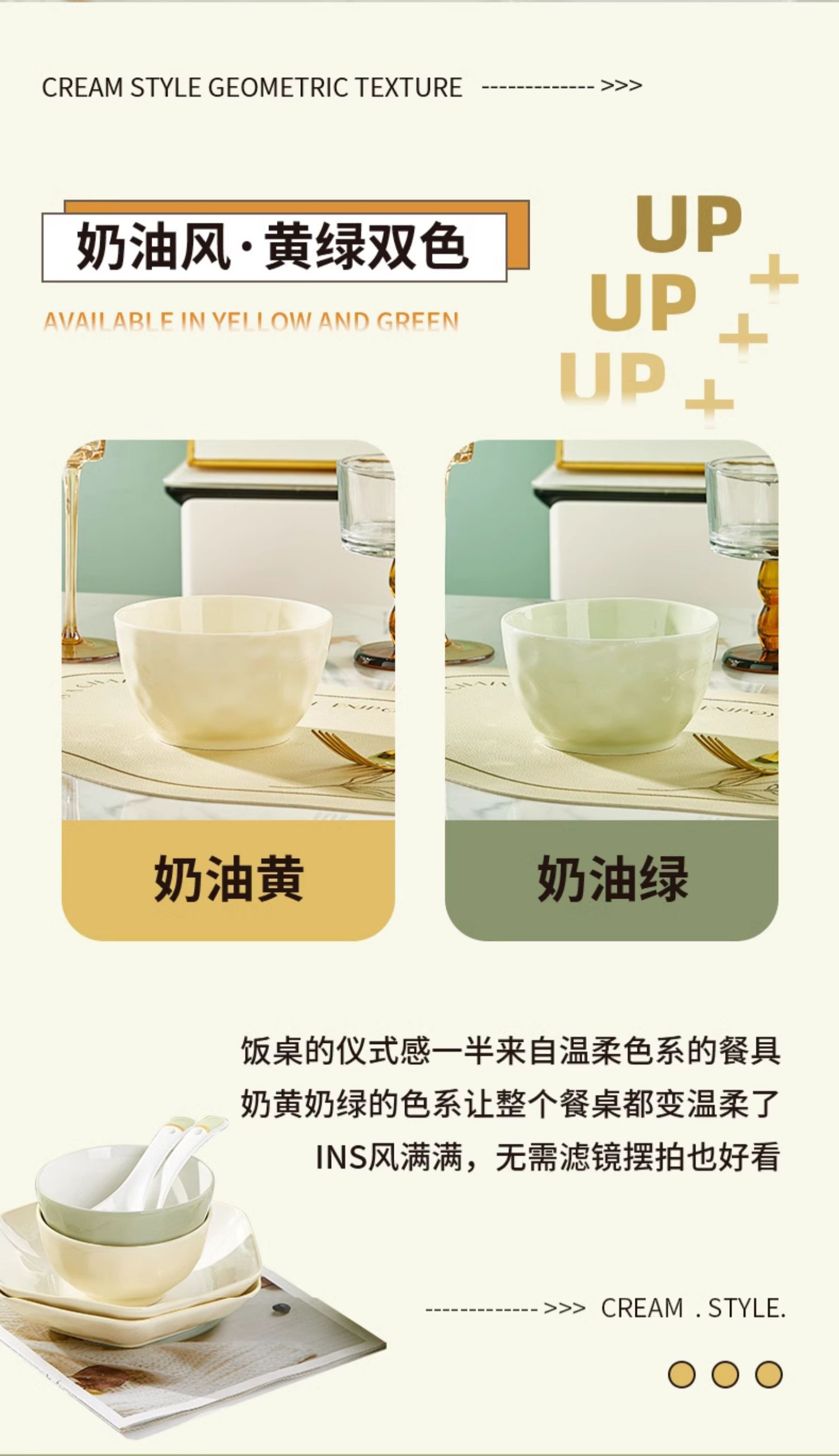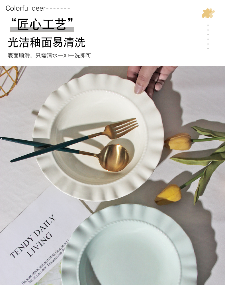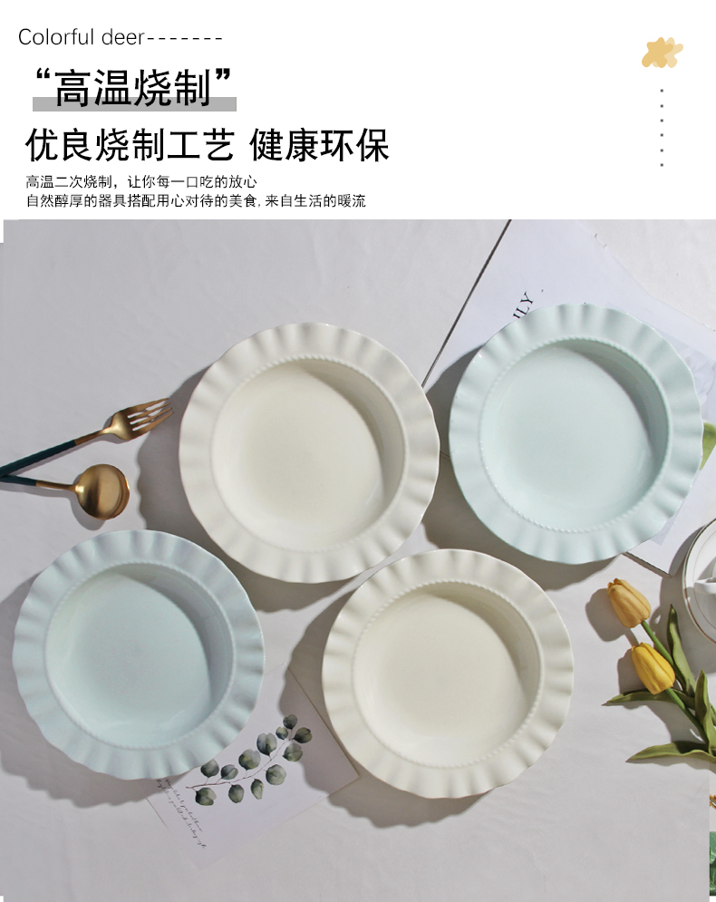 Higoo·嗨购 轻奢极简碗盘系列 8.5英寸中古浮雕餐盘/4.7英寸法式浮雕碗套装/8英寸纯色陶瓷汤碗面碗