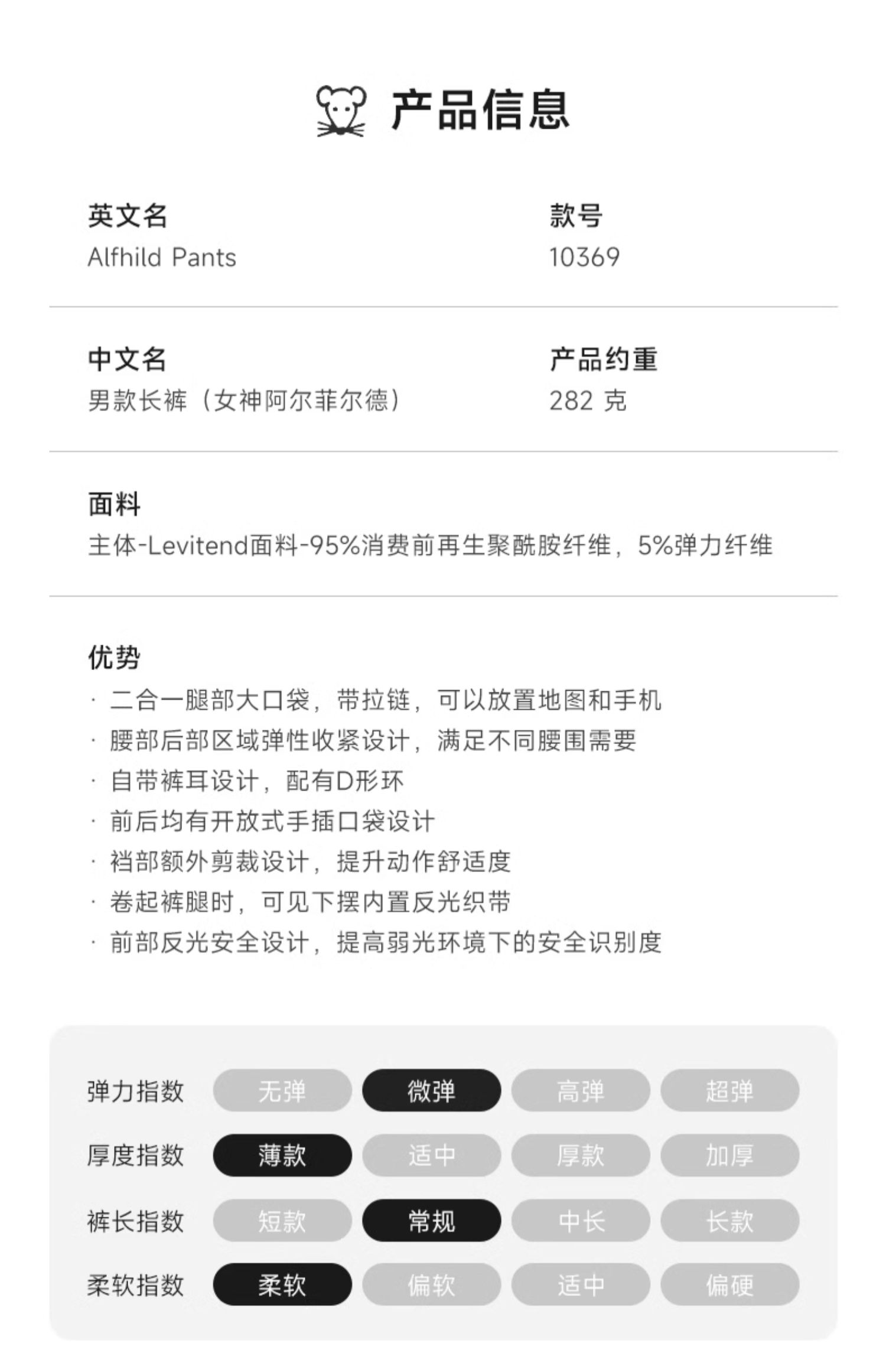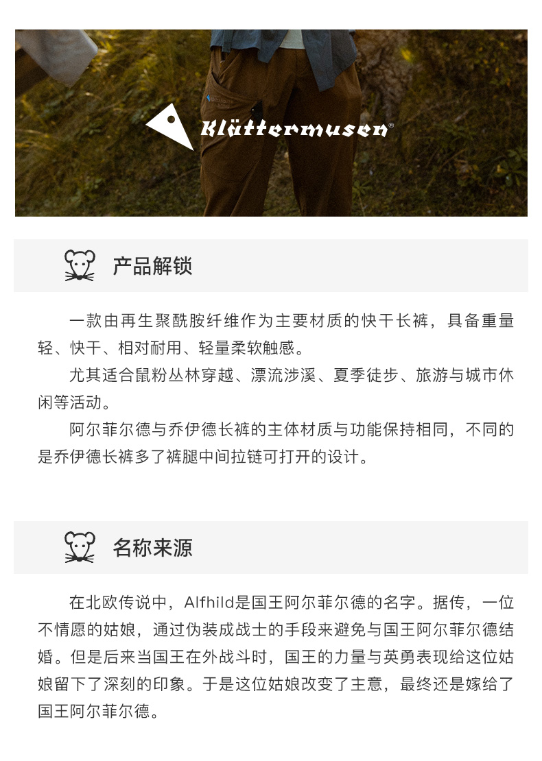 Klattermusenn攀山鼠 户外快干长裤阿尔菲尔德男女款 10369/10373