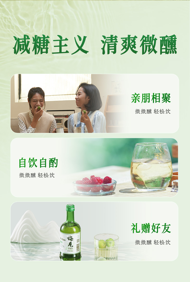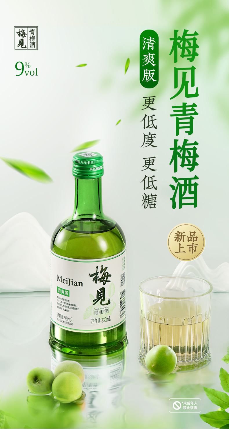 【新品上市】梅见清爽版青梅酒9度330ml*3+时光梅酒原味330ml*3瓶低度酒微醺酒果酒梅子酒