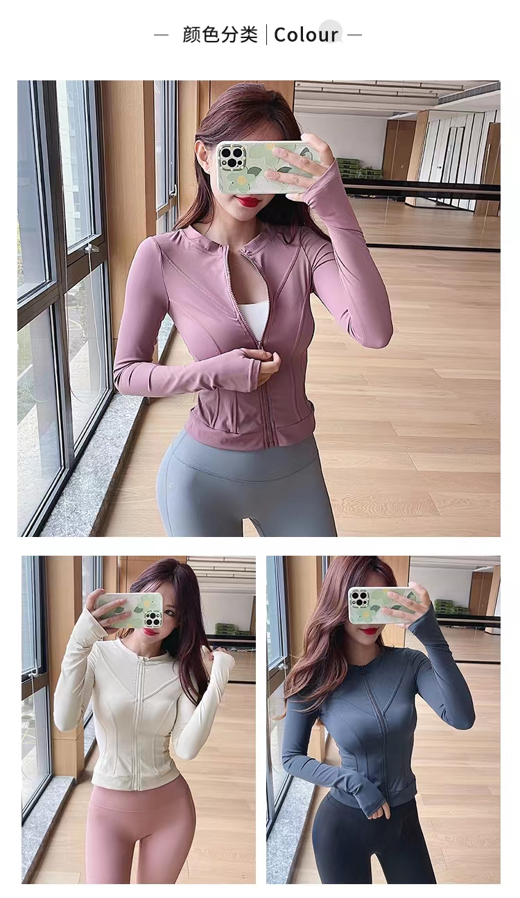 跃牌【禅语梵心系列】拉链运动外套女春秋款长袖健身上衣高端紧身跑步瑜伽服FX1676(不带胸垫)