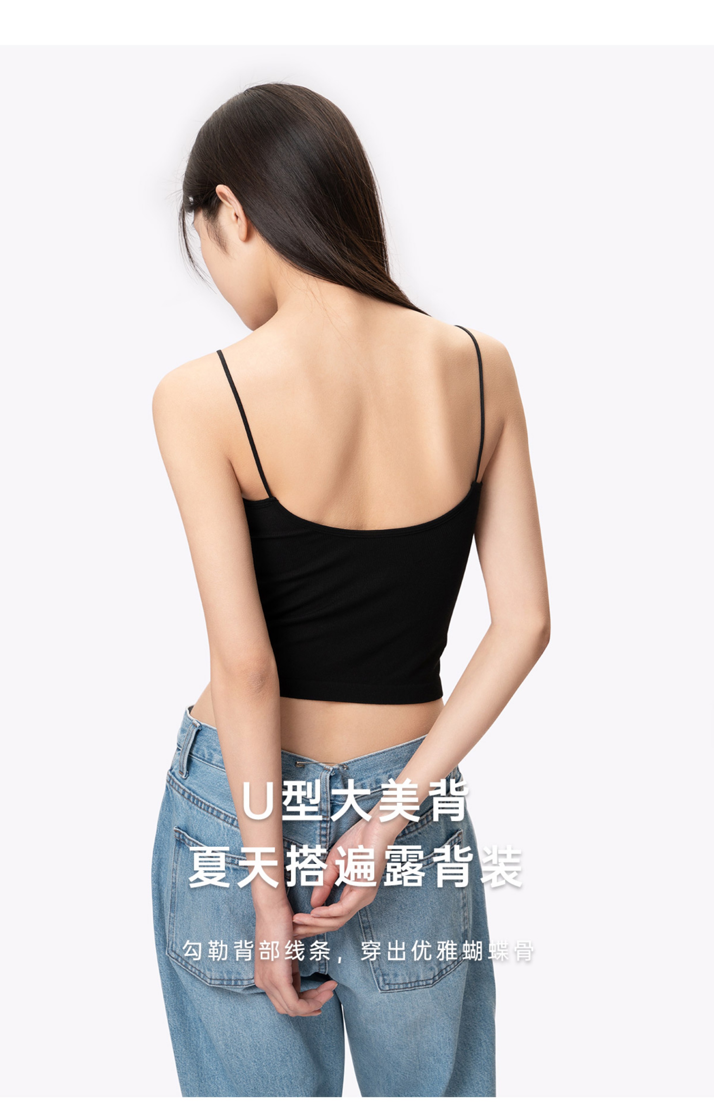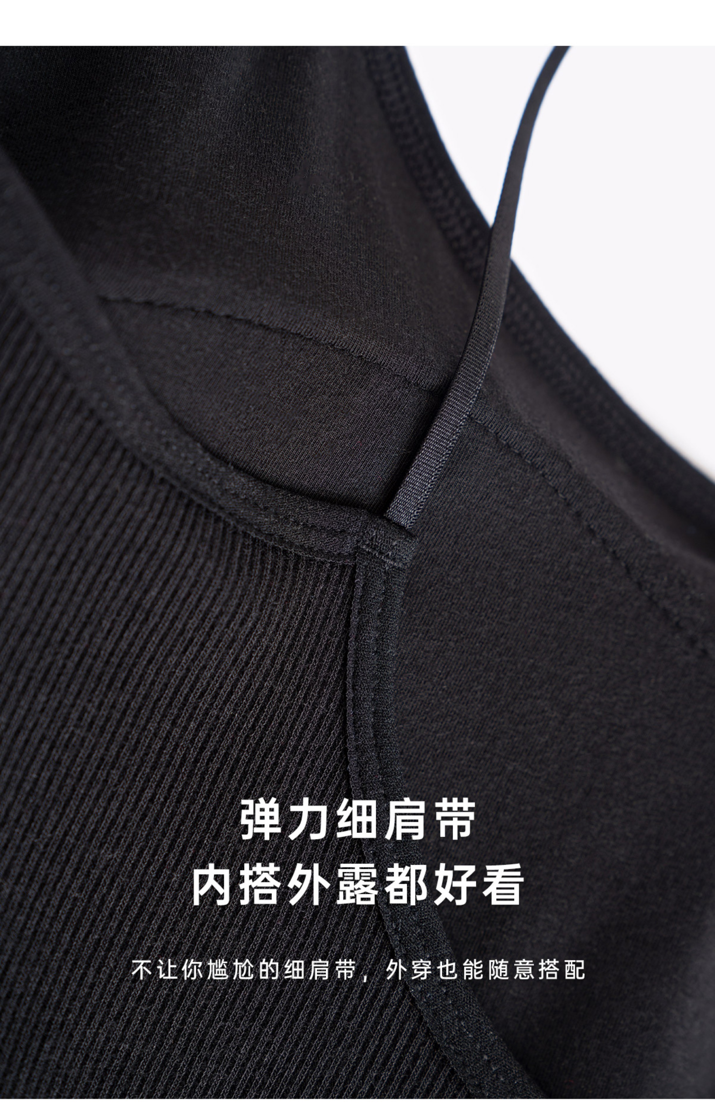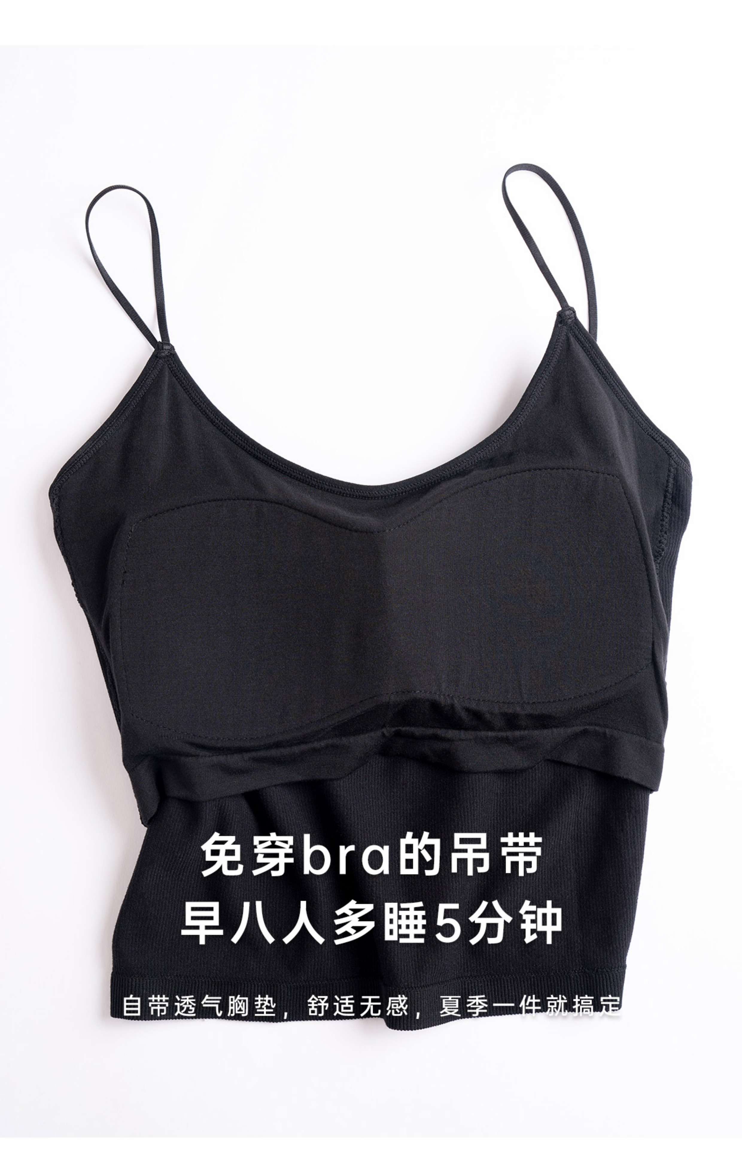 靴下物黑色细肩带美背吊带文胸一体带胸垫女夏季薄款内搭打底背心