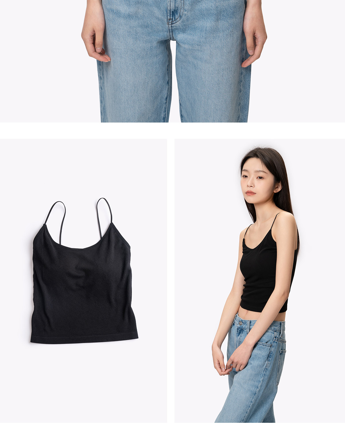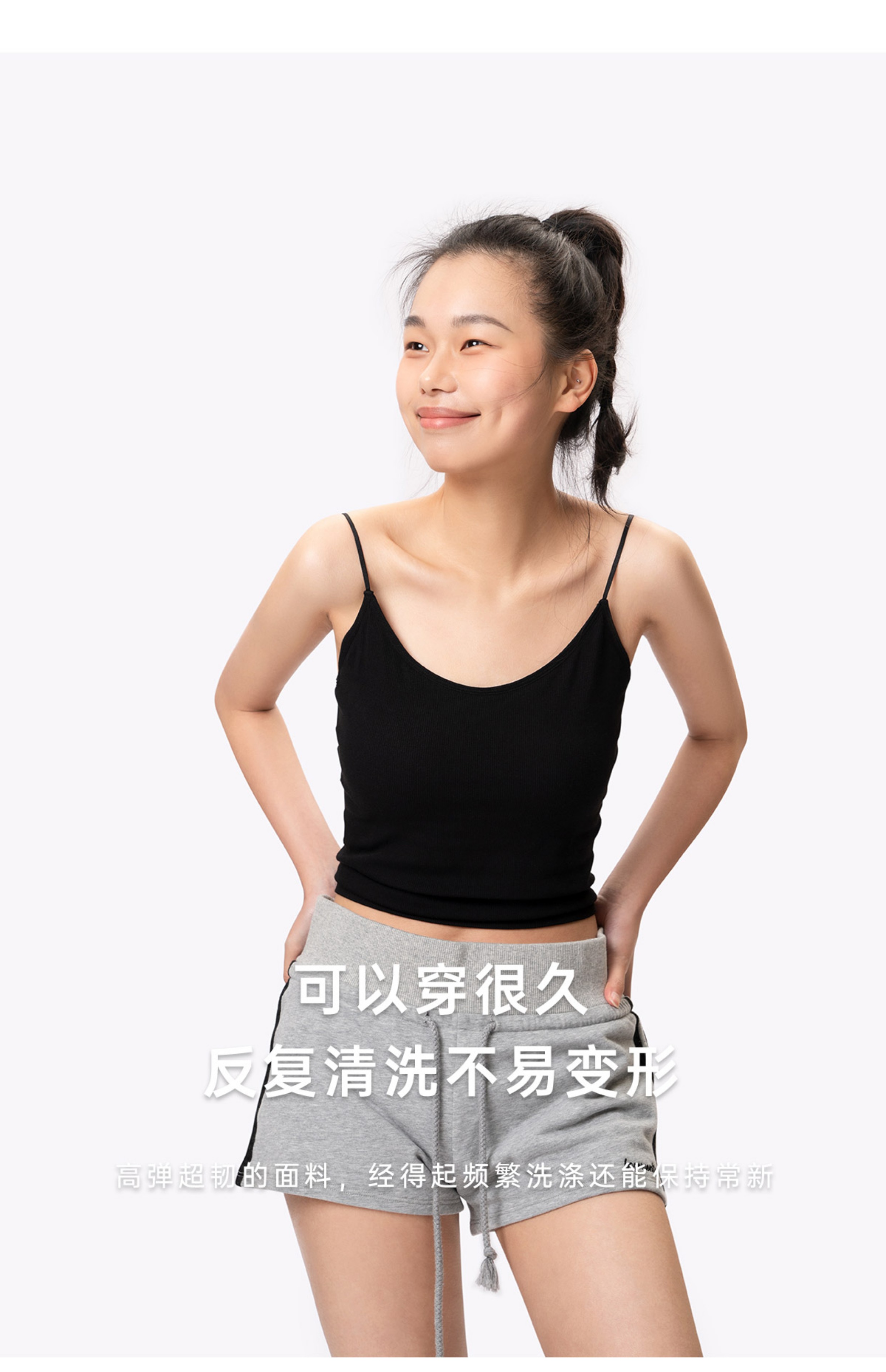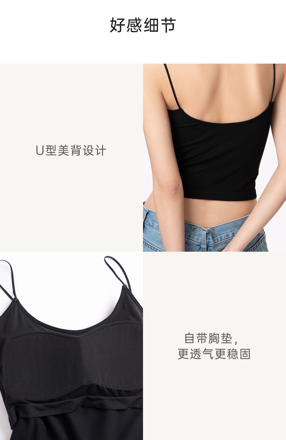 靴下物黑色细肩带美背吊带文胸一体带胸垫女夏季薄款内搭打底背心