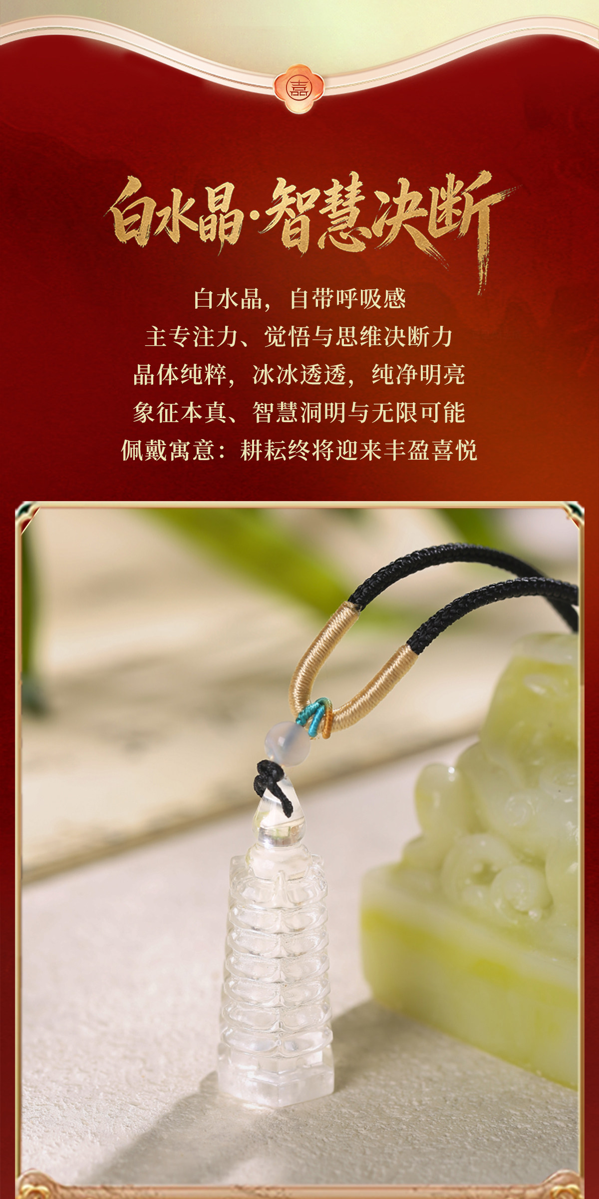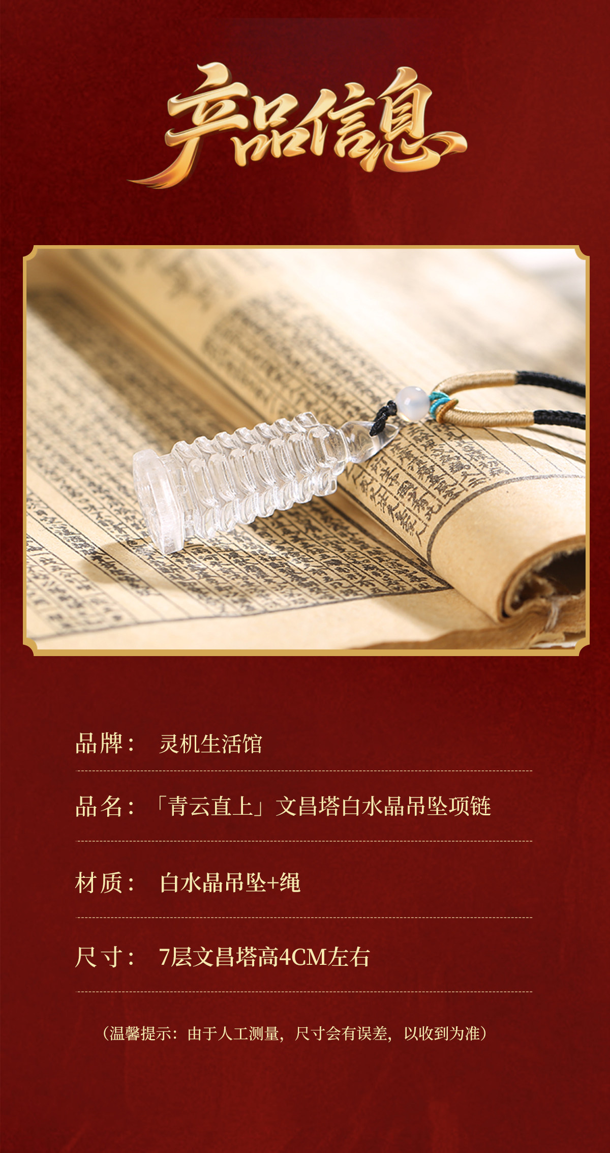 【祈愿吉品】「青云直上」文昌塔白水晶吊坠项链金榜题名学习文具