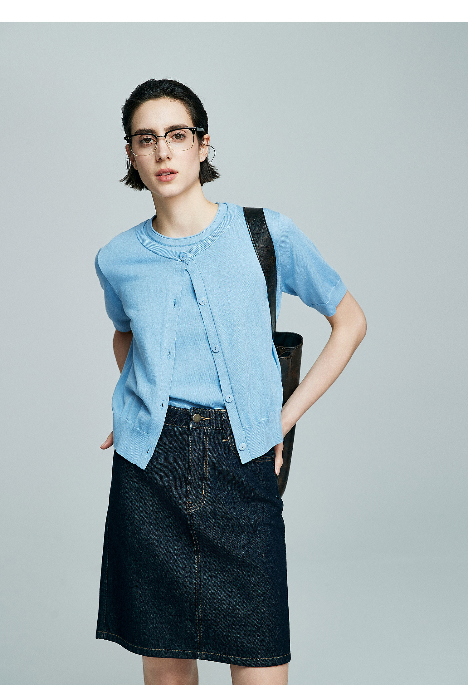 棉仓363635006-初棉天丝棉短袖开衫+背心