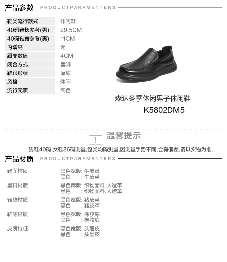 【云粉节】BF楼森达休闲皮鞋2025冬季新款厚底牛皮商务通勤男鞋K5802吊牌价1099活动价599