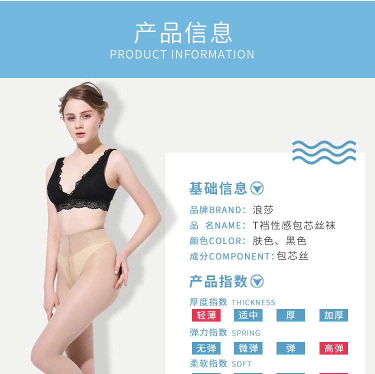 浪莎丝袜【T裆绝恋袜 黑色】弹力修身薄款性感连裤防勾连裤袜/双