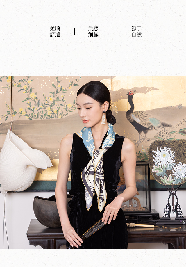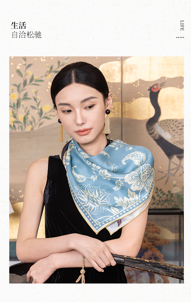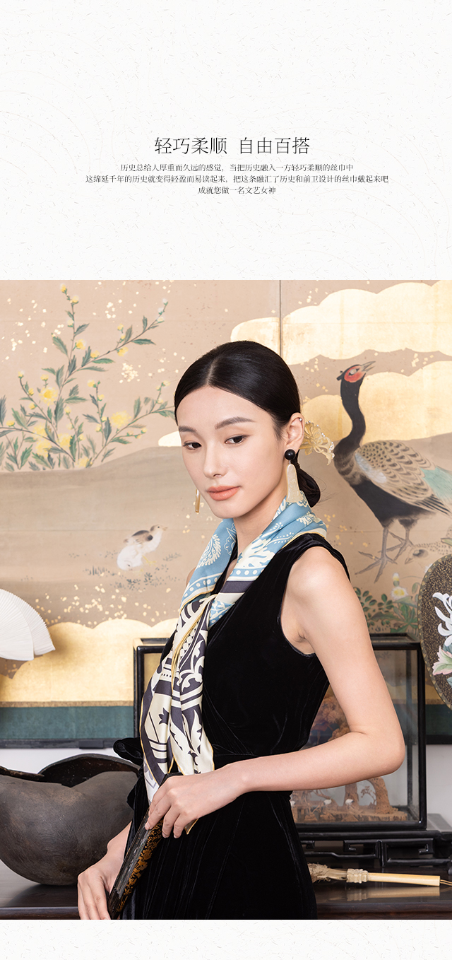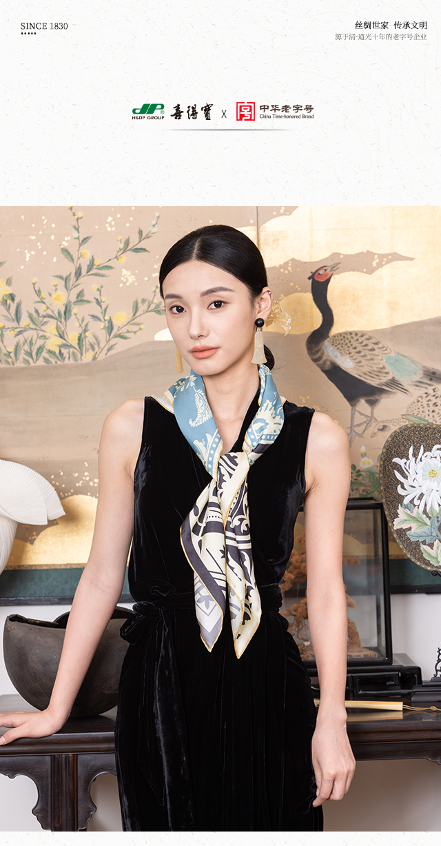 放心消费月 喜得宝文创丝巾《最杭州·风雅宋·数码斜纹方巾》杭州丝绸100%桑蚕丝斜纹绸