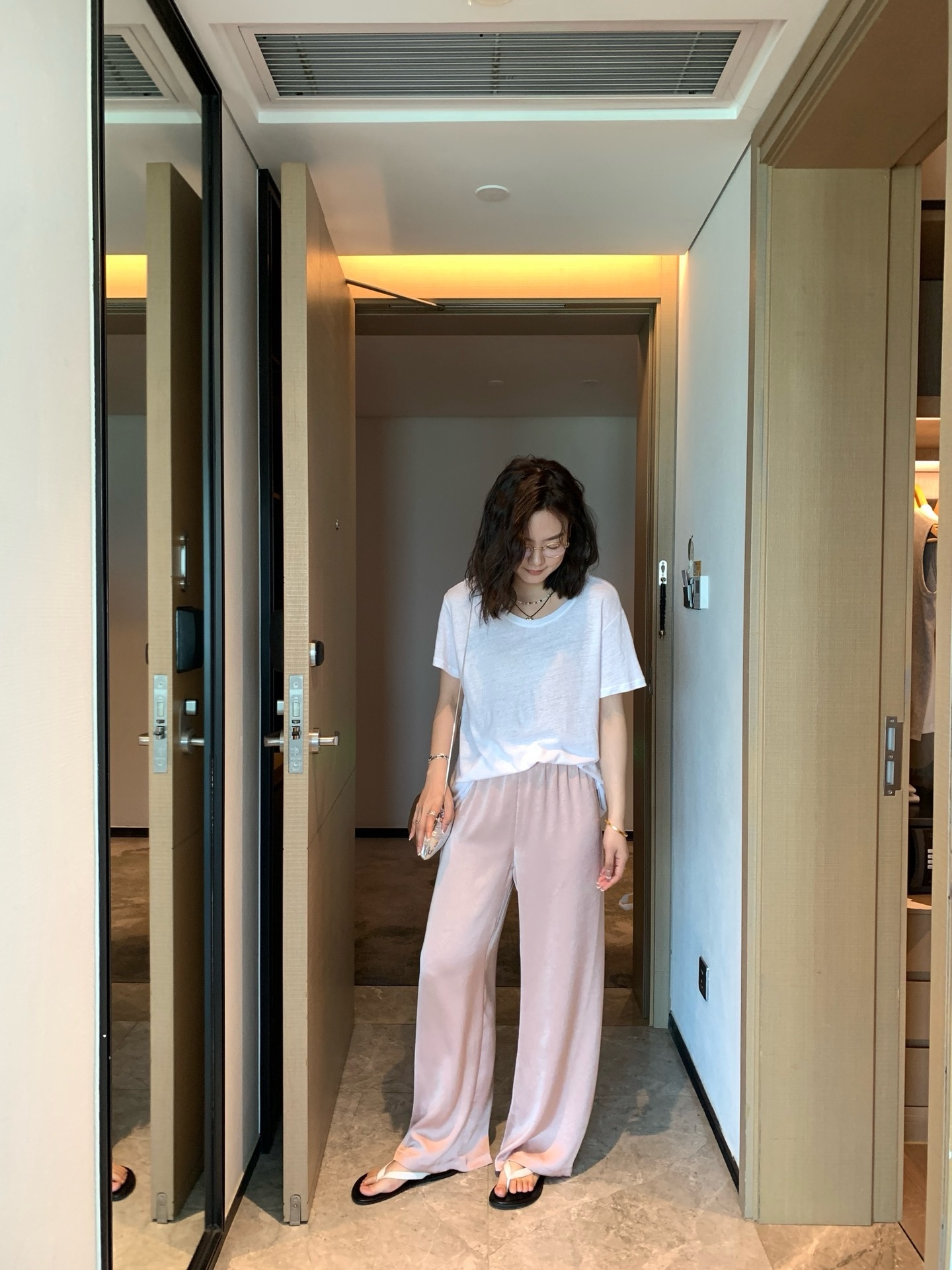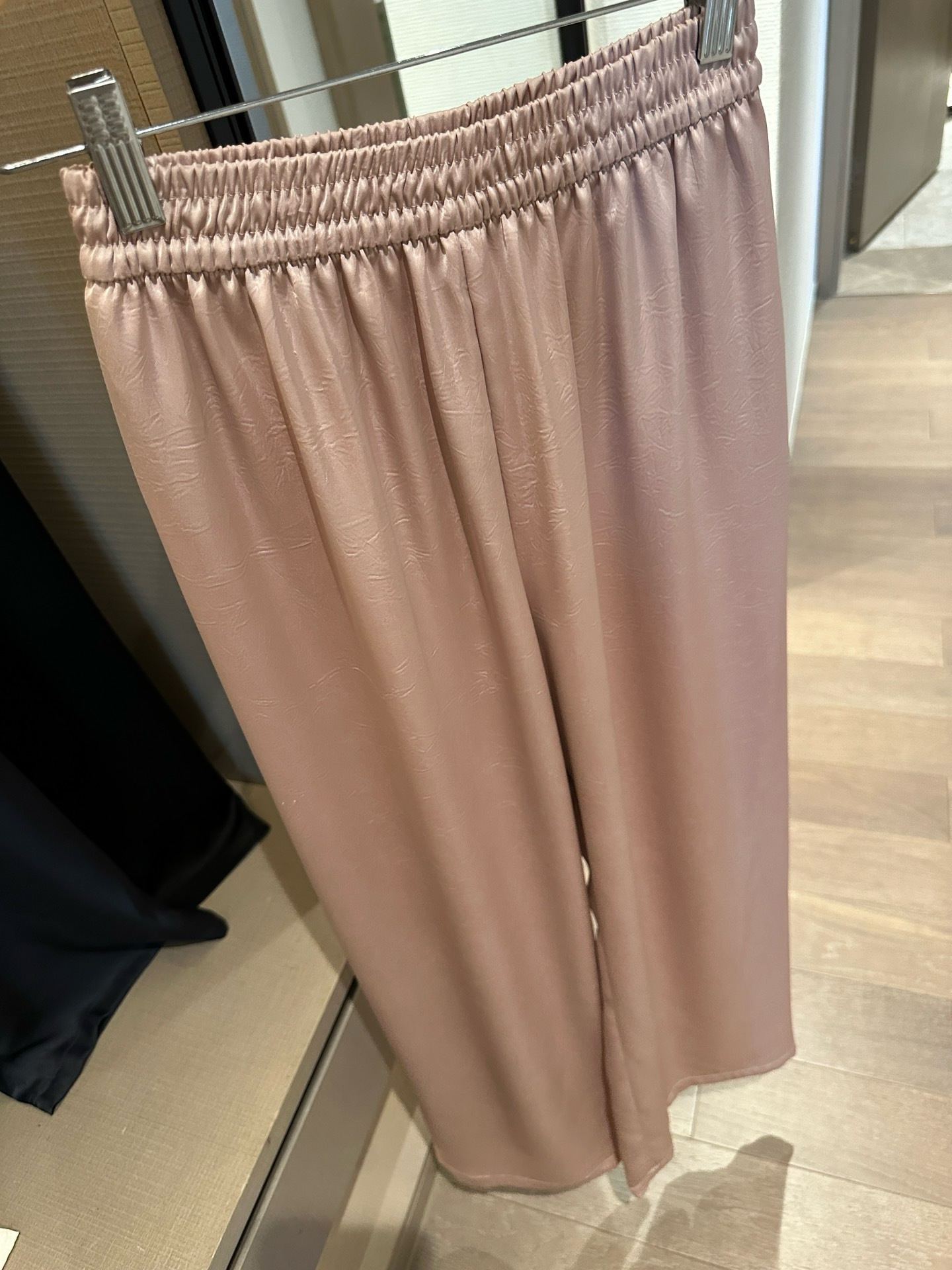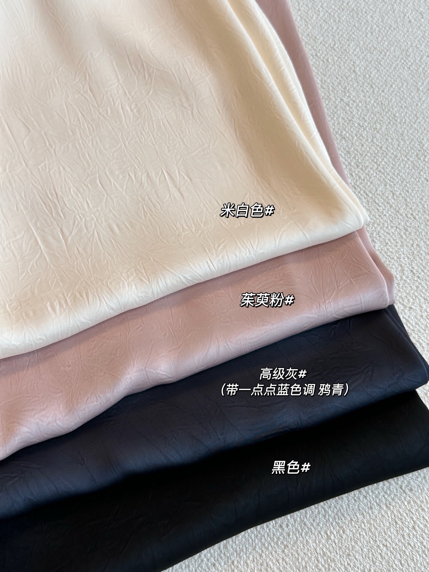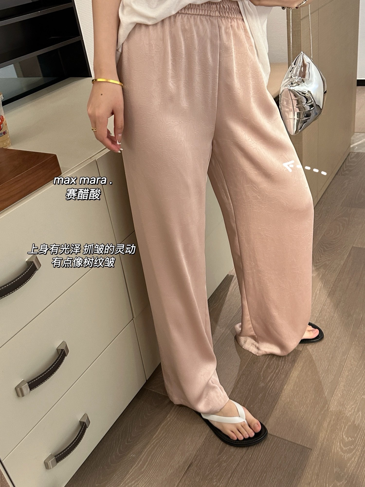 品牌同面料,进口客供,上身有光泽抓皱的灵动有点像树纹皱~特殊工艺处理。如果不说醋酸会以为真丝材质。超级重工。